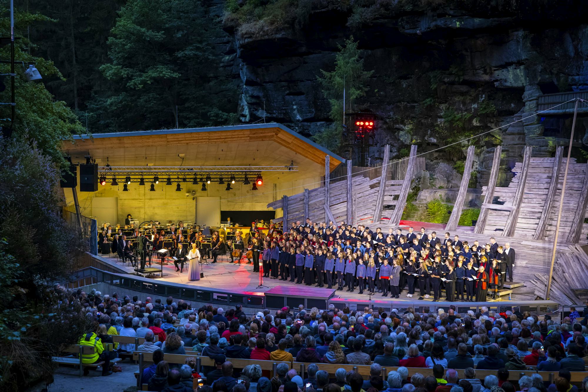 Freuen Sie sich auf Carl Orffs Chor‑ und Orchesterwerk „Carmina Burana“ in der einzigartigen Naturkulisse der Felsenbühne Rathen! Neben der Elbland Philharmonie Sachsen und Chören der Landesbühnen Sachsen wird auch die Singakademie Dresden e. V. das Konzert bestreiten. Die dramatische und kraftvolle Musik, mitreißende Rhythmen und ausdrucksstarke Chorstücke machen dieses Werk zu einem der faszinierendsten Meisterwerke der Moderne, die zwischen den Felsen der Naturbühne auf ganz besondere Weise zum Tragen kommen.