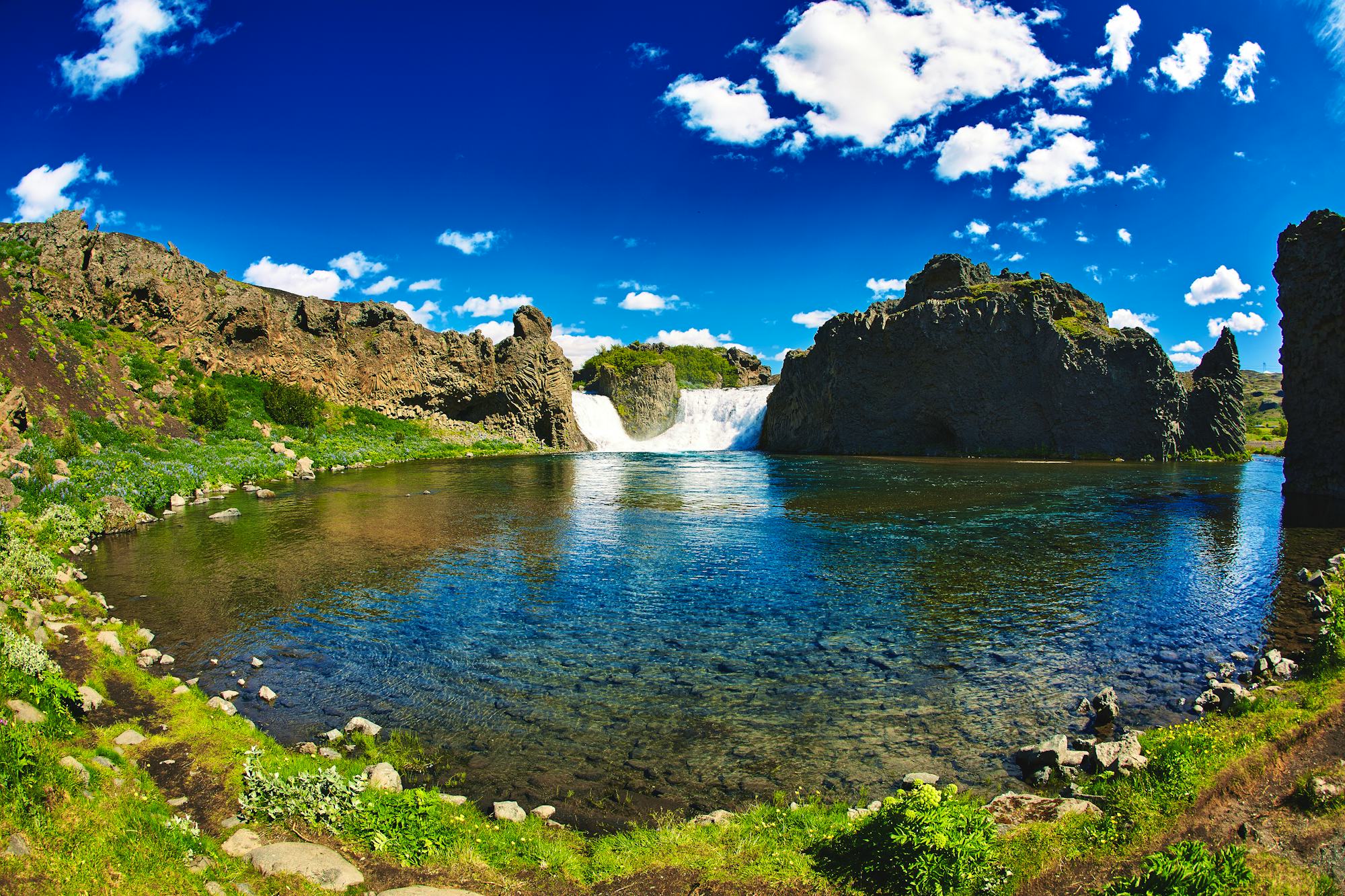 Nach einer angenehmen Pause fahren Sie vorbei am Vulkan Hekla, einem der aktivsten Vulkane Islands, bis zum Wasserfall Hjalparfoss. Über zwei bizarre Basaltsäulen stürzt die gewaltige Wassermasse in die Tiefe. Anschließend kehren Sie zu Hotel zurück.