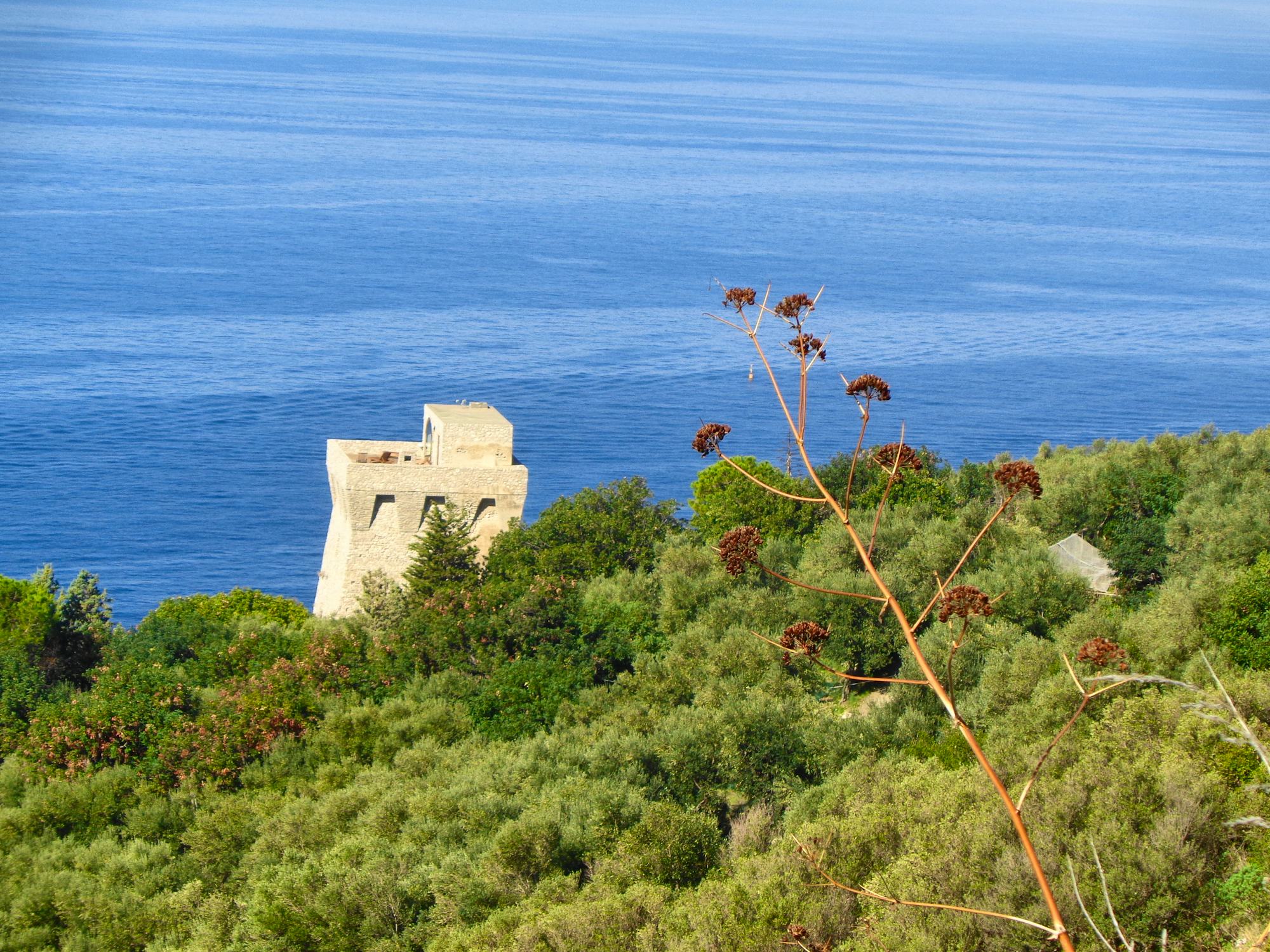 Sie haben heute die Wahl, auf zwei verschiedenen Weg-Varianten den Gipfel des Monte S. Costanzo zu erreichen. Von Termini, einem kleinen Vorort von Massa Lubrense, wandern Sie gemeinsam zur Punta Campanella. Immer mit schönen Ausblicken auf die Inseln im Golf von Neapel führt der Weg an einigen Landhäusern mit terrassenförmig angelegten Olivenhainen vorbei. Begleitet von der typischen Mittelmeer-Macchia genießen Sie die Landschaft dieses Naturparkes und erreichen nach ca. einer Stunde die Punta Campanella. Hier errichteten griechische Seefahrer einen Tempel für Athena. Als Schutzgöttin der Seefahrt wachte sie über dieses Kap zwischen dem Golf von Neapel und dem Golf von Salerno. Auch die Römer verehrten diesen Platz und errichteten einen Minerva-Tempel, an dessen Stelle heute noch der Minerva-Turm steht.