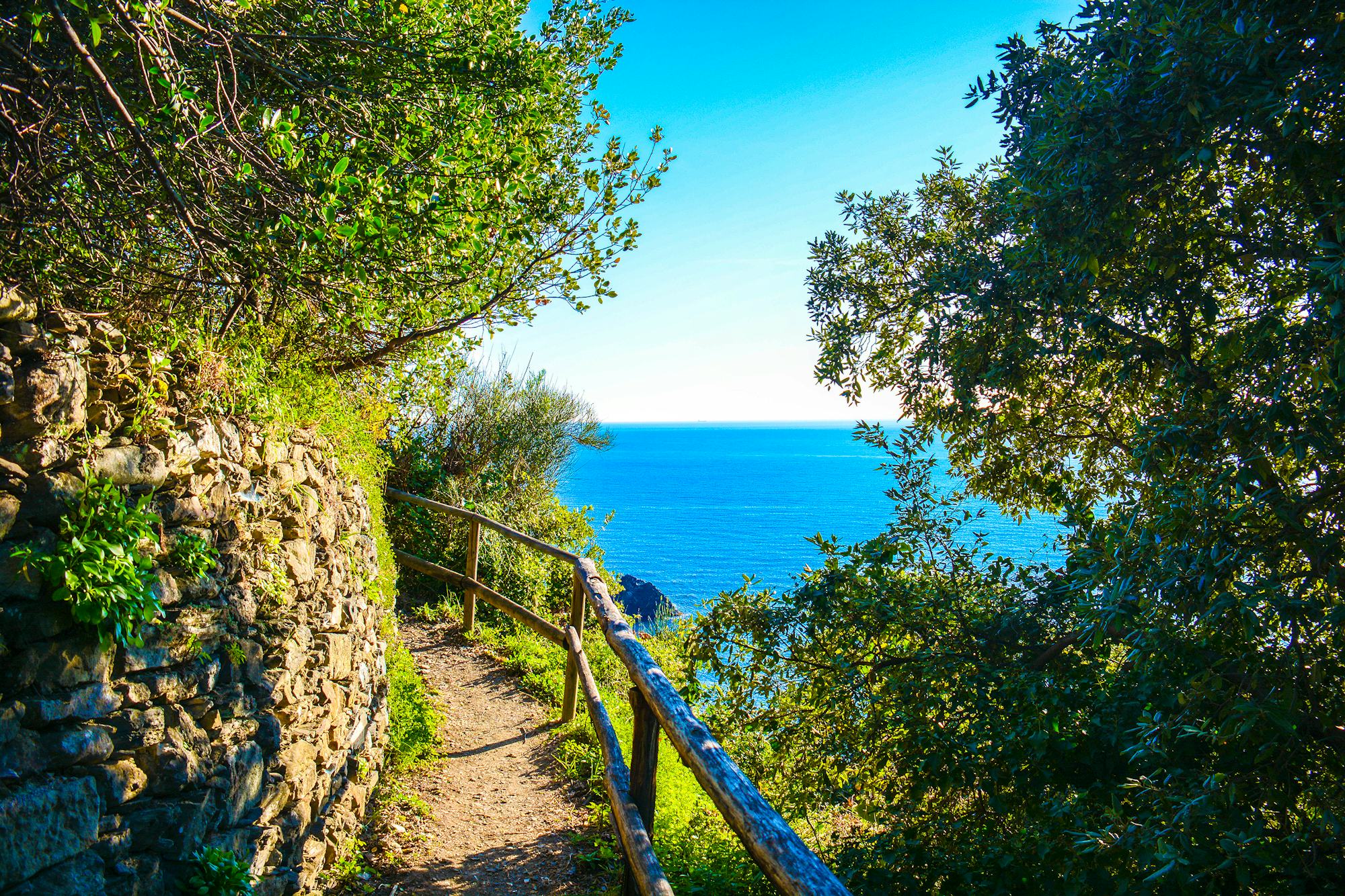 Mit dem Zug erreichen Sie am Morgen zuerst Levanto. Der Wanderweg führt Sie von Levanto aus vorbei an der Pfarrkirche Sant'Andrea aus dem Jahre 1226. Ein wenig Kondition brauchen Sie zum Erklimmen der Treppen und schmalen Wanderpfade, die Sie zum Aussichtspunkt Punta Mesco (313 Meter) führen. Die Ruine Sant Antonio schmiegt sich traumhaft in die reizvolle Küstenlandschaft. Sie blicken auf das in der breiten Sandbucht liegende Monterosso, sowie die Dörfer der Cinque Terre bis zu den kleinen Inseln Palmaria, Tino und Tinetto. Am Abend kehren Sie mit dem Zug nach Sestri Levante zurück.