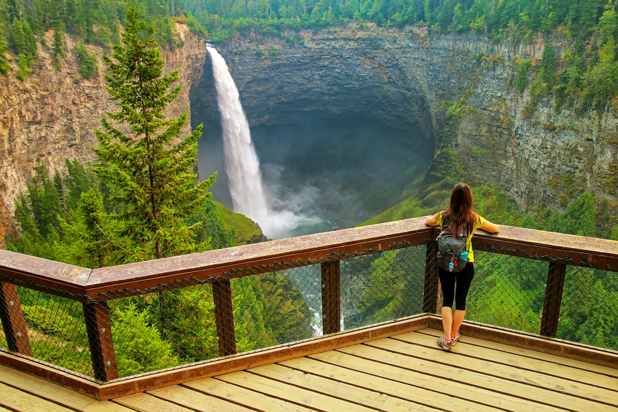 Der abgeschiedene Wells Gray-Provinzpark mit seinen zahlreichen tosenden Wasserfällen ist ein Paradies für Naturfreunde. Sie sehen die Spahat- und die Helmcken-Wasserfälle.
