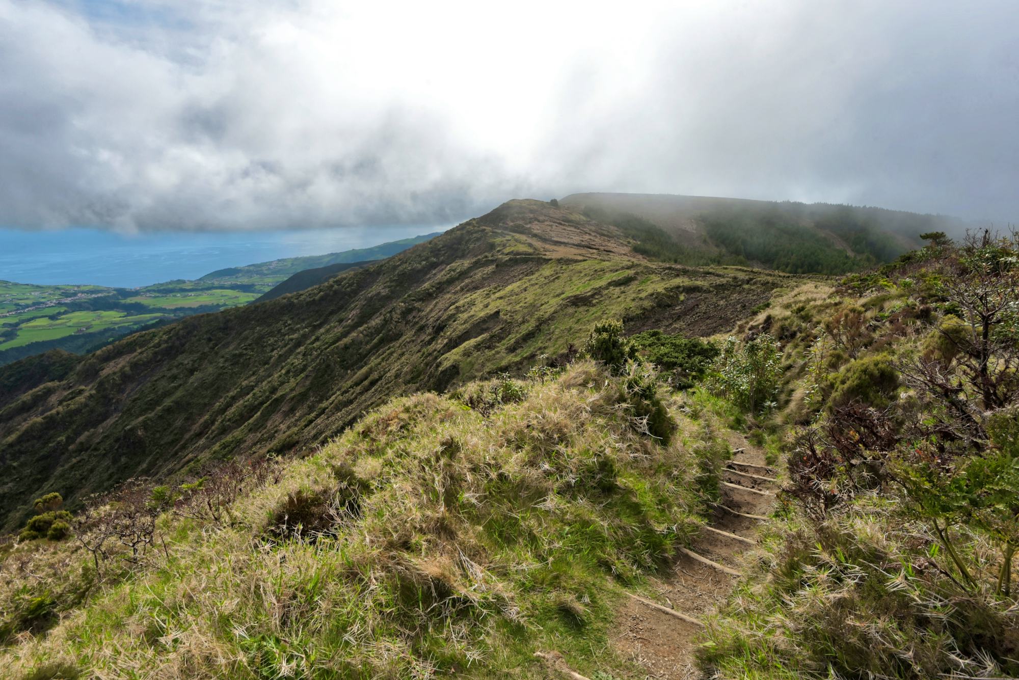 Zunächst wandern Sie auf schmalen Pfaden bergan durch dichten Lorbeer- und Heidewald, bevor sich Ihnen erste Ausblicke auf die Nord- und Südküste der Insel eröffnen. Mit zunehmender Höhe wird der Weg steiler und felsiger, doch die Anstrengung lohnt sich: Vom Gipfel genießen Sie bei klarer Sicht ein atemberaubendes Panorama über die gesamte Insel São Miguel und bis hin zur Nachbarinsel Santa Maria.