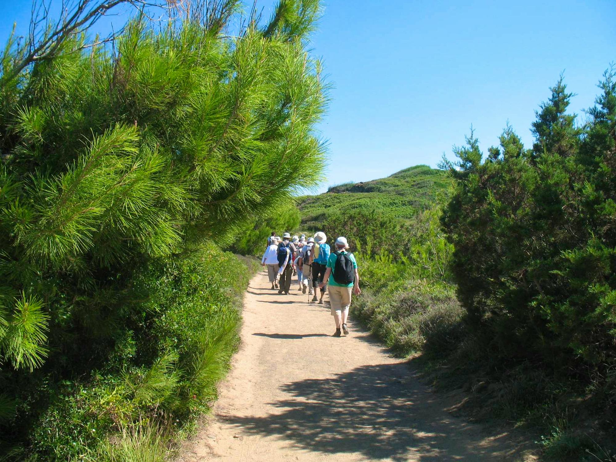 Heute erwartet Sie eine abwechslungsreiche geführte Wanderung im Süden Menorcas. Die Wanderreise führt Sie in bizarre Schluchten, durch mauergesäumtes Bauernland und zu weißen Sandbuchten. Mit dem Bus geht es am Morgen nach Cala en Porter. Der Ort grenzt an ein Feuchtgebiet, in dem Obst und Gemüse angebaut werden. Sie starten Ihre Wanderung vom Ort aus hinunter an den Strand der gleichnamigen Bucht. Dort steigen Sie wieder in den Cali de Cavalls ein und folgen der Ausschilderung nach Son Bou. Vorbei an Mirabellen-Plantagen und schönen Gärten überwinden Sie immer wieder kleinere Anstiege, bis Sie in der Höhe auf eine karge, vegetationsärmere Landschaft treffen und sich dann wieder der Küste zuwenden. Zur Mittagszeit erreichen Sie Cala Llucalari, eine sehr kleine Bucht, an der das Meer und die Schlucht von Llucalari zusammentreffen. Der Kiesstrand, einsam und wild, umgeben von karg bewachsenen Klippen, ist ein idealer Ort für eine ausgiebige Rast. Von hier aus ist es dann nur noch ein kurzer Weg bis nach Son Bou, einem Ferienort mit einem drei Kilometer langen feinkörnigen Sandstrand. Dünen ziehen sich über den gesamten Strand und das Wasser ist türkisblau, idealer Ort für eine Bad im Meer oder einen Strandspaziergang. Zahlreiche Cafés und Restaurants laden zum Verweilen und Genießen ein.