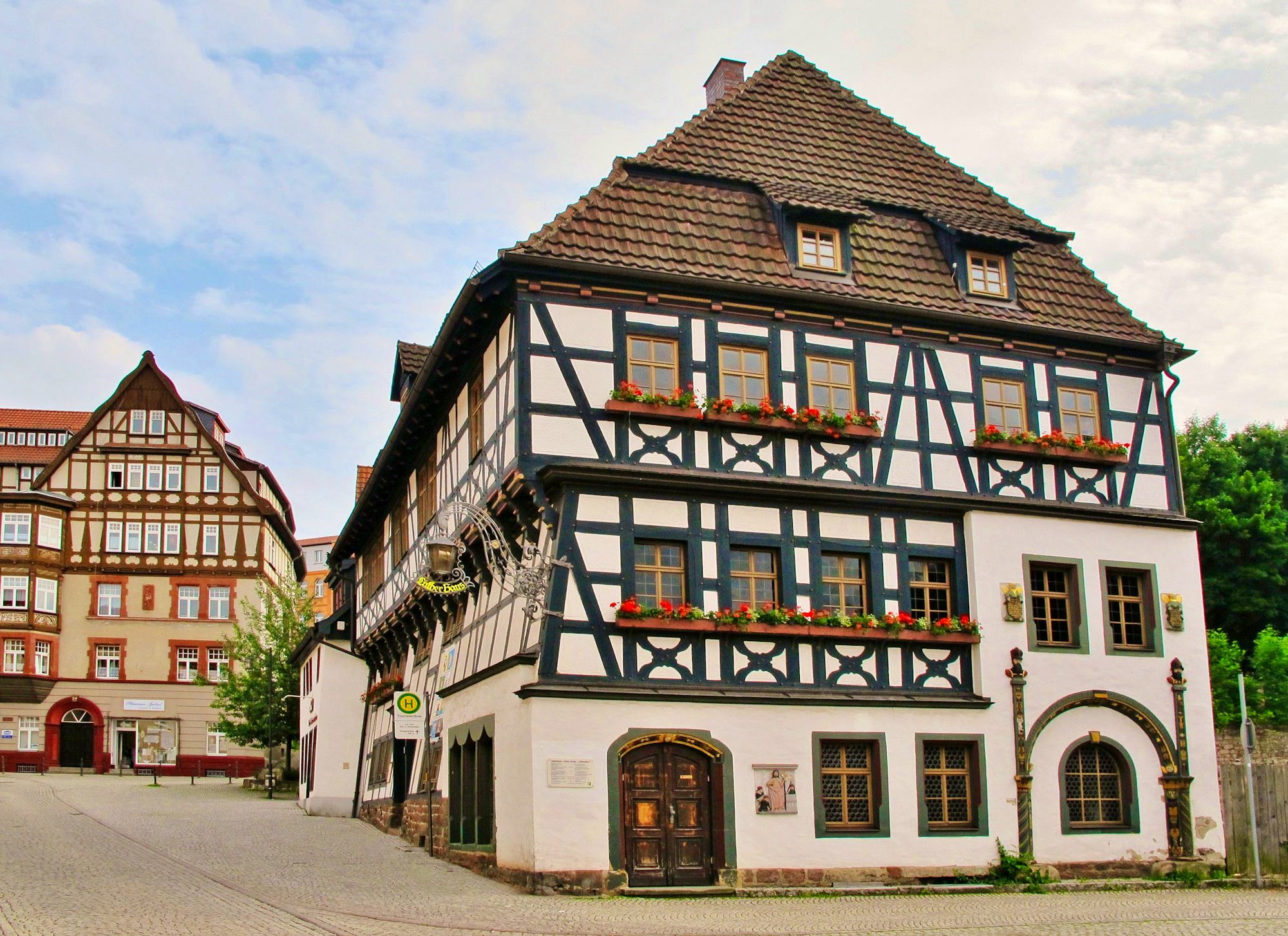 Im Anschluss haben Sie Freizeit in der Altstadt von Eisenach. Spazieren durch die historischen Gassen auf den Spuren von Luther und Bach. Besonders markant ist die Georgenkirche auf dem Marktplatz, ein prächtiger Barockbau, in dem sowohl Johann Sebastian Bach getauft als auch Martin Luther gepredigt haben soll. Auch das Schmale Haus, eines der kleinsten Fachwerkhäuser Deutschlands, ist ein beliebter Fotopunkt und steht exemplarisch für die enge, verwinkelte Bauweise der Altstadt. Auch das Lutherhaus und das Bachhaus sind im typischen Fachwerkstil gebaut.
