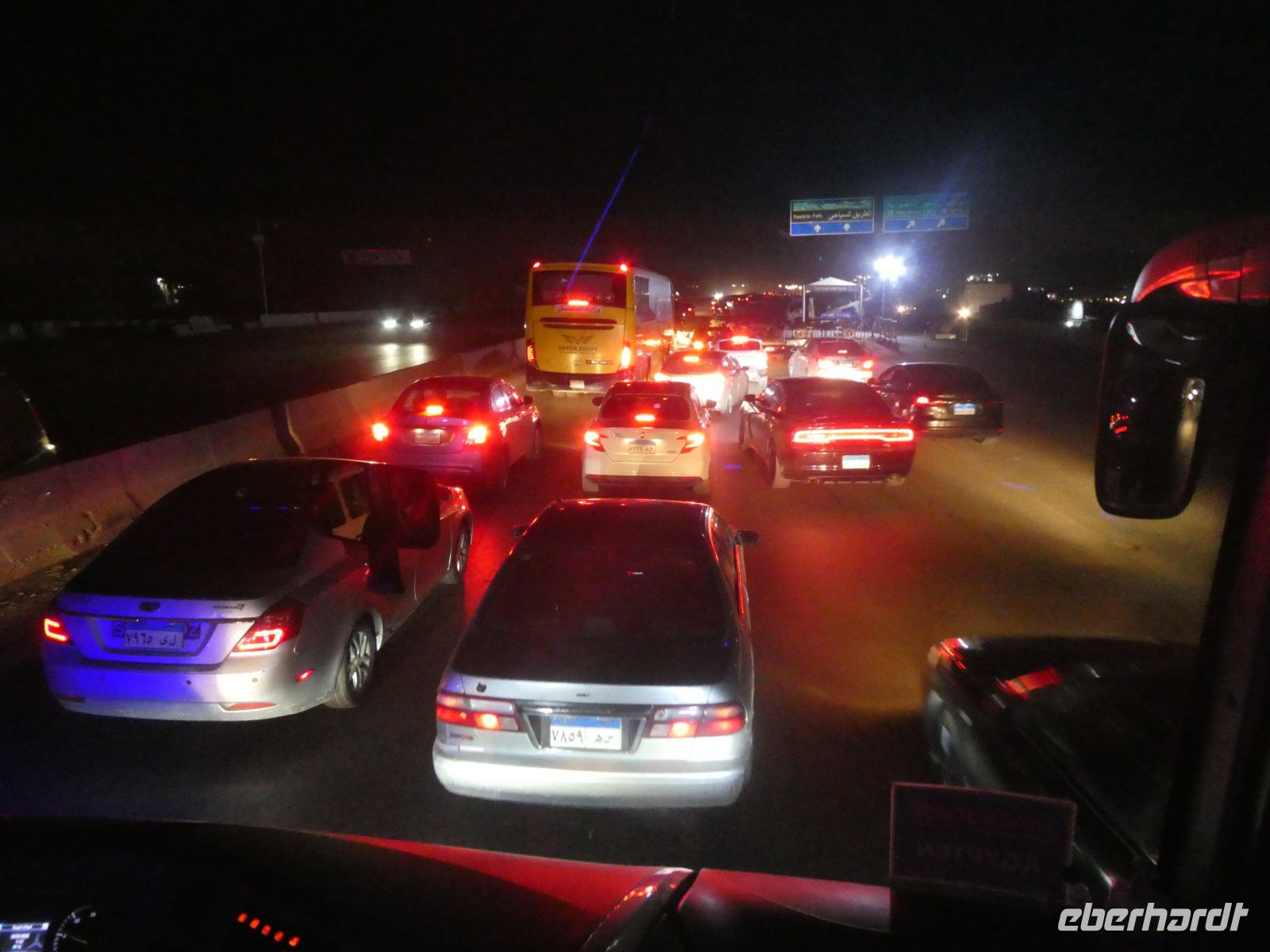 Essam unser Reiseleiter der in der Nähe des Flughafens wohnt ist schon nachhause als wir gegen 2.00 Uhr in der Nacht das Hilton Hotel erreichen. Vorher während der Fahrt konnten wir einen kurzen undeutlichen Blick auf die Pyramiden erhaschen. Die Nacht ist kurz und wir fallen alle müde ins unsere Betten.