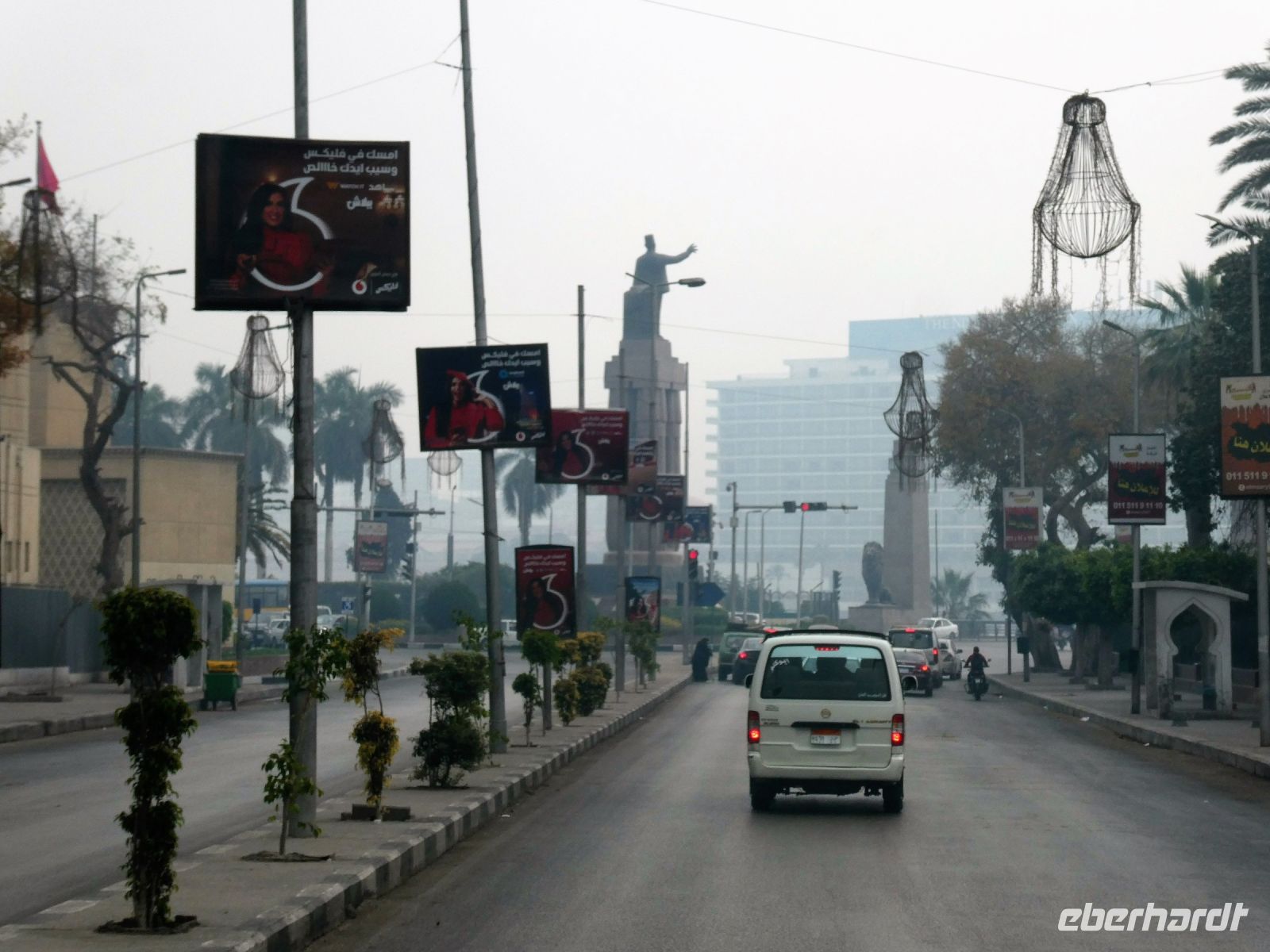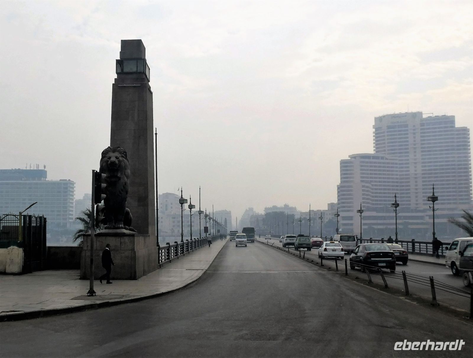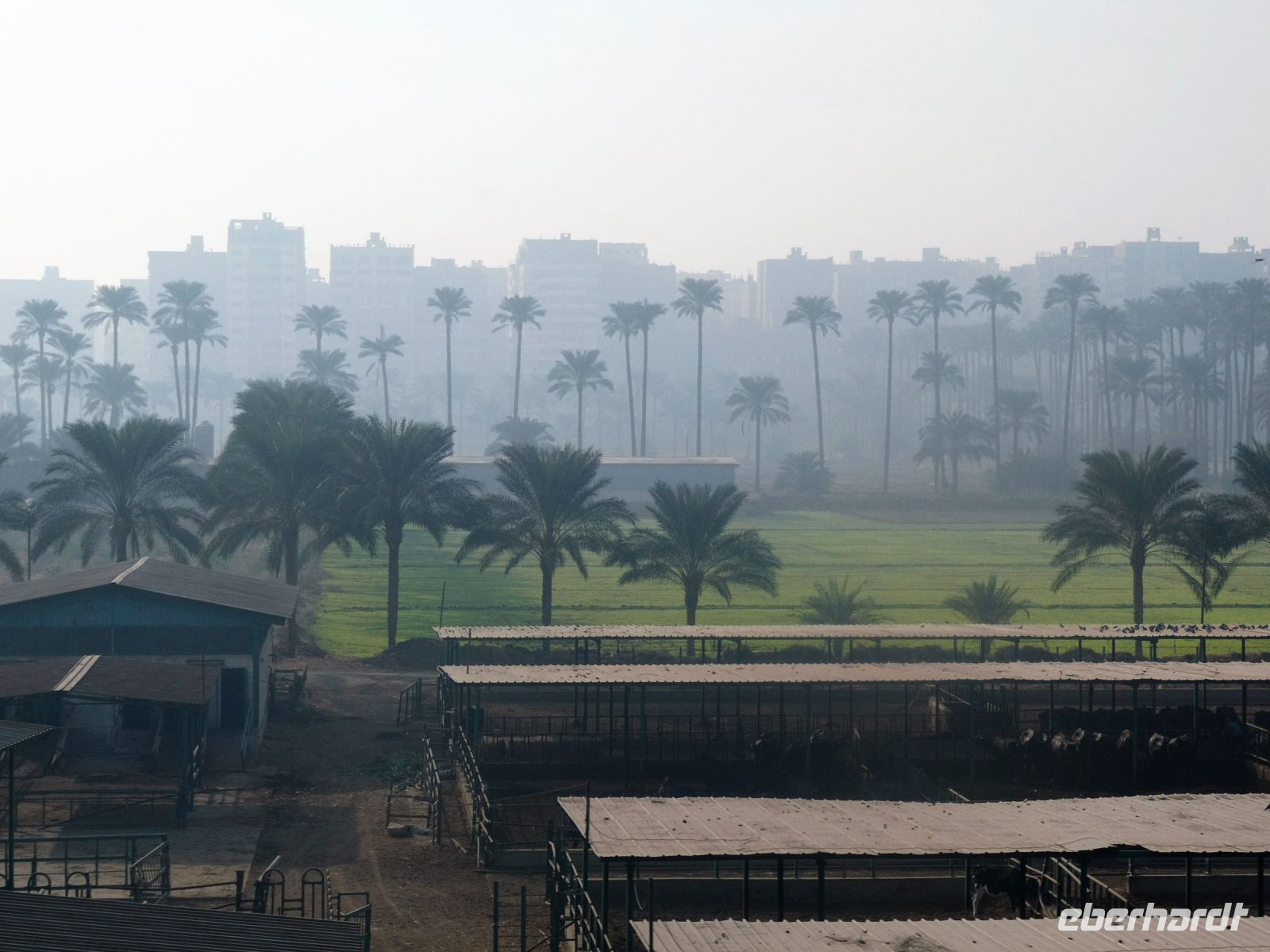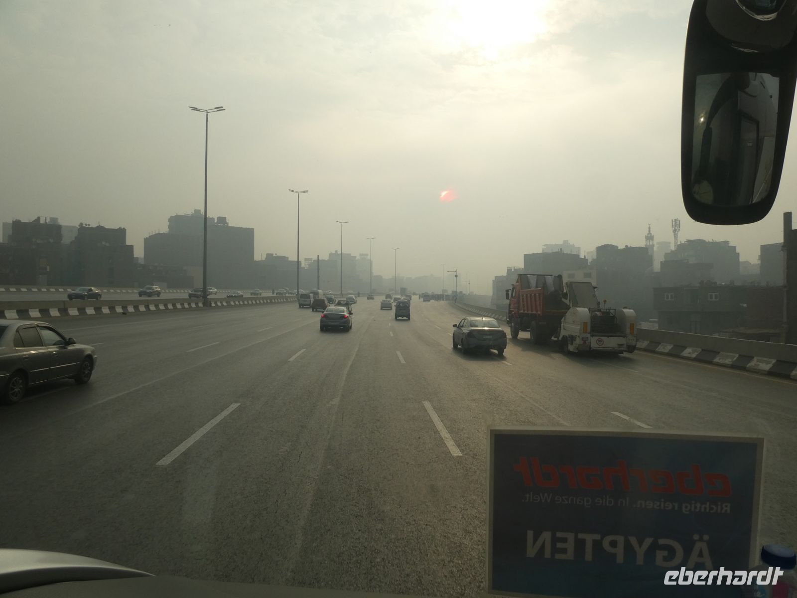 Auf der Fahrt in Richtung Innenstadt zum Ägyptischen Museum erfahren wir einiges über Kairo und bekommen einen diesigen Eindruck einer sich in rasanter Geschwindigkeit ausbreitenden Stadt mit ihren „wilden“ Siedlungen, die ohne Baugenehmigung errichtet wurden.