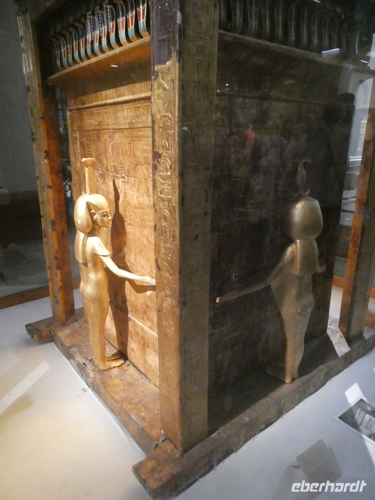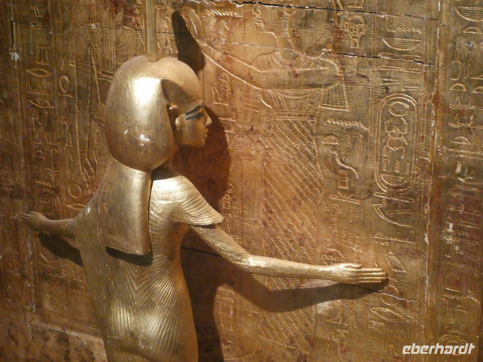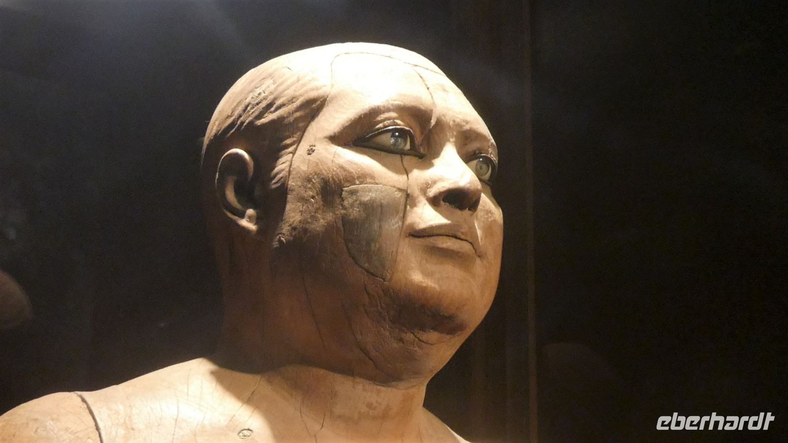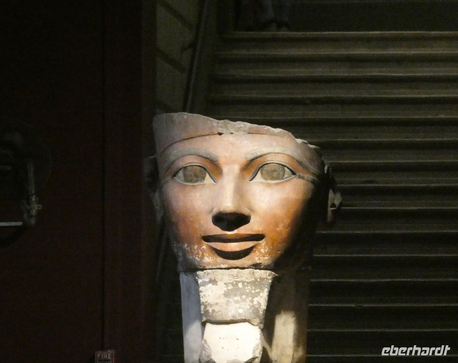 Trotzdem können wir noch einen guten Eindruck über die Geschichte Ägyptens bekommen. Die historische Reise geht vom Alten Reich über das Mittlere Reich nach Oberägypten zu Ramses II. und den Ptolemäern. Auch können wir noch einen Blick auf die Totenmaske des Tut-ench-Amun werfen. Allerdings ist das Fotografieren dieses wohl berühmtesten Exponats verboten was auch streng überwacht wird.