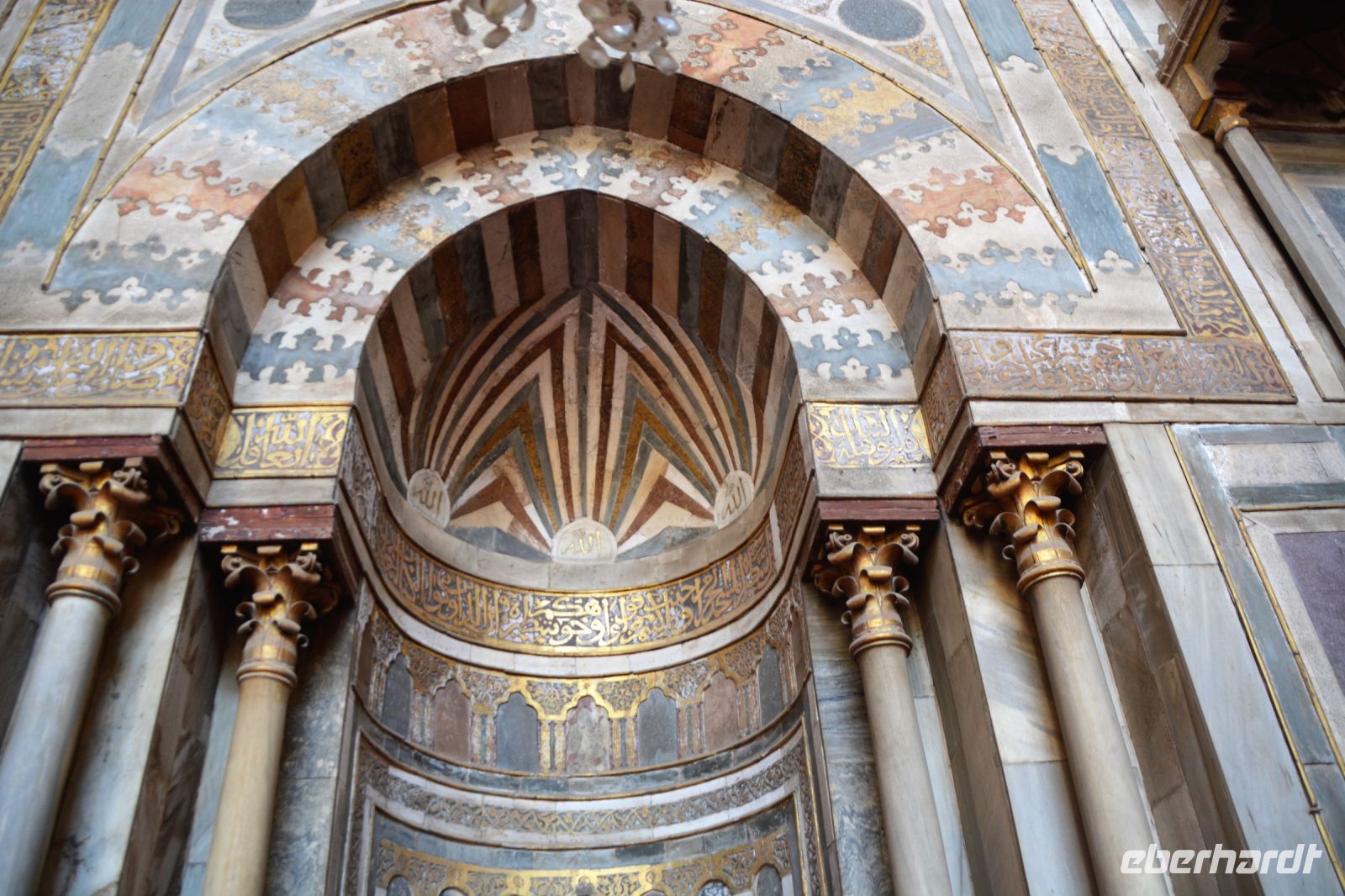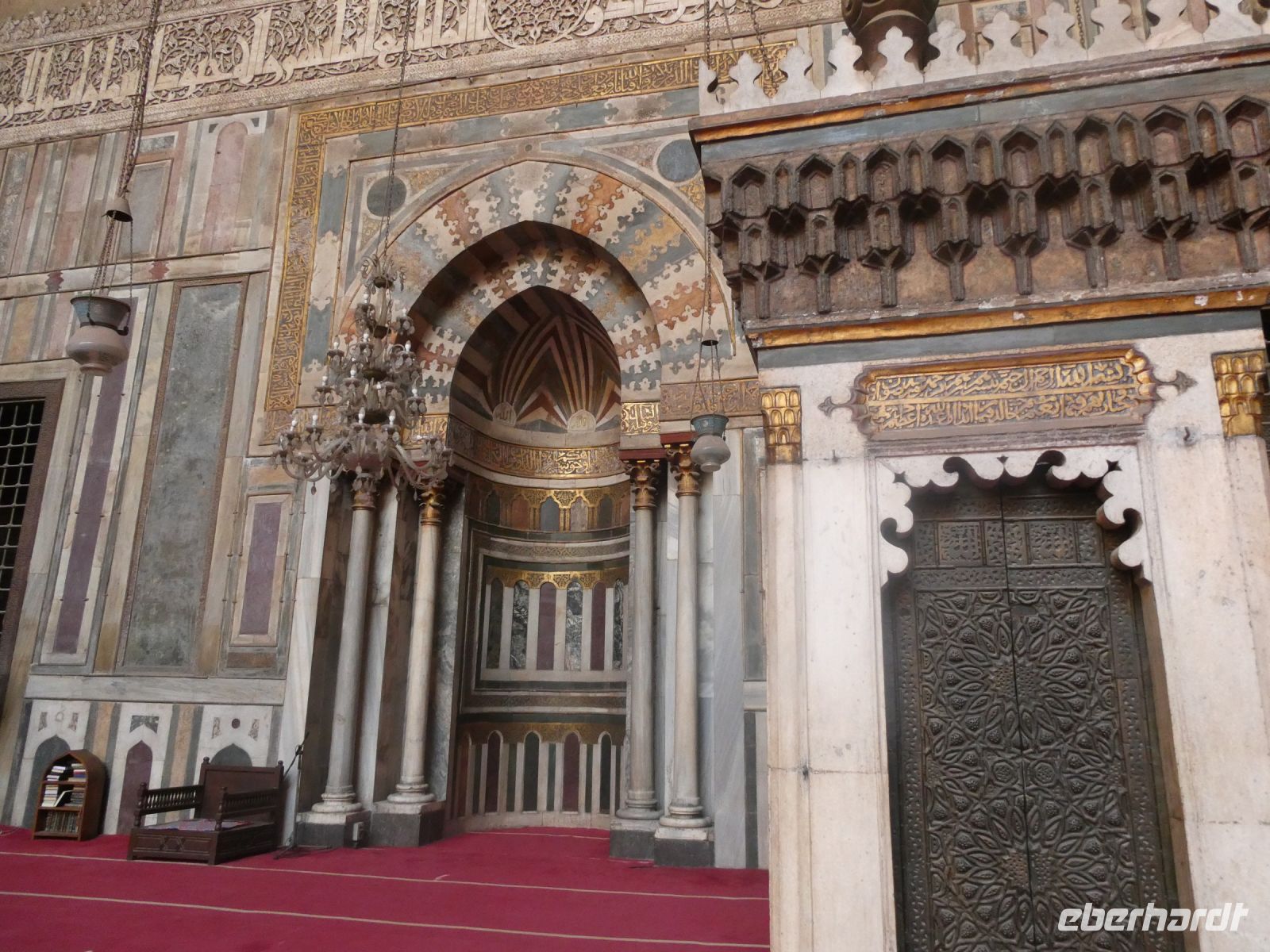 Weiter spazieren wir zur Sultan Hassan Moschee aus dem 14.Jahrhundert. Diese Moschee integrierten gleichzeitig 4 sog. Schulen des Koran. Diese sog. Schulen werden heute noch in den muslimischen Ländern jeweils bevorzugt gelehrt und angewendet und unterscheiden sich in der Strenge und der Auslegung des heiligen Buchs.