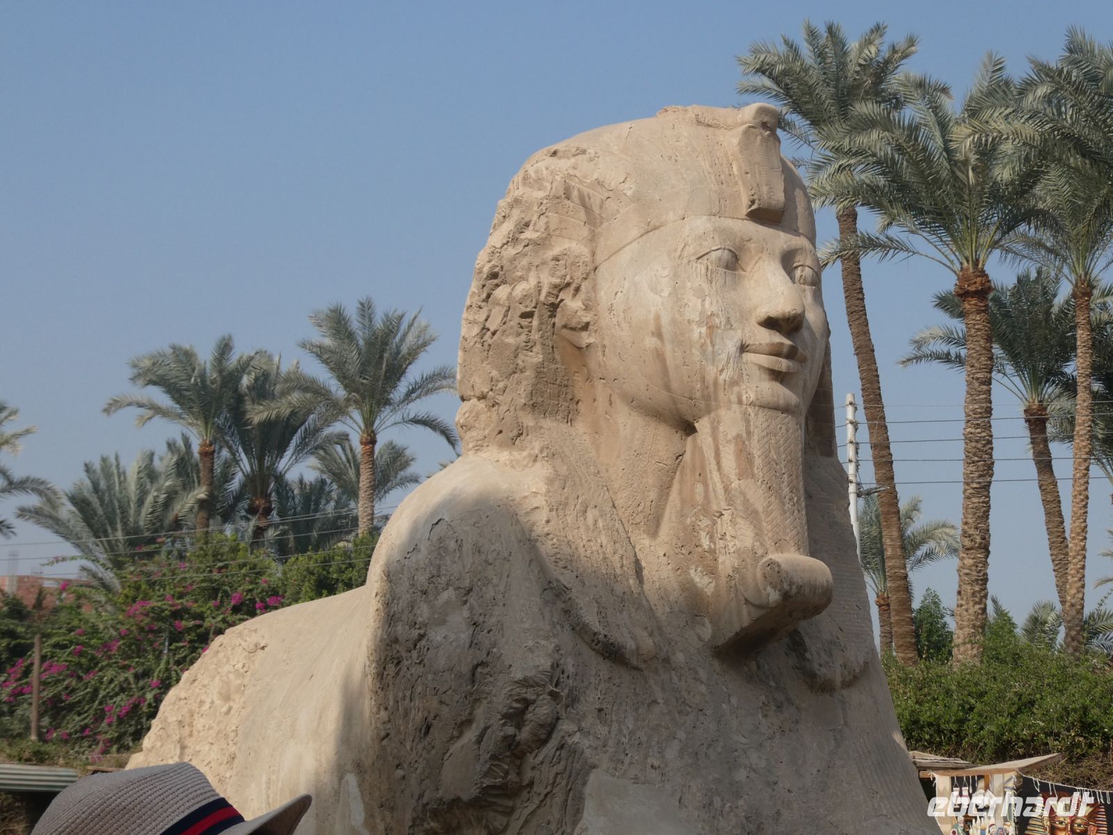 Wir fahren nach Memphis und inzwischen ist es ein wenig wärmer geworden. Hier in Memphis, der alten Hauptstadt des Alten Reichs, ist nicht mehr viel zu sehen. Im Museum können wir die Monumentalstatue von Ramses II. bewundern, ein Herrscher des Neuen Reichs (1550 - 1350 v.Chr.). Die Stadt hatte vor allem Bedeutung als Schnittstelle zwischen Ober- und Unterägypten.