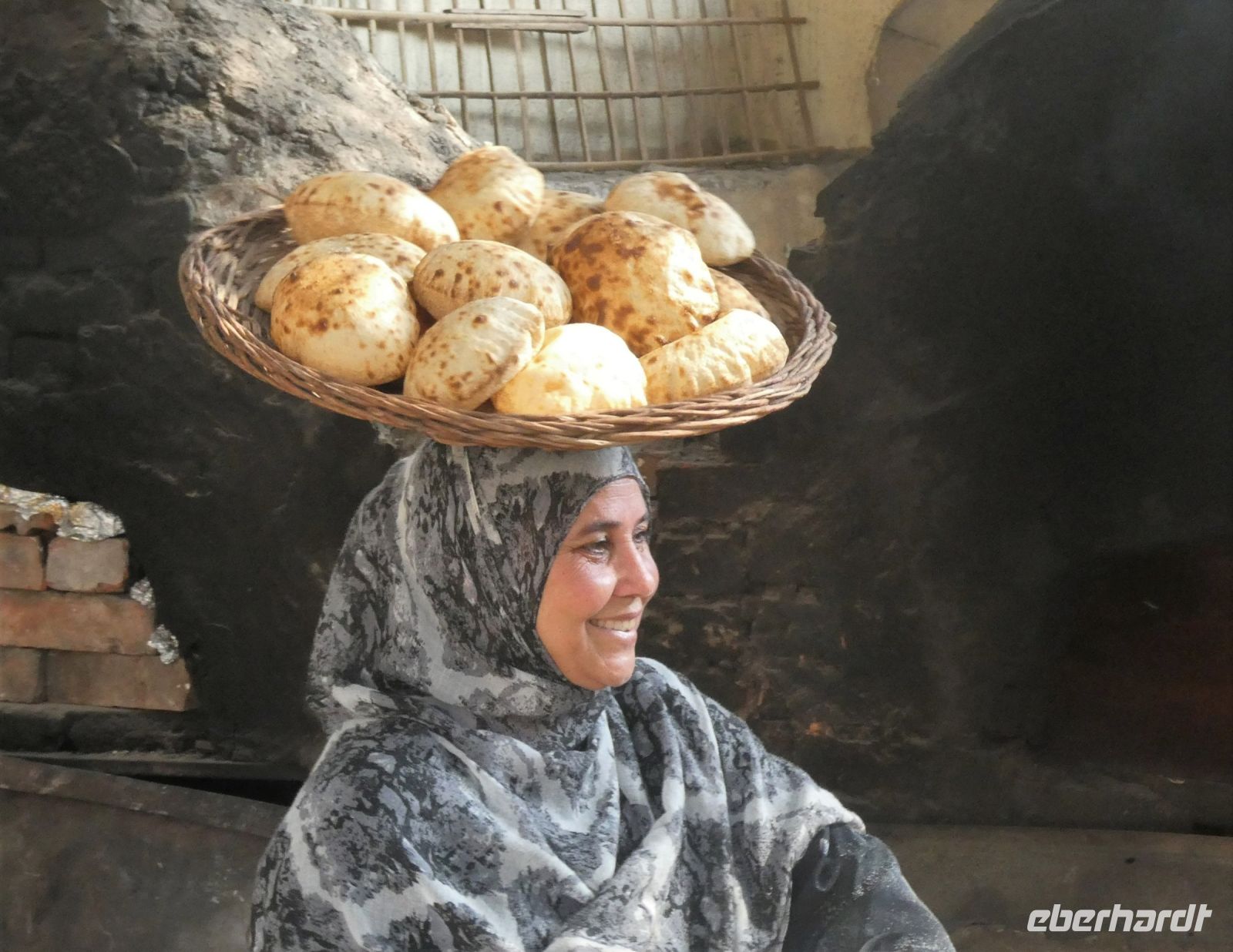 Nun aber brauchen wir alle eine Pause und die verbinden wir mit einem leckeren Mittagessen in einem schönen Restaurant. Es ist ein Familienbetrieb und am Eingang wird frisches Fladenbrot gebacken von dem es auch reichlich zu essen gibt. Die Vorspeisen sind typisch ägyptisch und anschließend kommt köstliches Grillfleisch auf den Tisch. Wer kann da widerstehen?