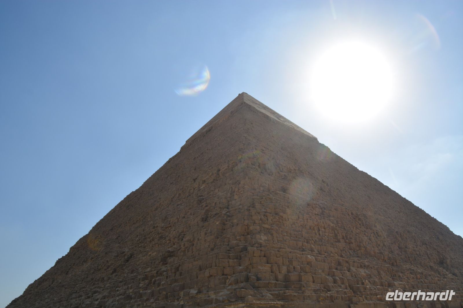 An der Cheops-Pyramide verlassen uns zwei der Reiseteilnehmer für eine kurze Zeit, die sich die Grabkammer der Pyramide von Innen anschauen wollen. Es ist ein etwas abenteuerliches Unterfangen bei dem man keine Platzangst haben darf und teilweise in der Hocke laufen muss.