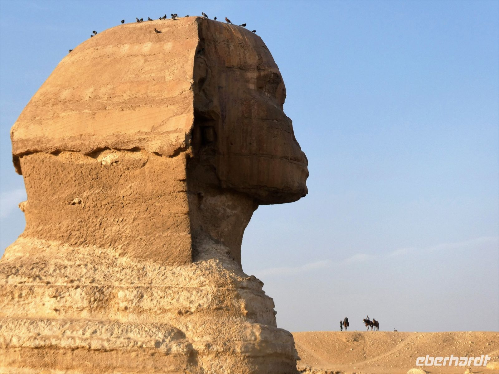 Den Abschluss der Besichtigungen heute bildet der berühmte Sphinx, der von den Soldaten der Mamelukken beschossen und damit beschädigt wurde. Es ist ein Koloss aus rosa Granit von Assuan mit Löwenleib und Menschenkopf. Mit einer Schilderung der besonderen Eigenschaften des Dromedars von Gina, unserer Reisebegleiterin, welches in der historischen Zeit eins der wichtigsten Nutztiere war, beschließen wir den heutigen abwechslungsreichen Tag. Wir ruhen uns zum Abendessen ein wenig aus und packen unsere Koffer. Morgen wollen wir nach Luxor fliegen.