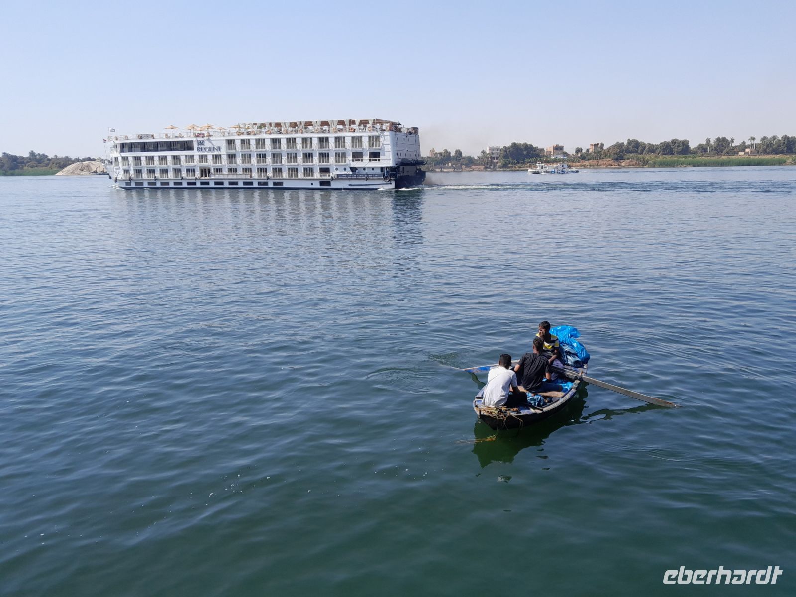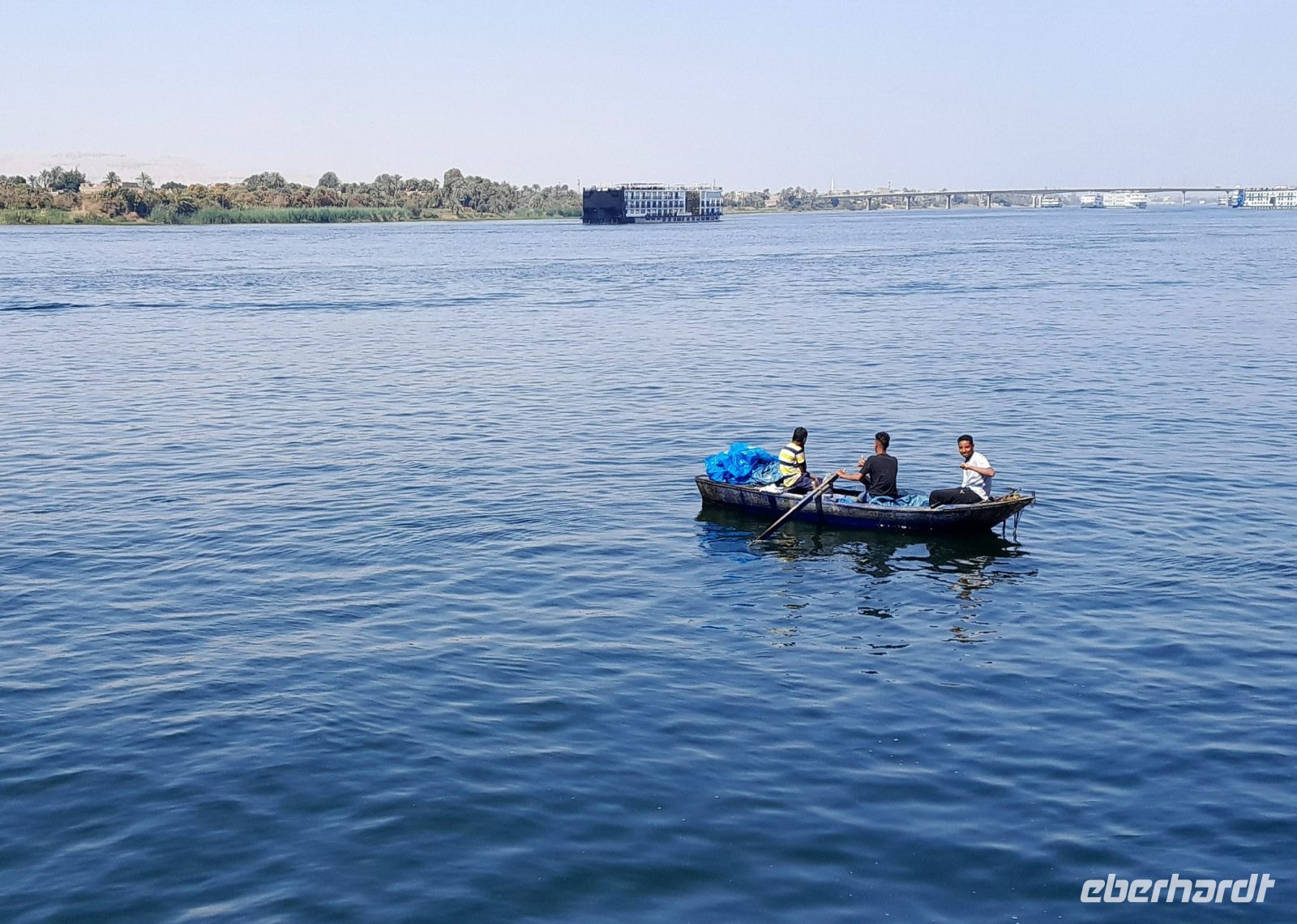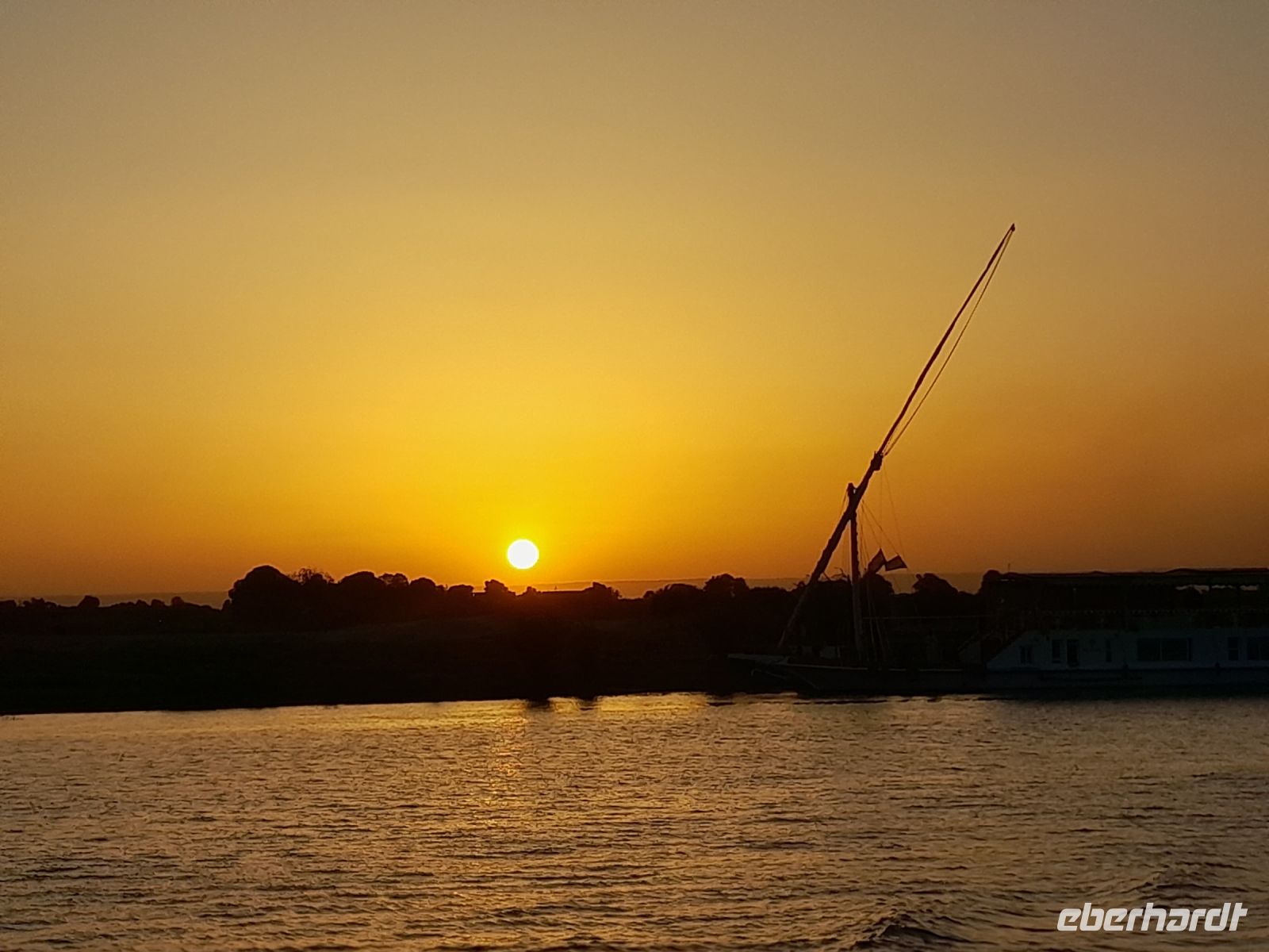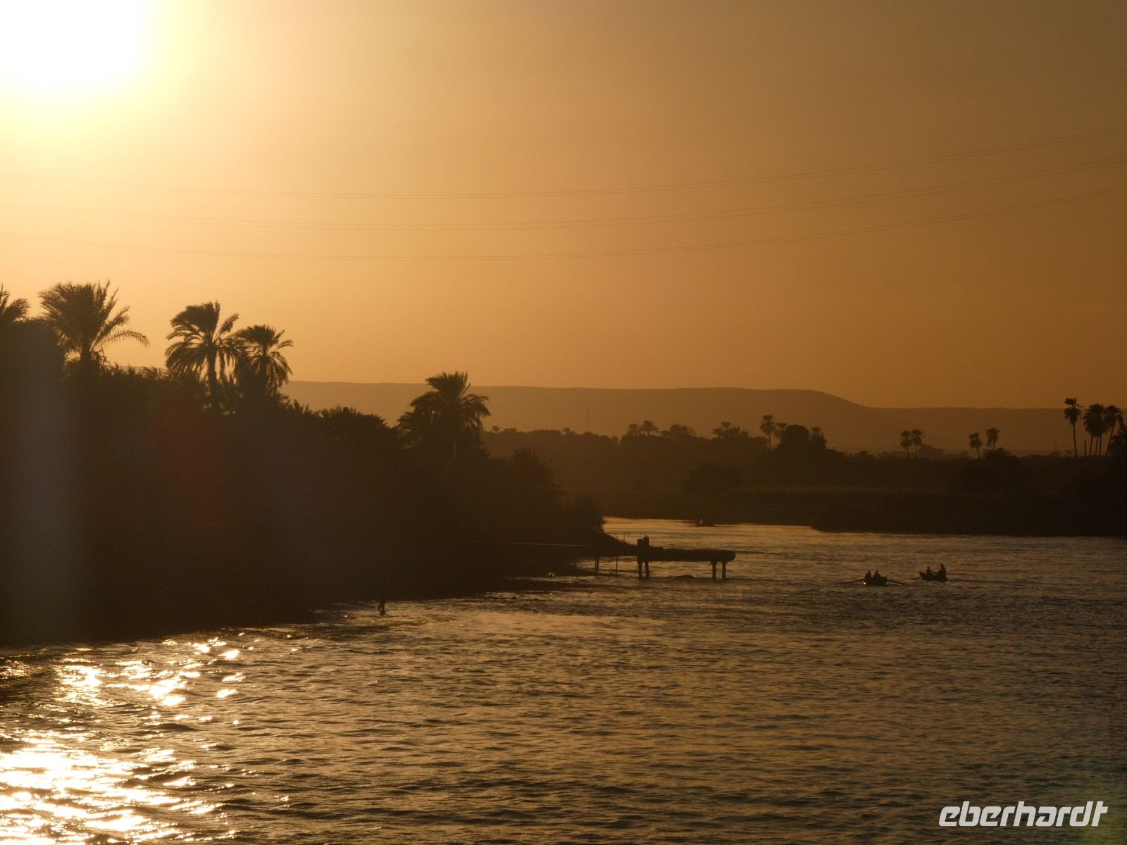 Wir fahren zum Schiff zurück, denn nach dem Mittagessen werden wir Luxor verlassen um in Richtung Edfu zu fahren. Pünktlich legen wir ab gleiten ruhig vorbei an landwirtschaftliche geprägte Landschaft vorbei in Richtung Süden. Die Schleuse bei Esna erreichen wir am späten Abend.
