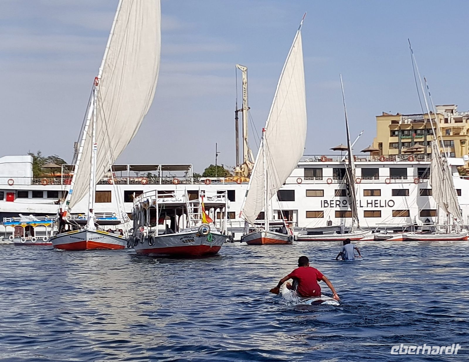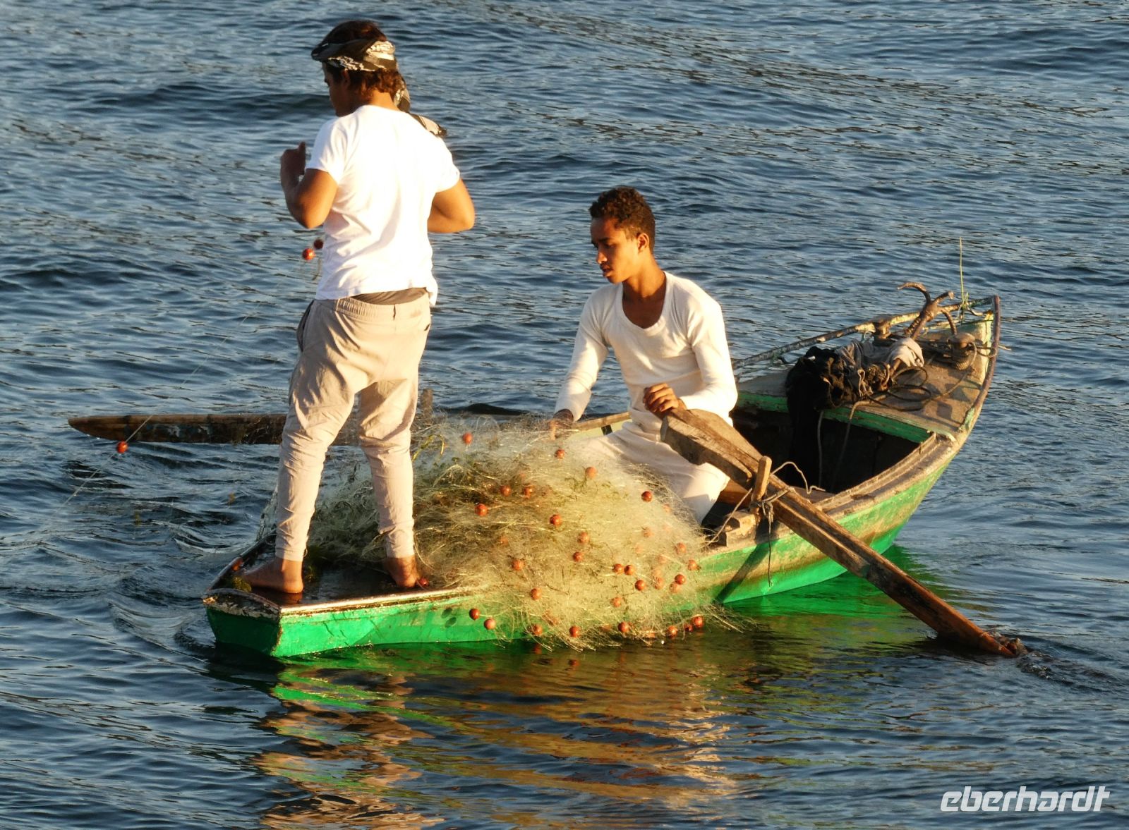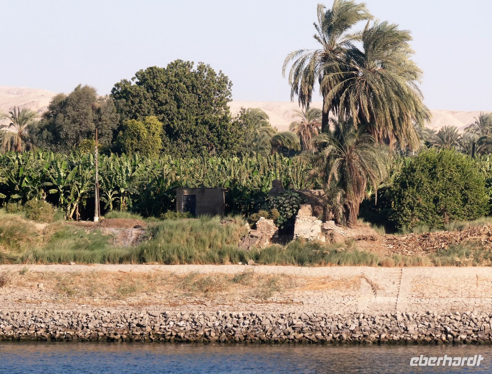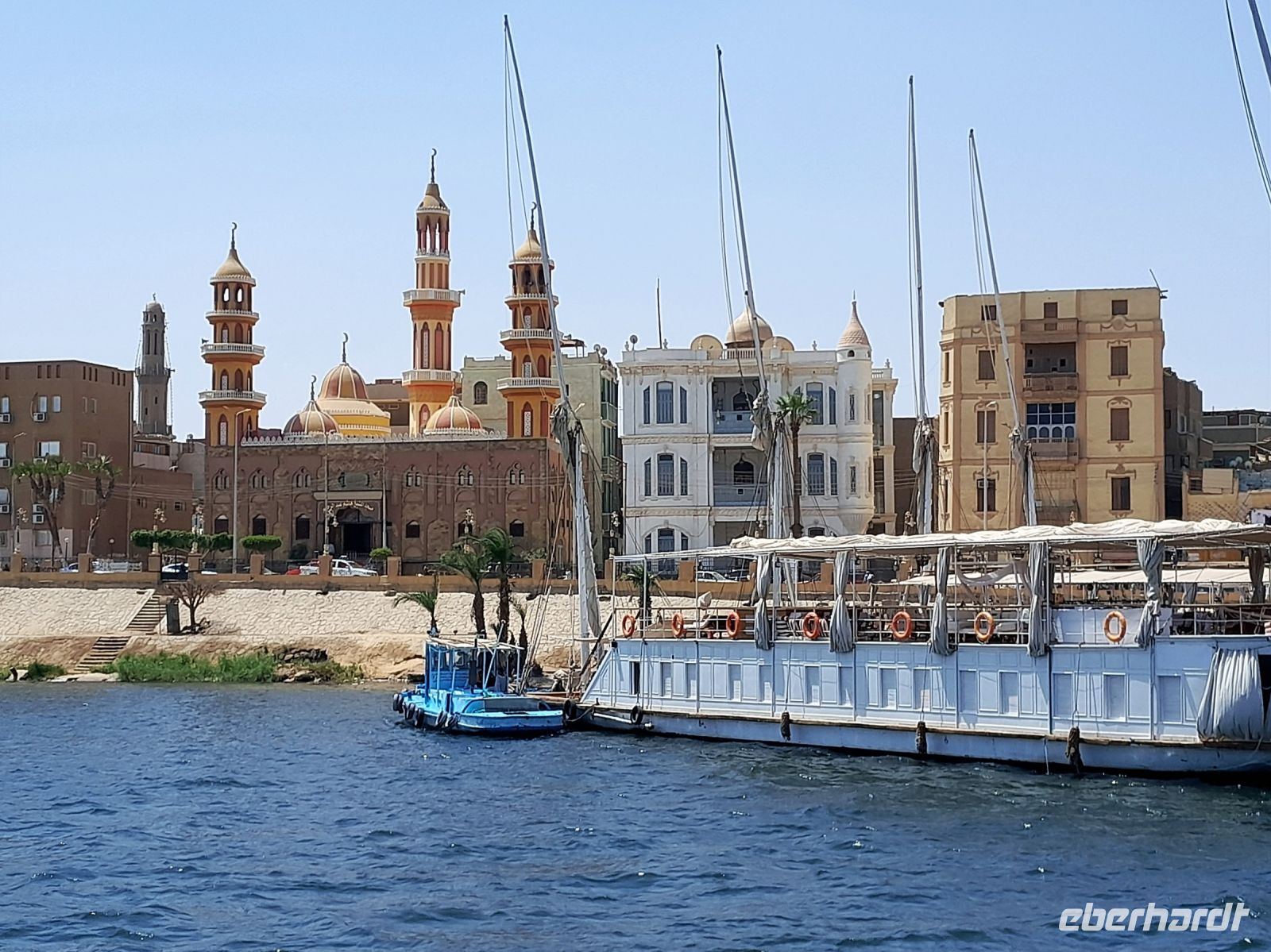Wir fahren zum Schiff zurück, denn nach dem Mittagessen werden wir Luxor verlassen um in Richtung Edfu zu fahren. Pünktlich legen wir ab gleiten ruhig vorbei an landwirtschaftliche geprägte Landschaft vorbei in Richtung Süden. Die Schleuse bei Esna erreichen wir am späten Abend.