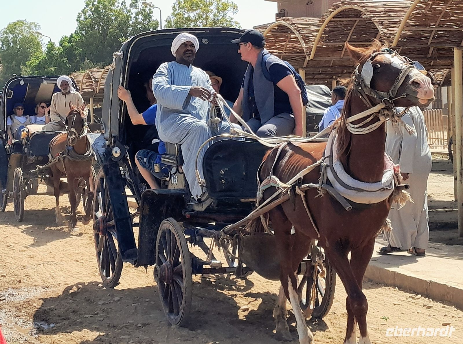Anschließend versucht jeder seine Kutsche zu finden, aber einige kommen einfach nicht. Kurzerhand mietet Essam andere Transportmittel und wir werden sicher wieder auf unser Schiff zurückgebracht. Hier in Esna gibt es eine eingeschworene Gemeinschaft der Kutscher, die böse werden, wenn man nicht mit einer Kutsche fährt aber wir kommen so auch sicher zum Schiff.
