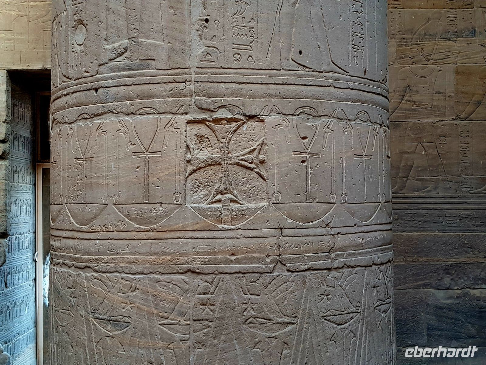 Nach Rückeroberung Ägyptens von den Persern durch Alexander dem Großen verschmolzen für 300 Jahre Ägyptische und Griechische Kultur, von dem dieser Tempel Zeugnis ablegt. Die Stadt Alexandria wurde zum wirtschaftlichen Zentrum Ägyptens. Die letzte Kaiserin dieser Linie, Kleopatra, wählte nach der verlorenen Schlacht gegen Kaiser Augustus denn auch als Ausweg den Tod, ein Thema welches vielfach in der Literatur und in Filmen behandelt wurde. Ägypten wurde in das Weltreich integriert und die ägyptische Kultur wurde mit vielen neuen Strömungen, auch religiösen wie das Christentum, konfrontiert. So finden wir hier auch das Kreuz als christliches Symbol.