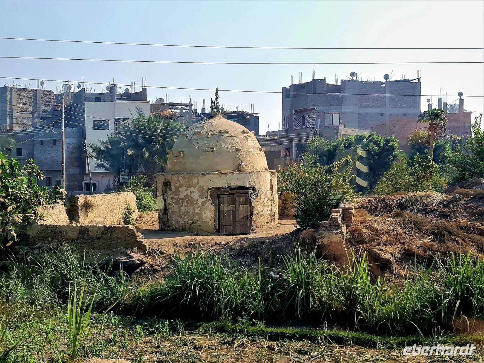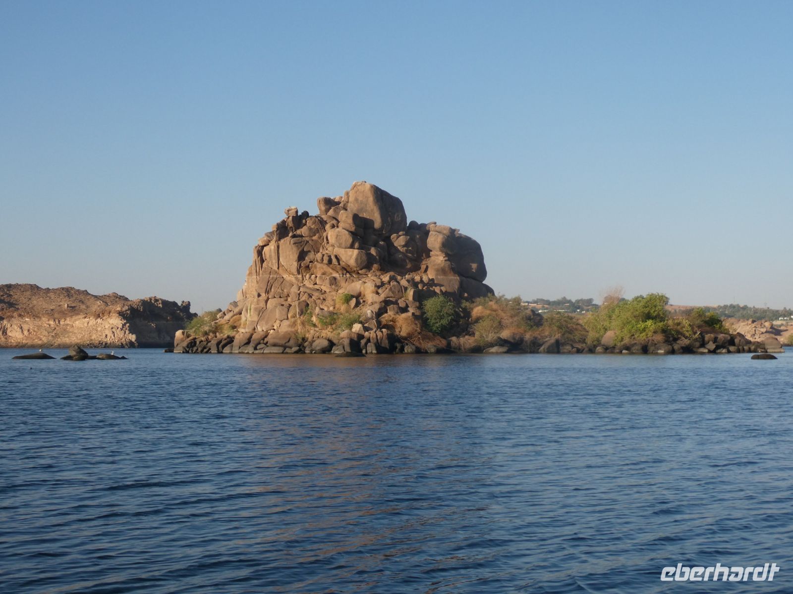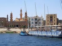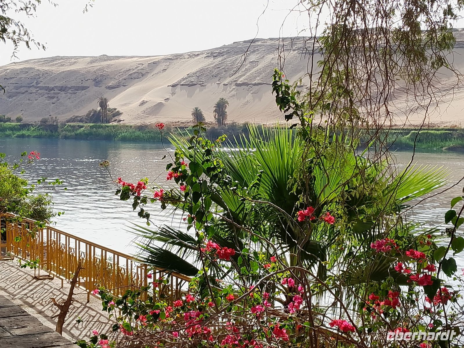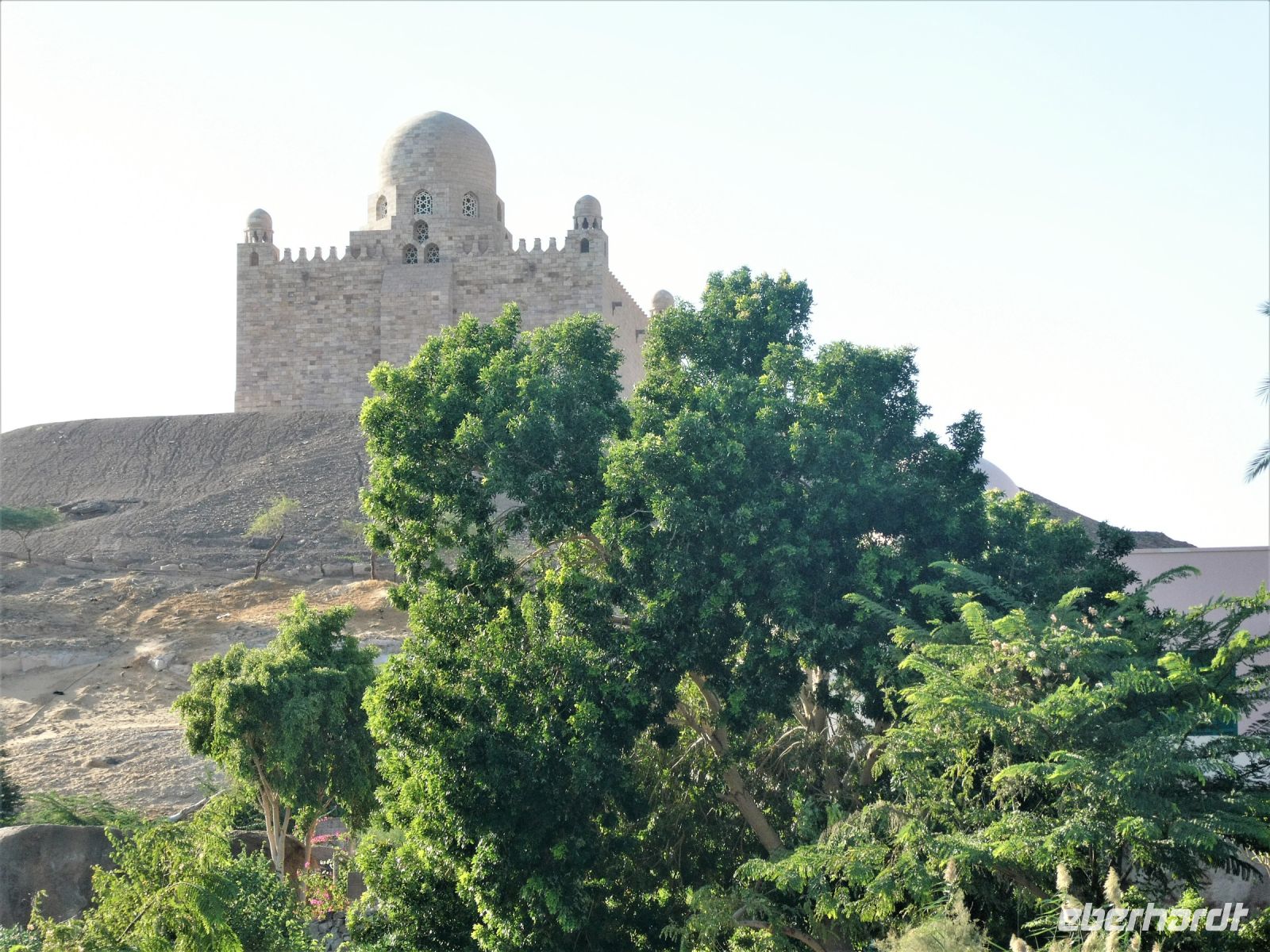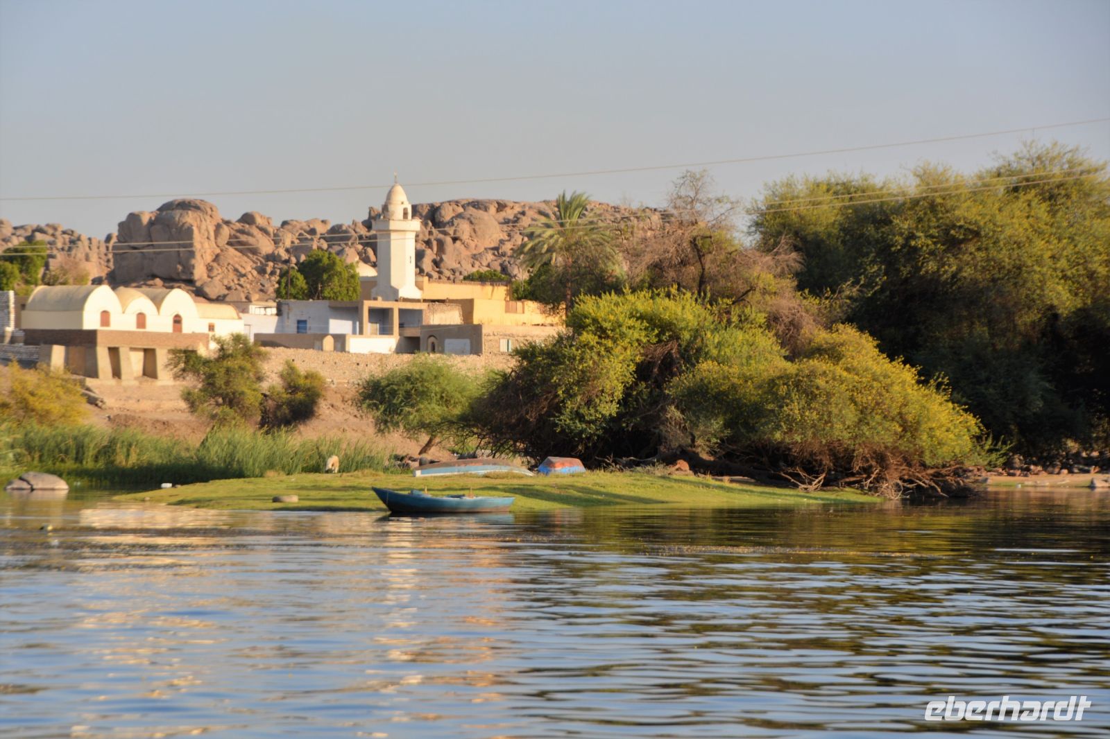 Vorbei geht es auch am Mausoleum des Aga Khan, dem ehemaligen Oberhaupt der Ismailiten und weiter durch ein Naturschutzgebiet. Gräsern und Uferlandschaften säumen das Gewässer, welches mit seinem Schilf und Papyrusstauden ein Vogelparadies ist. Manchmal lässt sich der eine oder andere gefiederte Geselle blicken. Unser Ziel ist am Ende eine Siedlung der Nubier. die ursprünglich ganz Oberägypten besiedelten und schon Ähnlichkeiten mit den Sudanesen aufweisen. Hier in den Dörfern führen sie ihr Leben, heute noch etwas abseits der Touristenströme obwohl wir schon Zeuge werden von Ausflügen durch europäische Reiseveranstalter, die manches Dorf als nubisches Dorf verkaufen, welches keines mehr ist. Wir aber haben die Möglichkeit, eines der noch natürlichen Dörfer zu besuchen. Wir beginnen unseren Rundgang und erfahren so etwas über die Lebensweise dieses Volkes. Von den anwesenden Frauen werden wir beobachtet und natürlich sollen wir auch denen etwas abkaufen. Sie sind gar nicht so scheu nur leider fehlt uns die gemeinsame Sprache. Reich sind die Dörfer nicht, was auch sichtbar ist. Die Nubier sind oftmals an einer Tätowierung zu erkennen. Nach diesem interessanten Aufenthalt ist es Zeit an die Heimreise zu denken. Wir besteigen unser Boot und fahren auf anderem Weg in Richtung Heimatschiff, vorbei am Nilometer wo einst der Wasserstand des Nils abgelesen wurde. Auf unserer Rückfahrt können wir noch einen Blick auf das bekannte Old Katarakt Hotel werfen, wo einst Agatha Christie wohnte und Passagen von ihrem Roman "Tod auf dem Nil" schrieb.