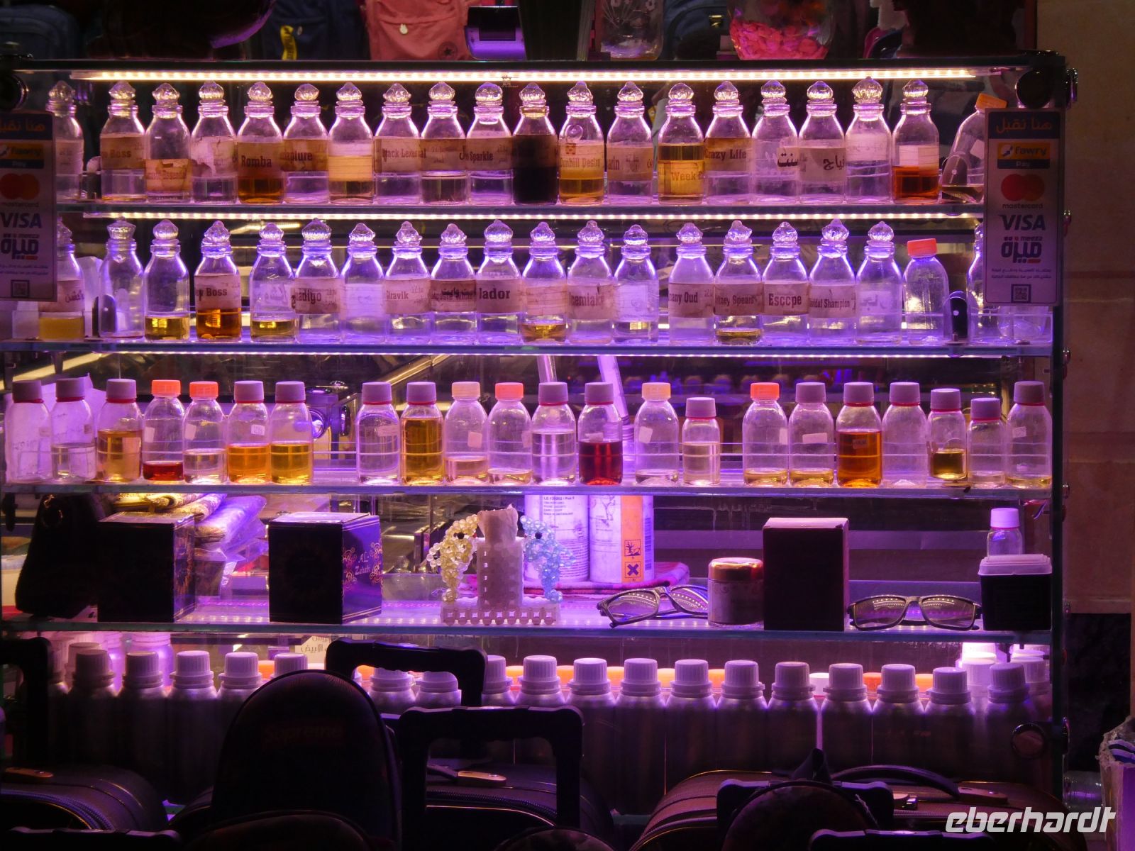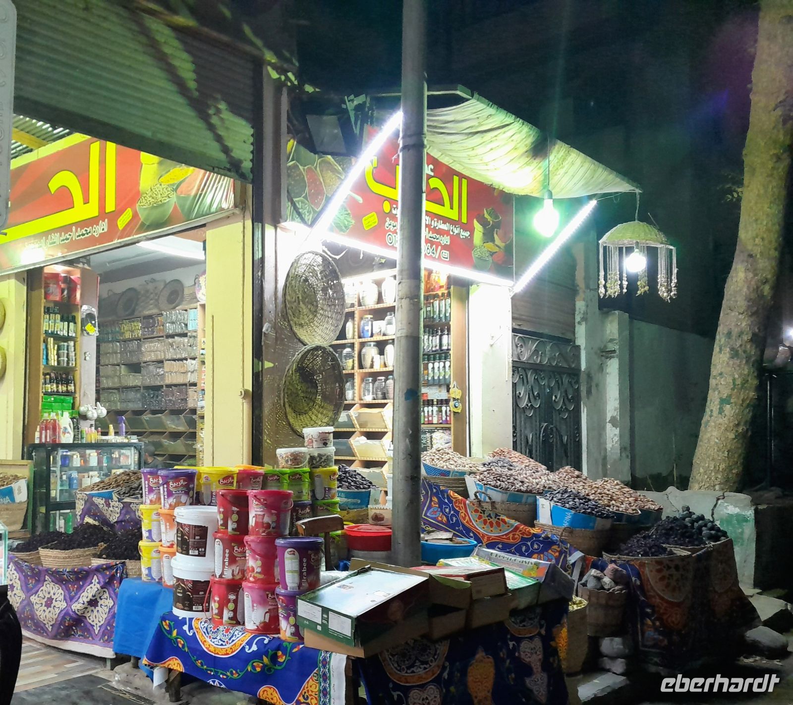 Im Souk ist einiges los und in der Gewürzhandlung bekommen wir eine kleine Erklärung über die verschiedenen Gewürze und ihre Wirkstoffe. Ägypter sind diesbezüglich konservativ, denn man geht immer zum selben Händler seines Vertrauens. Gewürze wurden und werden immer noch auch als Heilmittel eingesetzt. Dem kommt in einer Gesellschaft, in der die Krankenversorgung abhängig vom eigenen Einkommen ist, eine besondere Bedeutung zu. Wir decken unseren Bedarf und gehen anschließend noch in ein typisches Teehaus, in dem sich die Männer treffen. Die ägyptische Frau findet man um diese Uhrzeit eher in der Familie. In traditionellen Familien ist sie jetzt dabei, das Nachtmahl vorzubereiten.