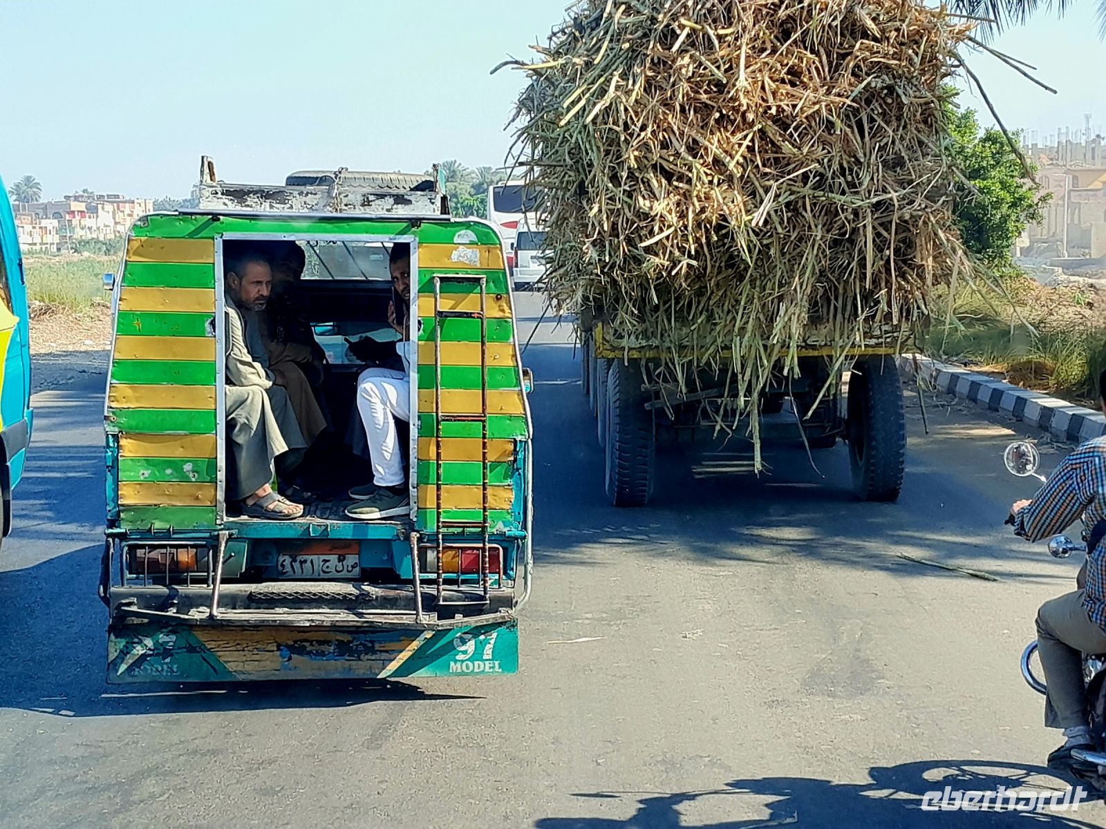 Heute heißt es Abschied nehmen von der freundlichen Besatzung und von ''unserem Schiff". Schnell ist das Gepäck im Bus und wir fahren los. Erst durch landwirtschaftliches Gebiet wo viele Karren mit ihrer Ladung oder auch Menschen bei der Feldarbeit zu sehen sind. Wir kommen an mehreren Kontrollpunkten vorbei denn die Straße nach Hurghada wird strengstens überwacht. Besonders die kleineren Fahrzeuge und die Lastwagen werden genauestens untersucht.
