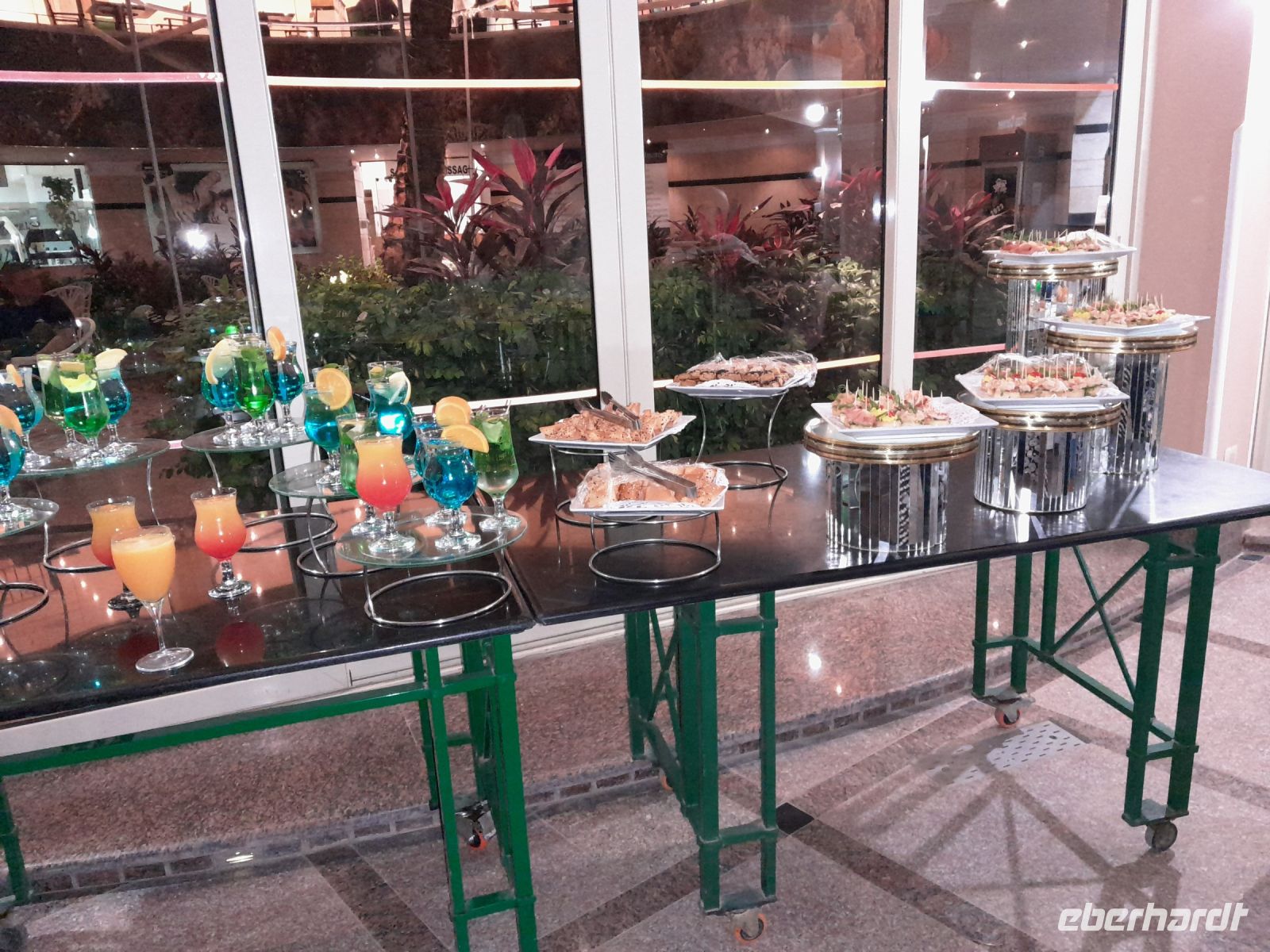 Heute Abend verabschieden wir uns alle gemeinsam von Essam und Ägypten. Wir bekommen im Restaurant heute bunte Cocktails und das Essen als Menu serviert.