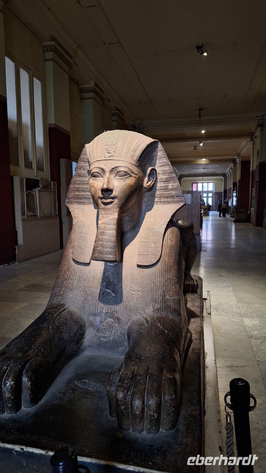 Überpünktlich erreichen wir als erste Gruppe den Eingang des Alten Ägyptischen Museums, der prunkvolle und riesengroße Neubau des Großen Ägyptischen Museums in Gizeh ist zwar fertiggestellt und eingeweiht, aber das Datum der offiziellen Eröffnung für die Öffentlichkeit wird immer wieder verschoben und steht noch in den Sternen. Wir können froh sein, dass die wichtigsten Objekte immer noch an ihrem alten Platz im Kolonialbau aus dem 19. Jahrhundert zu finden sind. Essam trimmt uns darauf, sofort nach der Öffnung des Außentors so schnell wie möglich zum Eingang zu gehen und dort so viel Platz wie möglich einzunehmen, um andere Besucher hinter uns zu halten. Während unser Reiseleiter die Audiogeräte für die Besichtigung abholt, tun wir wie uns gesagt wurde und bilden einen Halbkreis vor dem großen Holztor. Wir kommen uns ein wenig vor wie die römischen Legionäre in Asterix und Obelix in Ägypten wenn sie sich zur Schildkröte formieren. Wir sind aber durchaus erfolgreich mit unserer Taktik. Eine weitere Lektion lernen wir auch gleich am ersten Tag, Vitamin B oder auch Bakschisch, öffnet Tür und Tor. Tatsächlich sind wir kurz nach 9 Uhr die ersten Besucher des Museums und im Stechschritt marschieren wir zu den wichtigsten Exponaten. Wir machen eine kleine Zeitreise durch die verschiedenen Epochen des Alten Ägyptens und sich fasziniert von den vielen Details, auf die uns unser Reiseleiter hinweist. Wir haben auch die Möglichkeit die Fundstücke aus dem Grab Tutanchamuns zu besichtigen. Essam erklärt uns dass der sehr jung verstorbene Pharao eigentlich ein recht unwichtiger König gewesen ist, dessen Bekanntheit eigentlich allein daher rührt, dass sein Grab das einzige im Tal der Könige gewesen ist, das nie von Grabräubern gefunden worden ist. Als wir uns die zahlreichen Grabbeigaben und die kunstvollen geschaffenen Sarkophage ansehen, können wir uns kaum ausmalen wie reich die Beigaben in den Gräbern der wirklich bedeutungsvollen Pharaonen wie Ramses II. gewesen sein müssen. Wir sind sehr gespannt darauf, uns die echten Grabkammern in den nächsten Tagen ansehen zu können.