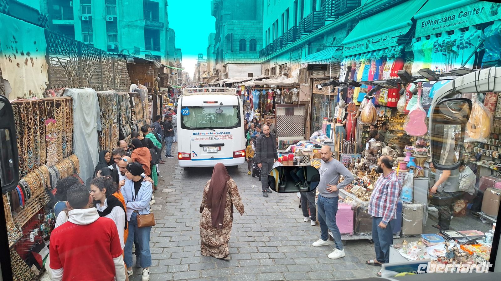 Frisch gestärkt geht es nun zum berühmtesten Bazar Kairos, dem Khan-el-Khalili aus dem 14. Jahrhundert. Die engen Gassen sind voll mit Ständen und Händlern, die ihre Waren anpreisen und natürlich auch verkaufen möchten. Da heißt es entweder standhaft bleiben oder gut handeln. Einige aus unserer Gruppe machen schon die ersten Erfahrungen, während der Rest einfach nur fasziniert ist von dem geschäftigen Treiben.