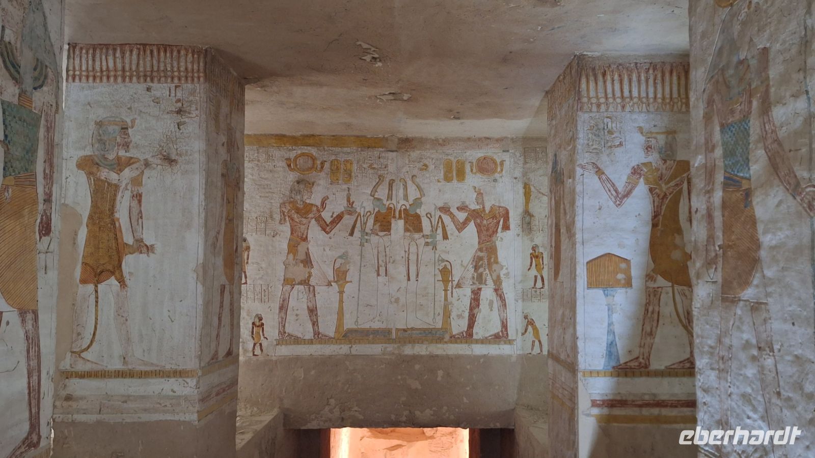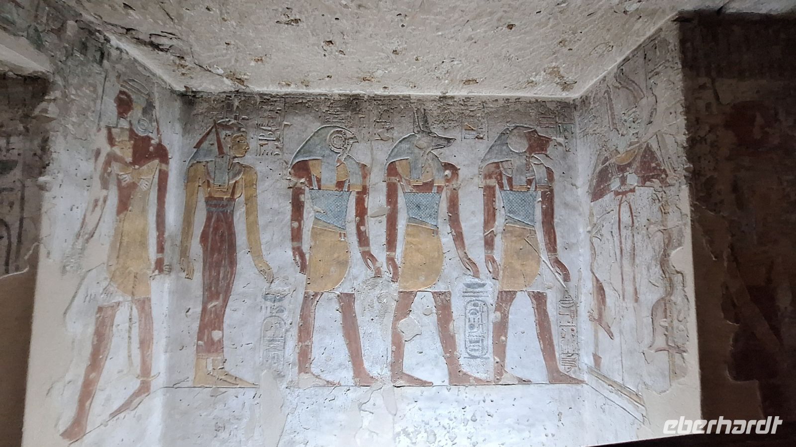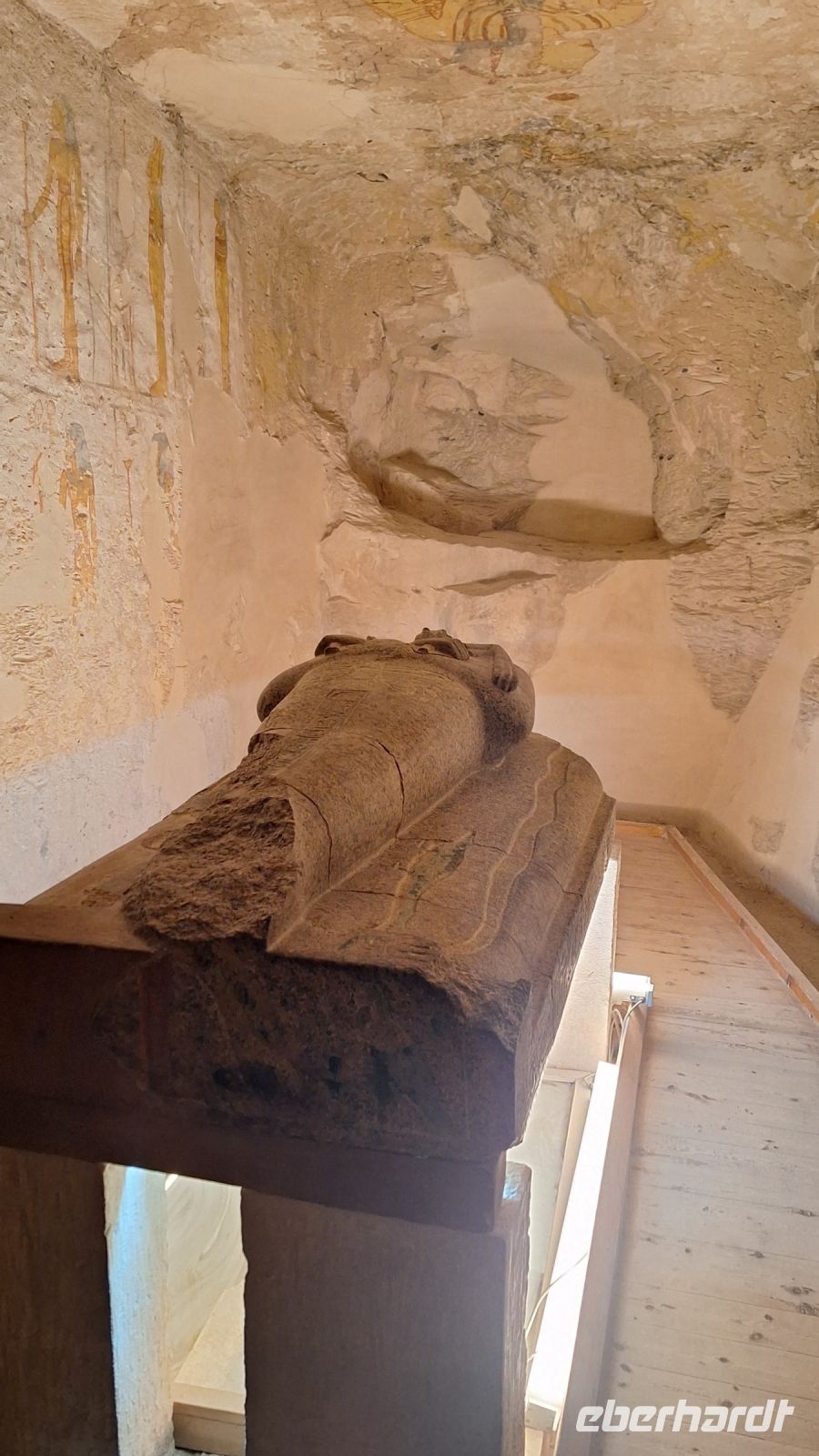 Mittlerweile hat man 66 Königsgräber gefunden, das berühmteste ist das von Tutanchamun, der schon mit 19 Jahren starb und dessen Grabbeigaben wir im Museum in Kairo gesehen haben.
