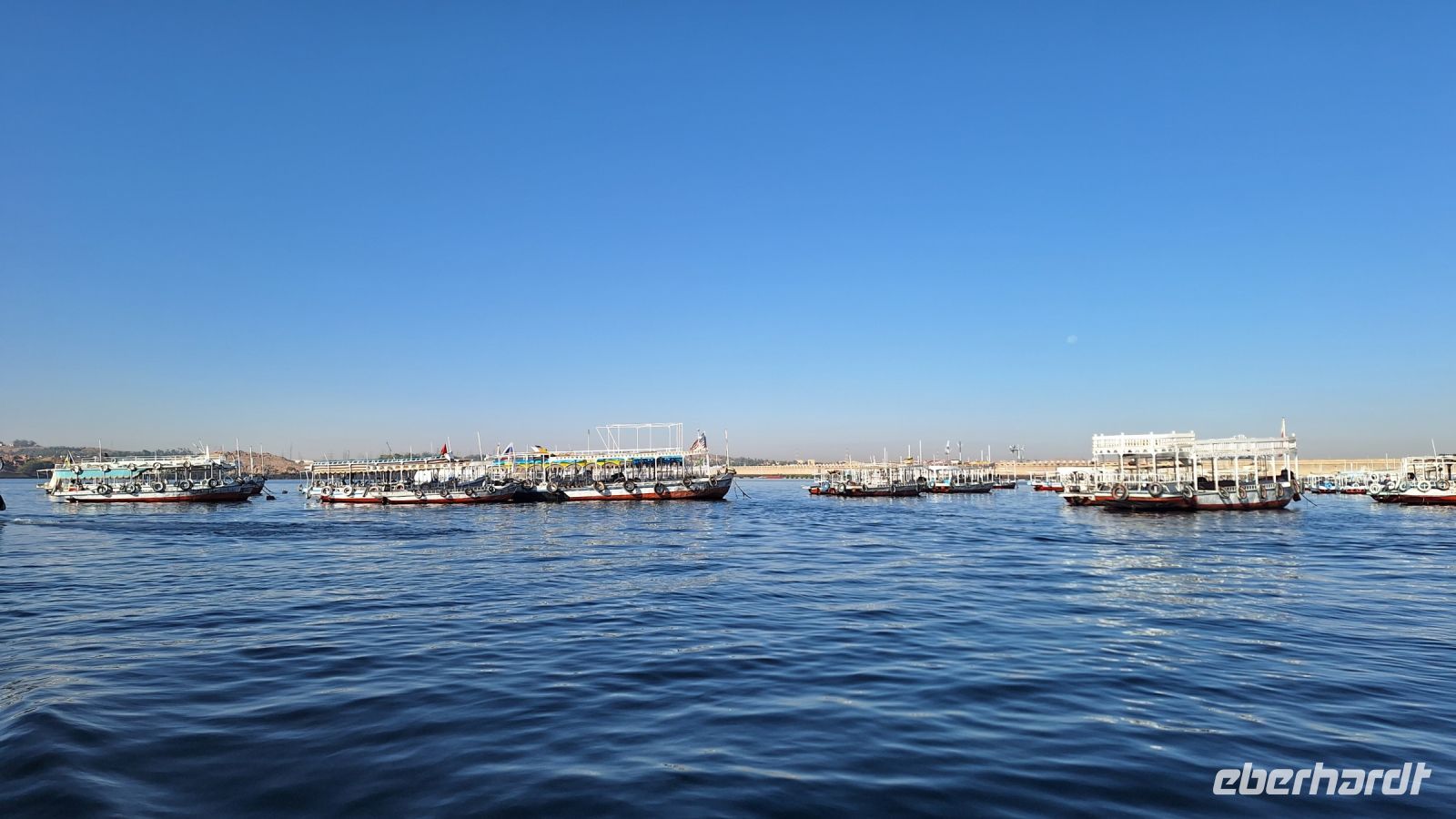 Am späten Vormittag fahren wir zum Schiffsanleger direkt vor dem Luxor-Tempel und checken auf unserem Flusskreuzfahrtschiff ein. Unser Domizil für die nächste Woche ist die Steigenberger Legacy. Nach einem kühlen Begrüßungsgetränk dürfen wir dann auch unsere schönen Kabinen mit Nil-Blick beziehen und schon bald wird es dann Zeit für die erste Mahlzeit an Bord.