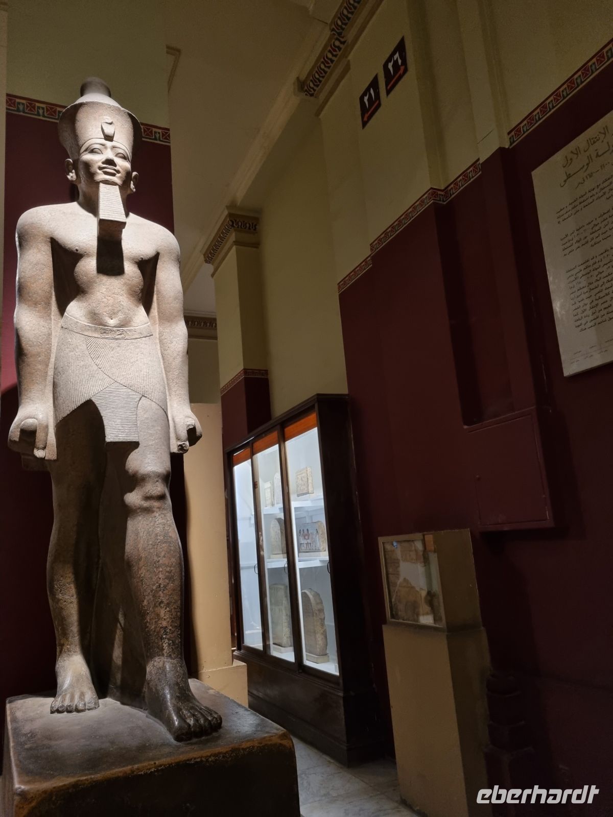 Nach einem reichhaltigen Frühstück in unserem Hotel "Hilton Pyramids Golf" erwartete uns unsere erste Entdeckungstour durch die riesige Metropole am Nil. Mit ihren über 20 Millionen Einwohnern ist die Hauptstadt Ägyptens sowohl die größte Stadt der arabischsprachigen Welt, als auch das politische, wirtschaftliche und kulturelle Zentrum der gesamten Region. Essam, unser örtlicher Reiseleiter, begrüßte uns herzlich und wir begannen sofort mit einem Highlight – dem legendären Ägyptischen Museum. Kaum zu glauben, wir waren die ersten Besucher am Eingang und konnten das Museum somit viel besser auf uns wirken lassen, als mit den großen Menschenmassen, die tagtäglich hierher strömen. Der "frühe Vogel..." zahlte sich also bereits heute aus... Eigentlich plante man bereits vor einer ganzen Weile den Umzug der unzähligen Exponate in das neue Ägyptische Museum nahe den Pyramiden von Gizeh, aber dieser wurde bereits mehrfach verschoben und nur Allah weiß, wann dies in der Realität geschehen wird. Wir sahen eine Auswahl an faszinierenden Ausstellungsstücken und ganz besonders natürlich den berühmten Grabschatz von Pharao Tutanchamun. Tief beeindruckt ging es mit dem Bus durch die Straßen der quirligen Metropole weiter und wenig später passierten wir die Totenstadt bzw. erklommen die Anhöhe zur Muhammad-Ali-Moschee, die umgangssprachlich auch "Alabastermoschee" genannt wird. Sie zählt immerhin zu den bekanntesten historischen und archäologischen Wahrzeichen der Stadt. Allein die Lage am Rande der alten Zitadelle von Saladin und die berühmten hoch aufragenden Kuppeln und Minarette sind einzigartig. Erbaut wurde die Moschee vom Architekten Yousif Boushnaq in Anlehnung an die Sultan Ahmed Moschee in Istanbul. Die unteren Teile des Gebäudes und des Vorplatzes sind aus Alabaster errichtet worden und daher stammt auch der deutsche Name der Moschee. Von der Terrasse des Hügels vor der Moschee hatten wir dann einen grandiosen Ausblick auf die riesige Stadt und konnten die Dimensionen ihrer Größe besser einordnen. Vor unserer wohlverdienten Mittagspause stoppten wir noch an einer der größten mittelalterlichen Moscheen Kairos, der Sultan-Hasan-Moschee unterhalb der Zitadelle und wir kamen sogar in den Genuss, dass ein Muezzin extra für uns den Gebetsruf sang – ein ganz magischer Augenblick, dies so aus der Nähe erleben zu dürfen...! Danach stärkten sich die meisten Gäste in einem Lokal namens "Bonne Soirée". Hier erwartete uns ein einheimisches Buffet mit gegrillten Auberginen, Hummus, kleinen Fleischbällchen und vielem mehr... Alles schmeckte hervorragend und nun hatten wir wieder genug Kraft getankt und konnten uns wagemutig in einen der größten orientalischen Basare der Welt stürzen – den "Khan el-Khalili" mitten im Zentrum von Kairo. Es ist schier unmöglich mit der gesamten Reisegruppe durch die engen Gassen mit den unzähligen Ständen und kleinen Lädchen zu gehen und demnach beschlossen wir, uns einen Treffpunkt auszumachen. Auf ging´s ins Getümmel und wir erkundeten den Hauch von 1001 Nacht, der eigentlich immer mitschwingt, wenn man auf einem Basar unterwegs ist. Hier gab es einfach alles, angefangen von den kleinen Kaffeekännchen, in denen der würzige arabische Kaffee gekocht wird, Trockenfrüchte, Gewürze, Wasserpfeifen, Schachbretter, orientalische Lampen, Gold, Silber und natürlich unzählige Schals, Tücher und Bauchtanzgewänder. Nach etwa einer Stunde waren wir von den vielen Farben, dem Gassengewirr und den Menschenmassen ziemlich ermüdet und kehrten sehnsüchtig zu unserem Bus zurück. Am frühen Abend erreichten wir voller Eindrücke erneut unser Hotel in Giseh und labten uns am üppigen Abendbuffet, probierten einheimisches Bier oder auch einheimischen Wein und fielen müde in unsere Betten.