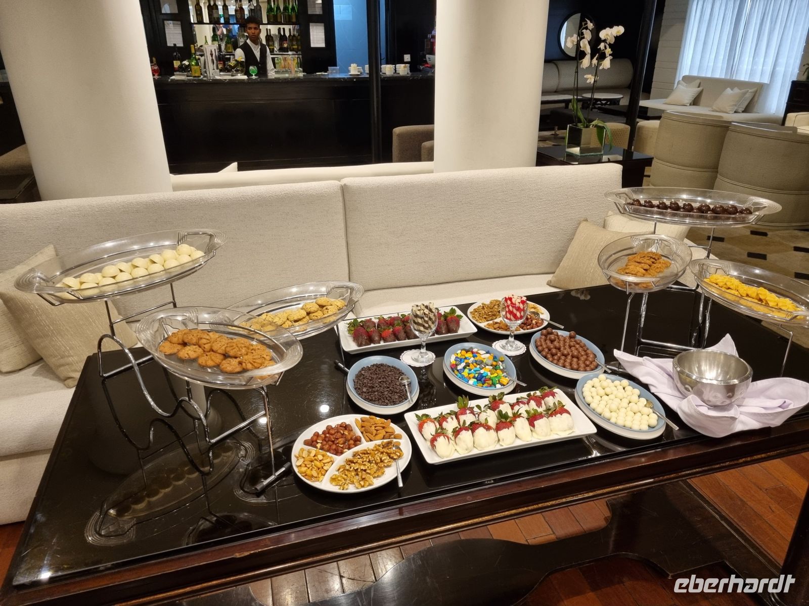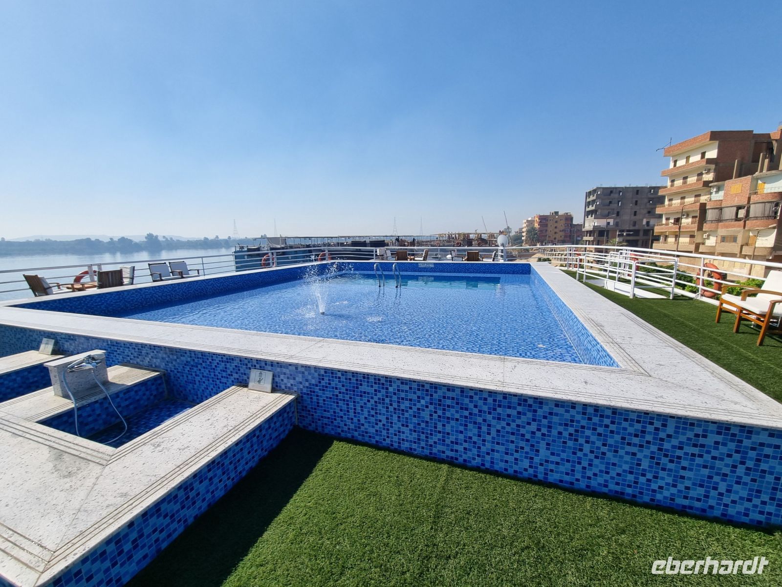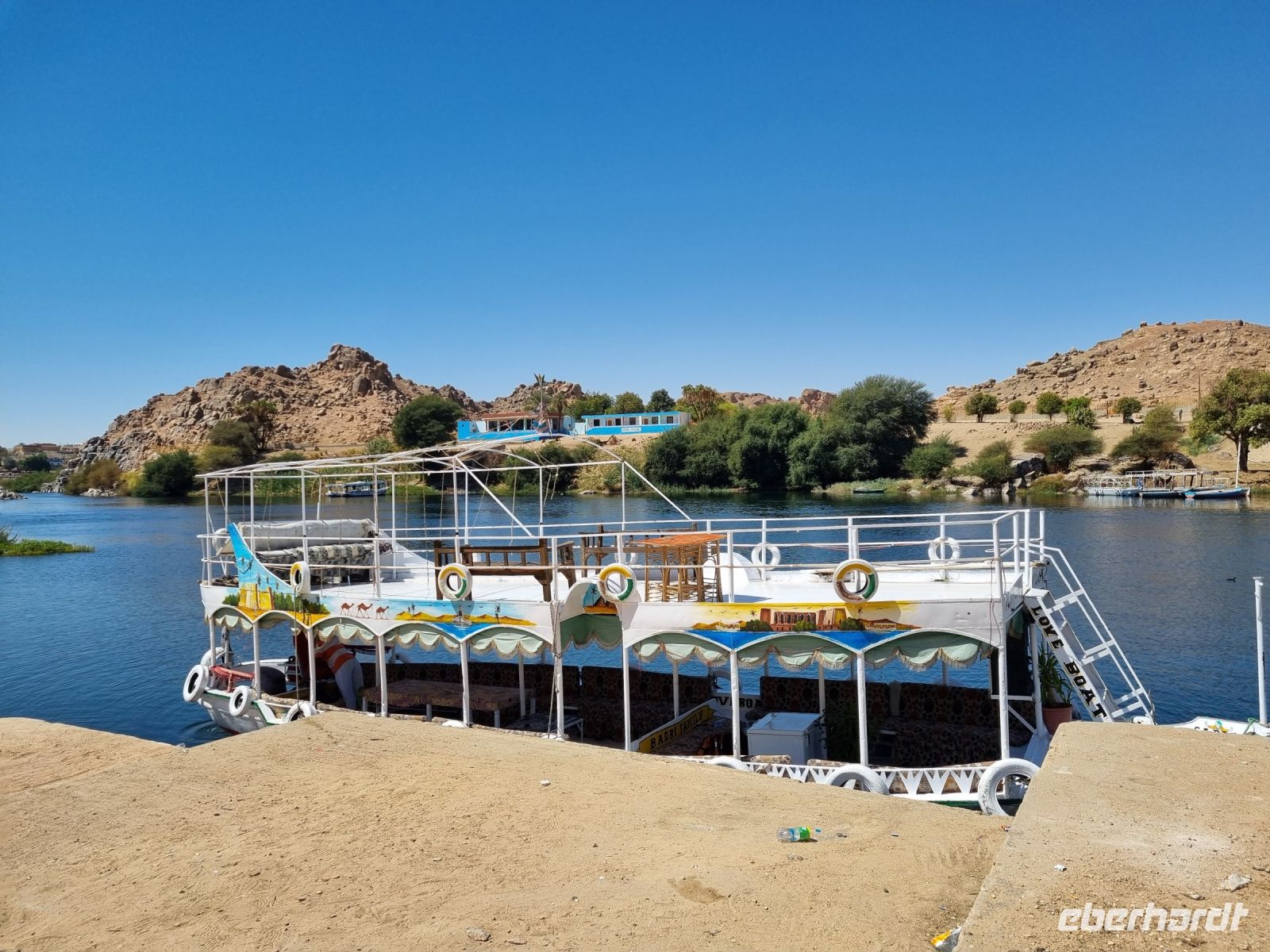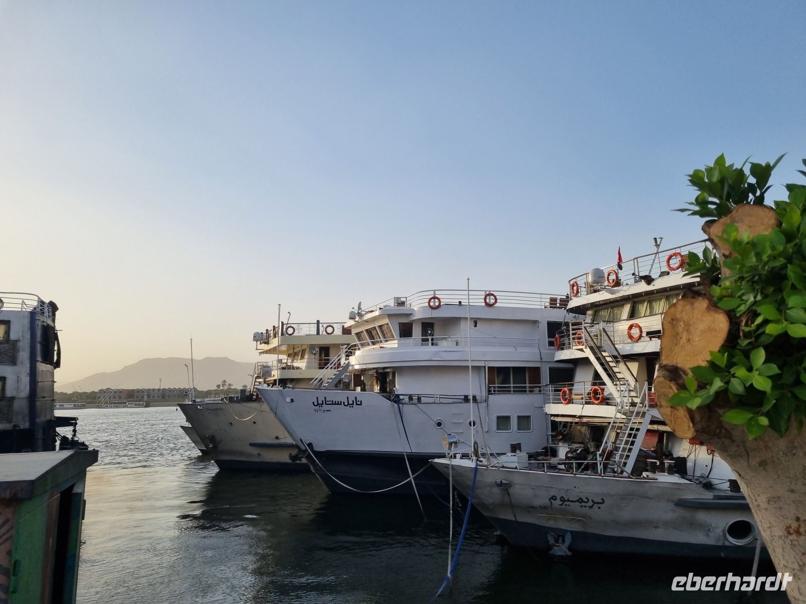 Eine Mittagspause auf unserem Schiff weckte die Lebensgeister und wir verließen Assuan. Am späten Nachmittag erreichte die MS "Nile Style" erneut die Anlegestelle in Kom Ombo und hier gingen wir nochmals von Bord, allerdings diesmal mit dem Gedanken an eine Shisha-Wasserpfeife bzw. ein gemütliches Tee- und Kaffeetrinken in entspannter orientalischer Atmoshäre. Die Firma Eberhardt TRAVEL lud uns dazu ein! Ein Barbeque-Abendessen auf dem Sonnendeck und eine anschließende Galabeya-Party in der Lounge-Bar rundeten diesen erlebnisreichen Tag ab. Noch an diesem Abend erreichten wir Edfu, wo wir die Nacht verbrachten.
