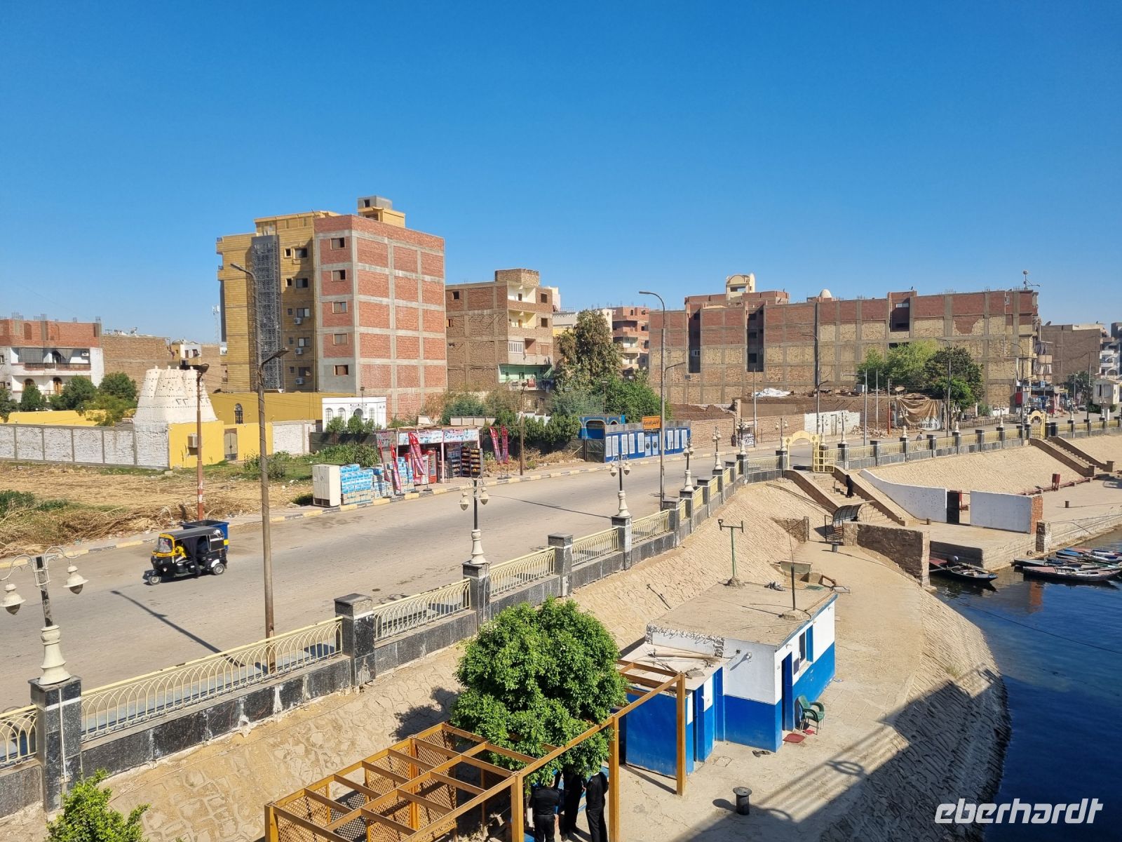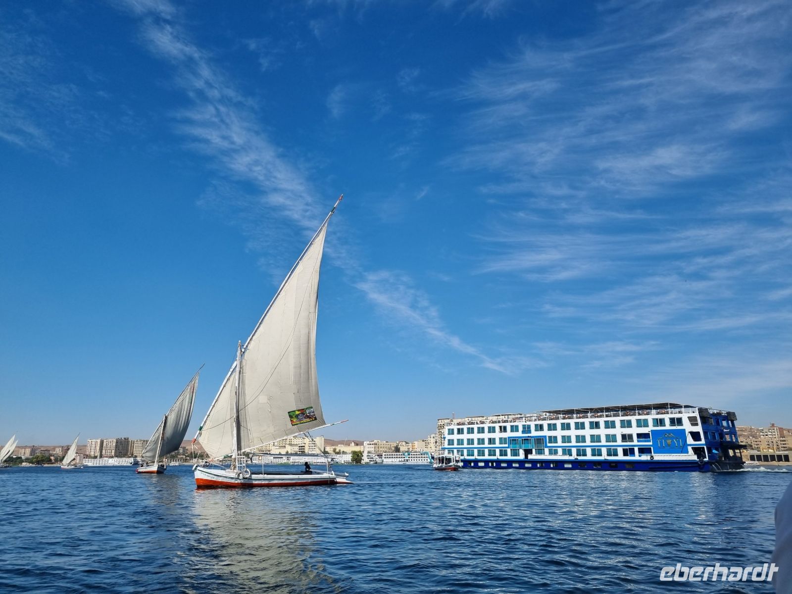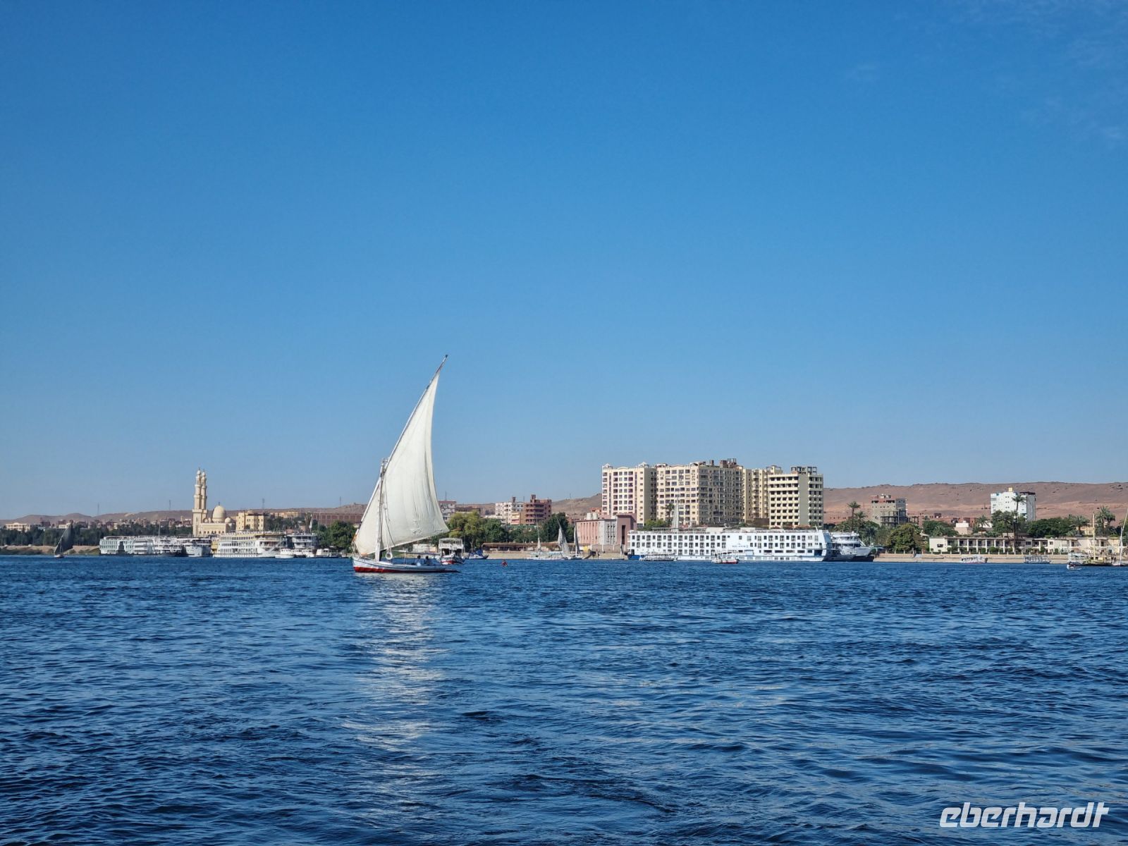 Am frühen Morgen verließen wir Edfu und brachen zur letzten Etappe unserer spannenden Nilkreuzfahrt auf. Dieser Tag begann mit den Dahingleiten auf dem Nil und erneut passierten wir am späten Vormittag die Schleuse von Esna. Zuvor jedoch hörten wir einen spannenden Vortrag von Essam zur Stellung der Frau und der Familie in Ägypten, wo uns viel Wissenswertes und uns bislang Unbekanntes berichtet wurde. Am Nachmittag kamen wir in Luxor an, wo wir die Gelegenheit zu einem gemütlichen Spaziergang in die Altstadt nutzten. Auf dem hiesigen Basar wurden letzte Souvenirs gekauft und wir genossen letztmalig die quirlige Atmosphäre von Luxor. Es war schließlich unser letzter Abend hier, bevor es am nächsten Tag in Richtung Rotes Meer gehen sollte.