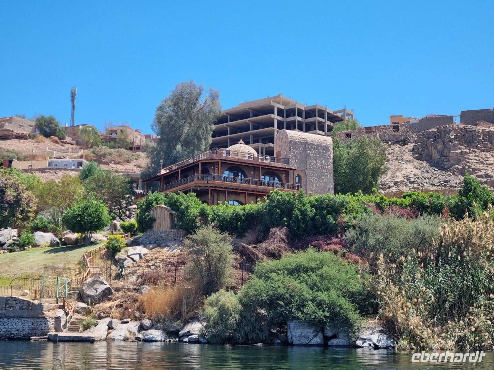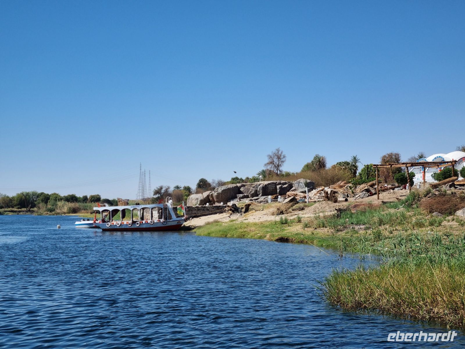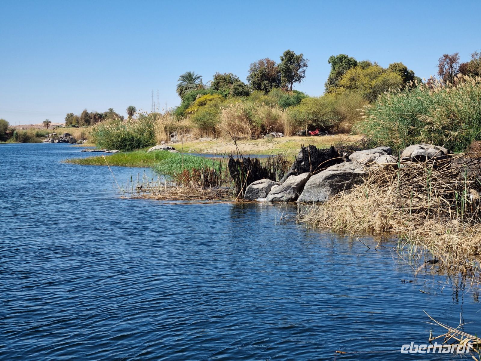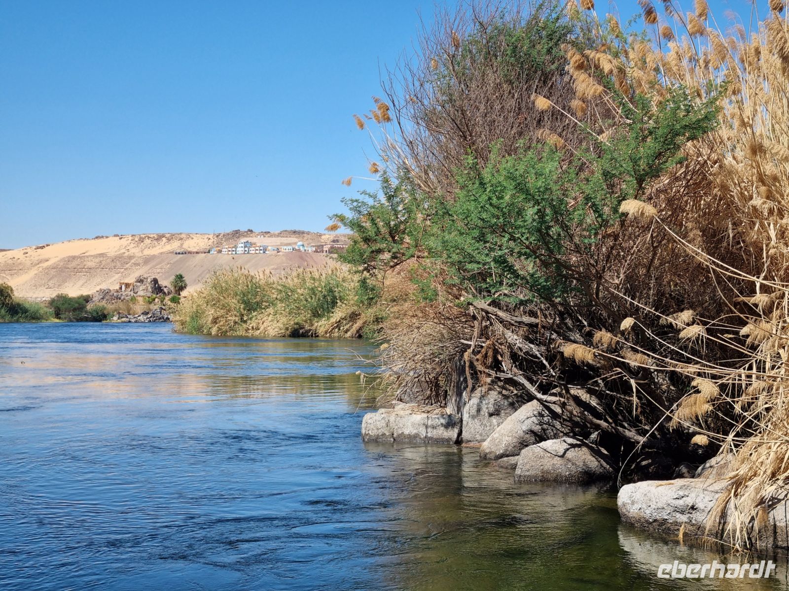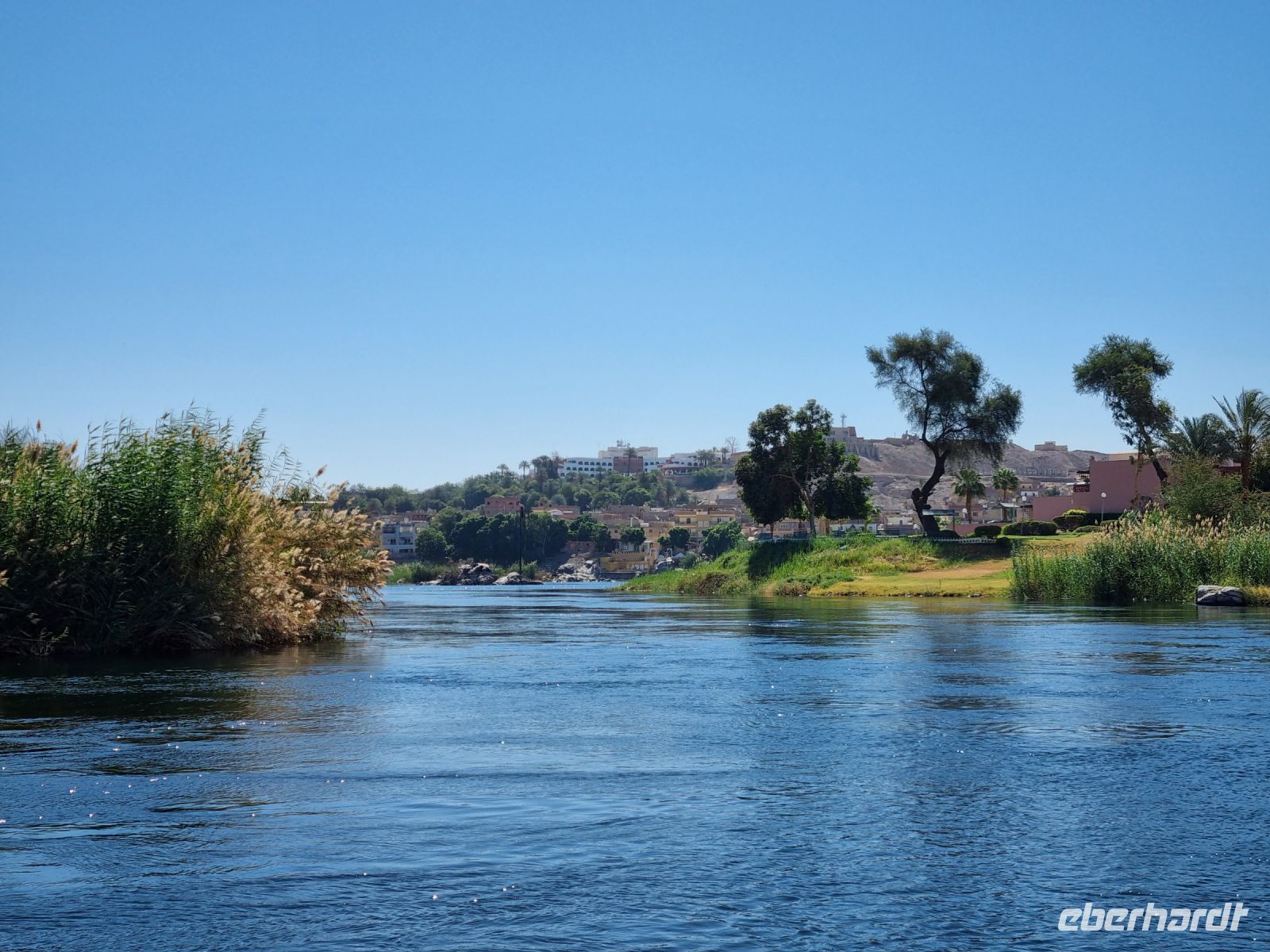 Ausnahmsweise konnten wir heute etwas länger schlafen und später frühstücken, denn unser heutiger Ausflug begann erst um 9 Uhr. Mit einem Motorboot fuhren wir in das Naturschutzgebiet Salouga und Ghazal, in dem wir einige Wasservögel sahen. Unser Ziel war das nubische Dorf mit dem Namen Nagaa Al Mahata. Im Zusammenhang mit dem Bau des Hochdamms mussten viele nubische Familien ihre Heimat verlassen und wurden zum Teil in der Nähe von Assuan neu angesiedelt. Das Dorf machte zunächst einen etwas verschlafenen Eindruck, wir sahen bemalte Häuser und eine Frau kam mit ihren Handarbeiten, die sie an uns verkaufen wollte. Auch einige Kinder begegneten uns, an die wir ein paar Süßigkeiten und Spielzeug verschenkten. Auf der Rückfahrt warfen wir dann einen Blick auf das traditionsreiche Hotel "Old Cataract", in dem unter anderem Agatha Christie logierte und an ihrem Kriminalroman "Tod auf dem Nil" schrieb. Auch ein Nilometer kam in unser "Schussfeld", die Priester des alten Ägypten maßen damit die Höhe der zu erwartenden Nilflut und die Überschwemmung mit Nilschlamm. dies erlaubte die Vorhersage der möglichen Ernten und damit auch die Berechnung der zu entrichtenden Steuern.