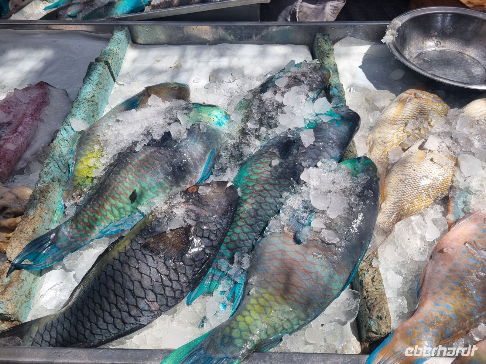 Für diesen Tag gab es offiziell keine Pläne, jeder konnte ihn grundsätzlich so gestalten, wie er mochte. Die meisten Gäste unserer mittlerweile gut zusammen gewachsenen "Reisefamilie" unternahm jedoch eine Stadtrundfahrt durch Hurghada. Wir sahen unter anderem die "Marina", die sehr gepflegte Flaniermeile Hurghadas mit seinem Yachthafen, die neue Moschee und bummelten über den Fisch- und den Gemüsemarkt. Zudem wurde die koptische Kirche angeschaut und wir erinnerten uns hier an das, was uns Essam bereits zuvor über die Minderheit der Kopten erzählte. Die Kopten sind nämlich vor allem daran erkennbar, dass sie eine Kreuz-Tätowierung tragen. Der Nachmittag stand uns erneut zur freien Verfügung.