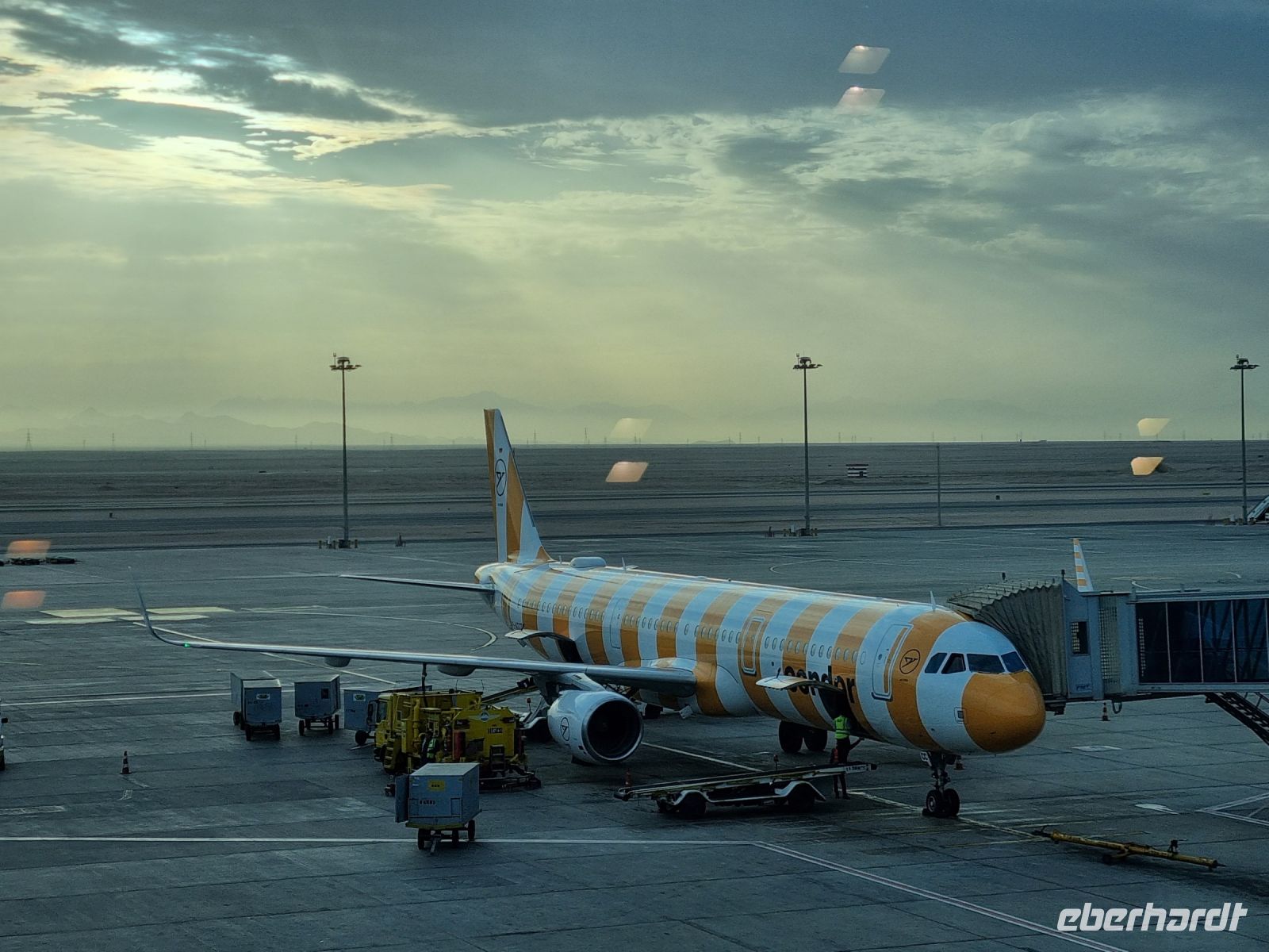 Gegen Mittag traf sich ein Großteil unserer insgesamt 23-köpfigen Reisegruppe am Flughafen Berlin Brandenburg. Was hatten wir nur für ein Glück, denn gestern noch streikte hier das Flughafen-Bodenpersonal und nichts ging. Unter diesen Umständen nahmen wir auch die langen Wartezeiten an den Sicherheitskontrollen geduldig hin. Mit einem Direktflug der Egypt Air erreichten wir am Abend nach einer Flugzeit von ca. 4,5 Stunden Kairo, die Hauptstadt Ägyptens. Sofort nach unserer Ankunft erwartete uns Akram, ein Mitarbeiter der ägyptischen Agentur, der uns bei den Visaformalitäten behilflich war und uns schließlich später auch gemeinsam mit unseren Frankfurter Gästen zu unserem Hotel für die nächsten Tage begleitete.