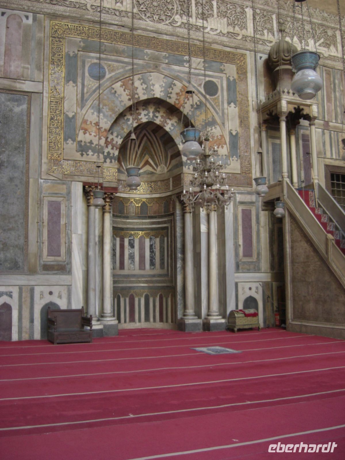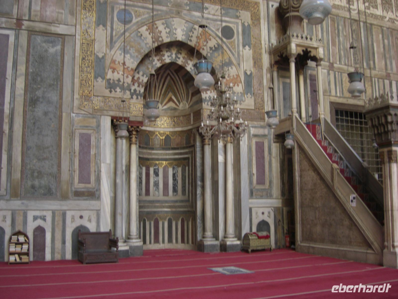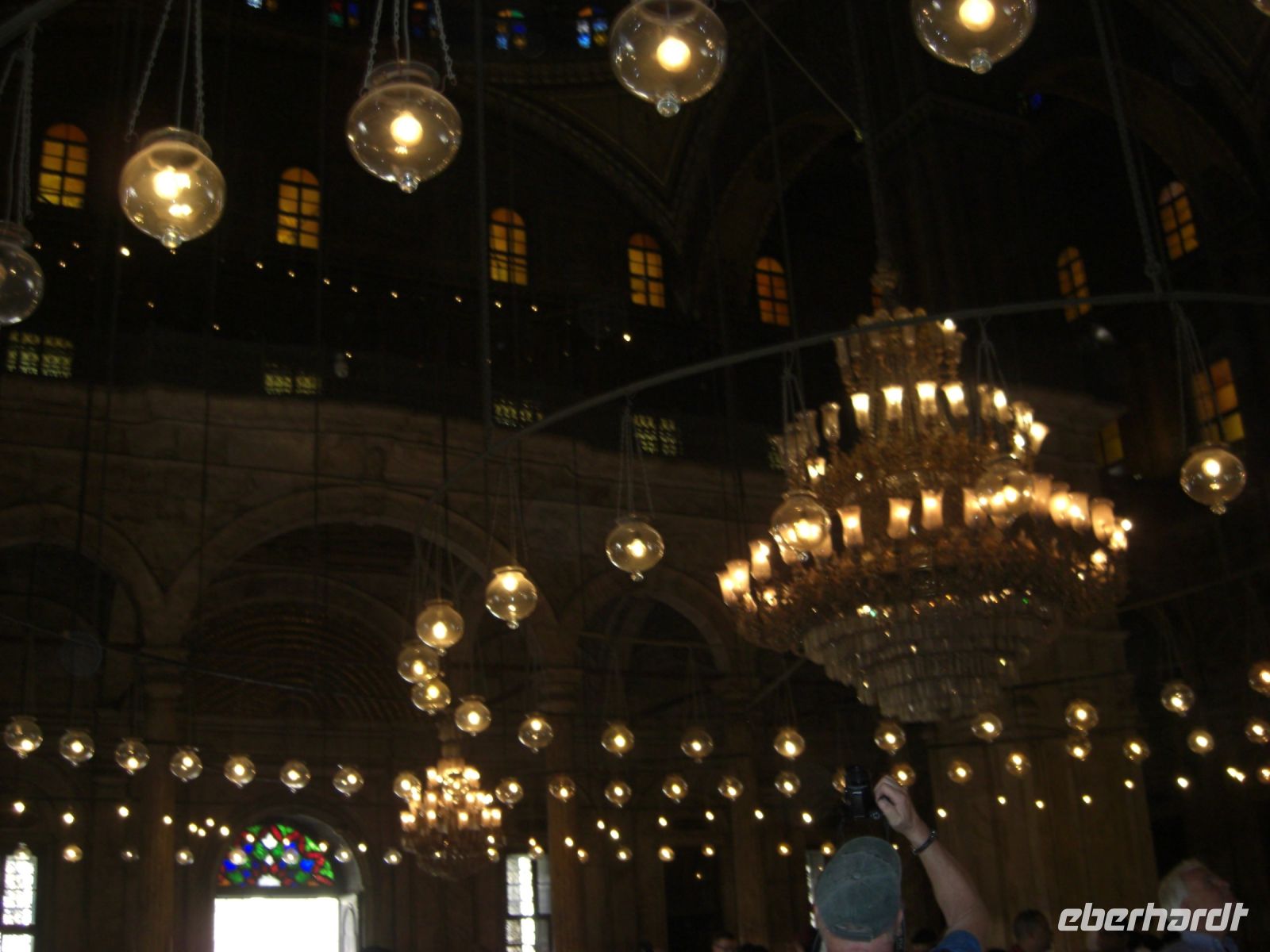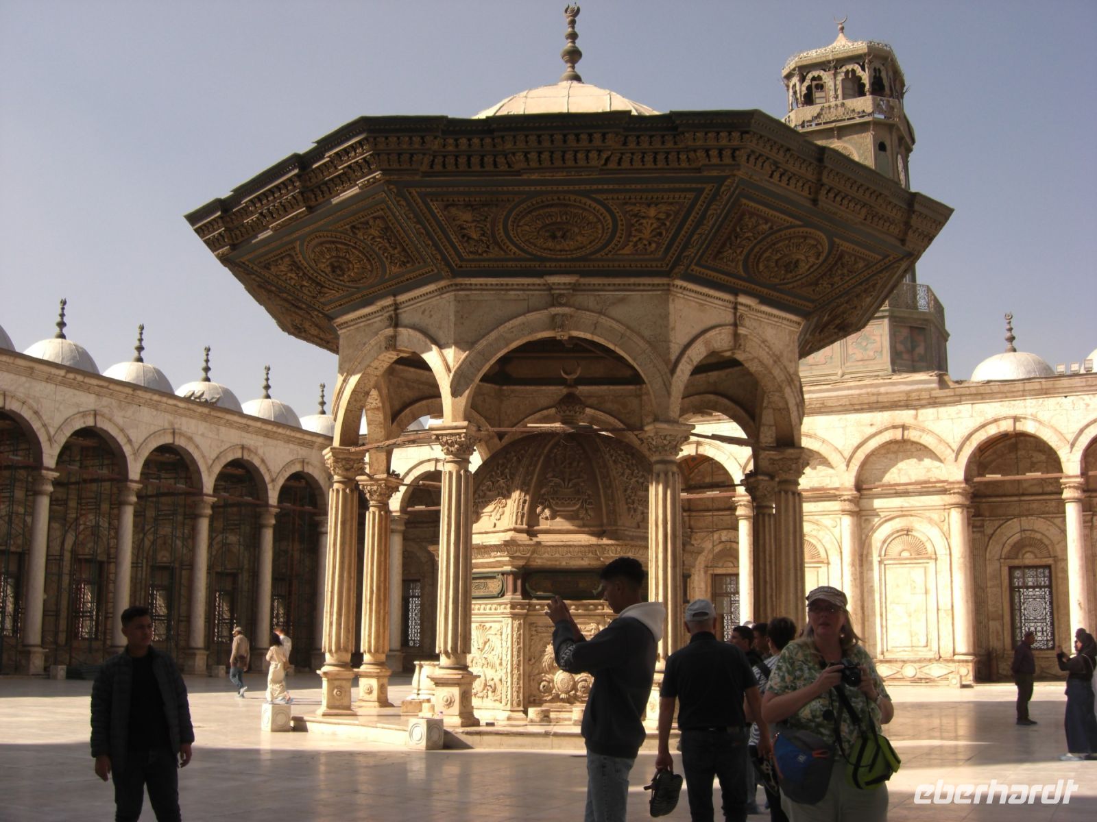 Unsere Fahrt geht nun zur Alabastermoschee auf dem Saladin-Hügel. Sie wurde zwischen 1830 und 1857 von Sultan Muhammad Ali errichtet. Der Innenraum hat 11m hohe Wände aus Alabaster. Die riesige Gebetshalle der Moschee besticht durch ihre Verzierung mit Edelsteinen und Mosaiken. Weiter geht es zur Sultan-Hassan-Moschee, einem bedeutenden Bauwerk der islamischen Kunst. Eindrucksvoll und einzigartig ist, dass hier der Muezzin selbst 5mal am Tag das Gebet ausruft, das Gebet nicht von Band über Lautsprecher kommt. Natürlich gibt es eine Extravorstellung für uns:)
