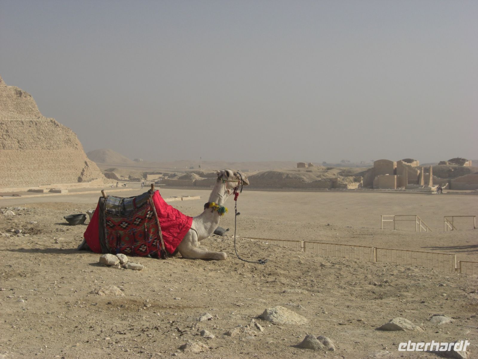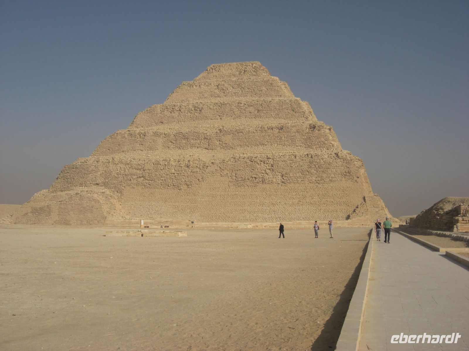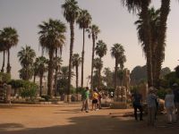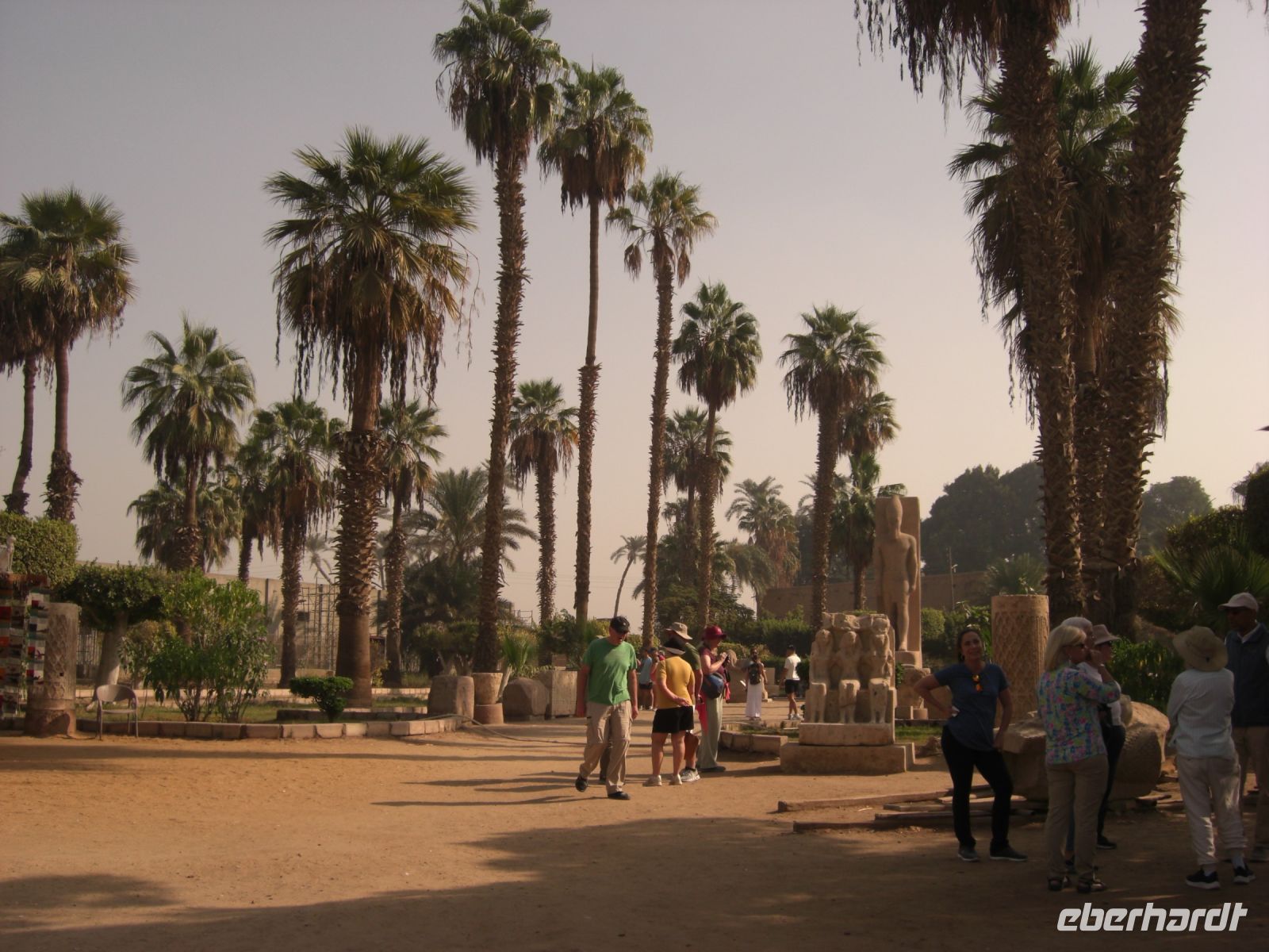 Wir fahren als erstes zur Stufenpyramide Sakkara, der Totenstätte der einstigen Residenzstadt Memphis. Die Stufenpyramide ist die 1. Pyramide der Welt, 2700 v. Christi gebaut. Sie ist die Grabstätte des Königs Djoser aus der 3. Dynastie des alten Reiches. Sie besteht aus 6 übereinander gebauten sogenannten Mastabas, die bis zum Himmel reichen sollen. Auch das dazu gehörige Mastaba Grab von 2223 v. Christi besichtigen wir. Es sind die besterhaltendsten Wandreliefs Ägyptens, die Essam uns erläutert. Schwer nachzuvollziehen, dass sie so wenig geschützt sind. Wir fahren weiter nach Memphis der 1. Hauptstadt Ägyptens, die 300 v. Christi gegründet wurde. Einer der bedeutendsten Propheten des alten Testaments, Jeremia, hat den Untergang von Memphis vorausgesagt, was auch eintrat. Heute ist Memphis bedeutungslos, ein kleines Dorf. Von alten Zeiten zeugen die Sphinx und die 13m lange Figur von Ramses dem II. Ramses hatte 100 Kinder und nun wissen wir auch endlich, was „Ramses machen“ heißt. Tatsächlich, es gibt "die" und "der" Sphinx, je nachdem ob sie ein weibliches oder männliches Gesicht haben.