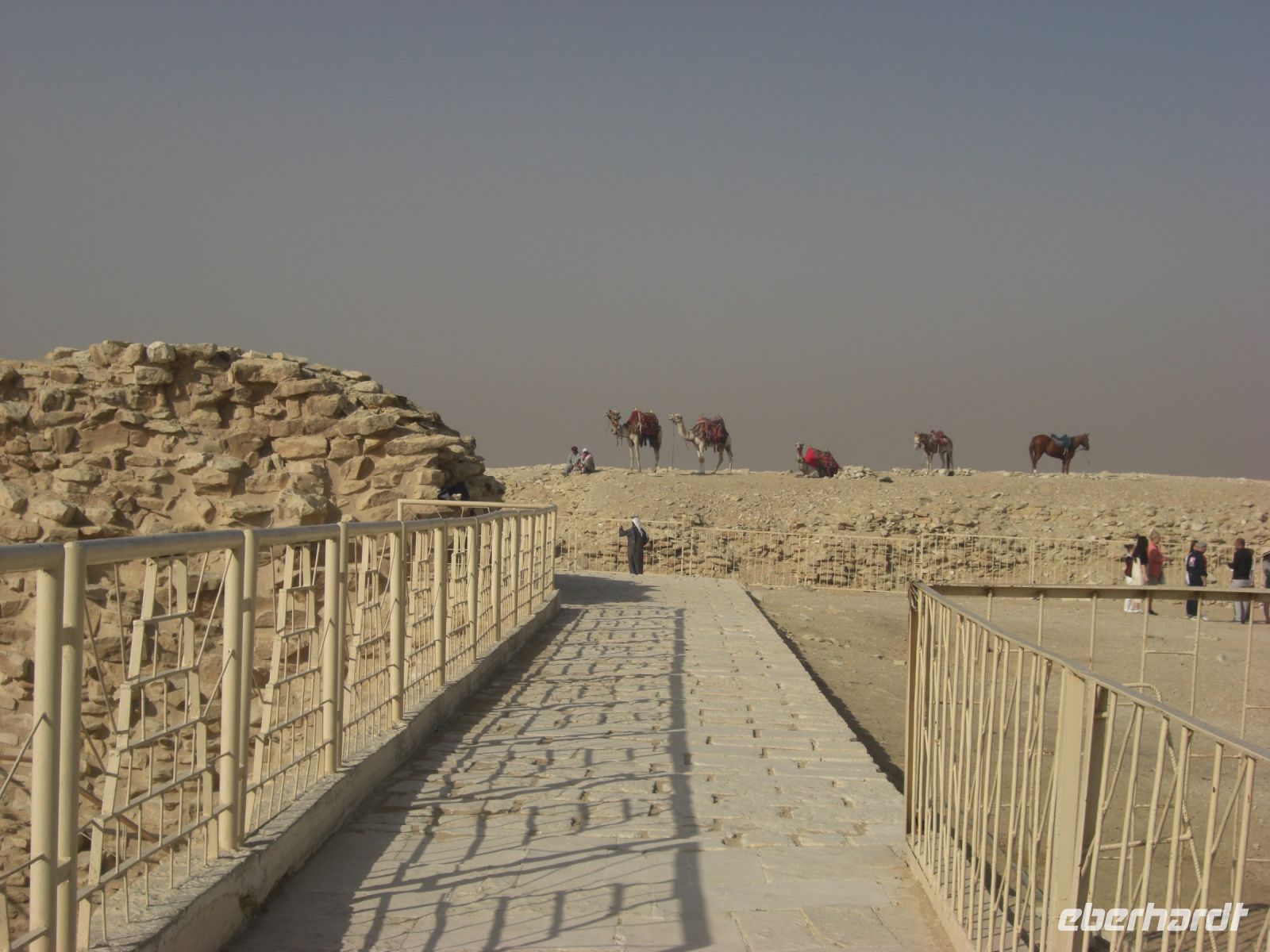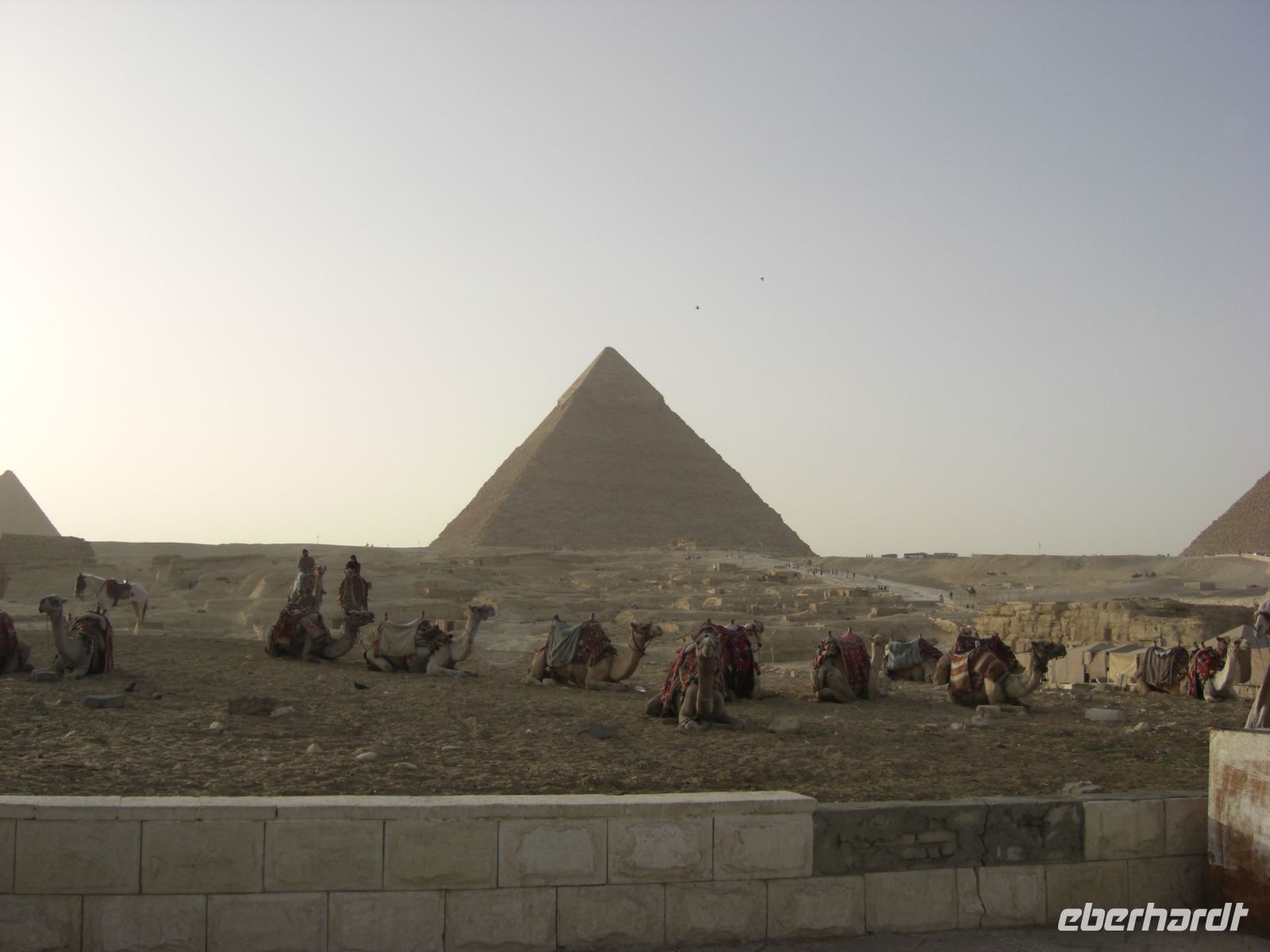 Nach Hause kommen ohne die Pyramiden von Gizeh gesehen zu haben, ist tatsächlich Sünde. Für Viele ist es auch der Höhepunkt der Reise. 4000 Jahre Geschichte zum Anfassen, zum Bestaunen. Mitten zwischen Wohnhäusern, Schwarzbauten wie Essam erzählt, tauchen plötzlich die Umrisse der historischen Bauwerke auf. Cheops, Chefren und Mykerinos liegen vor uns. Immerhin 19 Gäste wollen das Innere der Pyramide sehen. Nein, es ist kein Spaziergang; über Leitern, Schrägen, im Entengang geht es bis zur Grabkammer. welch ein Gefühl, im Innersten der Pyramide zu stehen bei gefühlten 45 Grad.:)