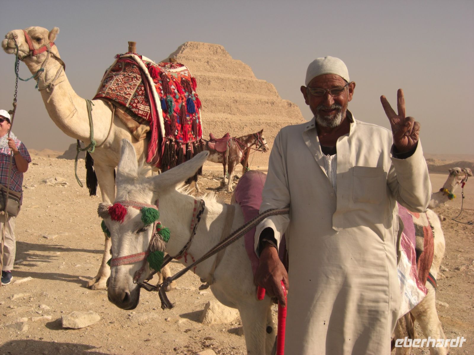 unser Reiseleiter Essam kommt aus Kairo. Er hat Germanistik studiert, kennt Deutschland gut und besitzt jahrelange Erfahrung als Reiseleiter. Mit viel Ruhe und Witz, aber dem nötigen Schritttempo wird er uns in den nächsten Tagen durch Ägypten führen.
