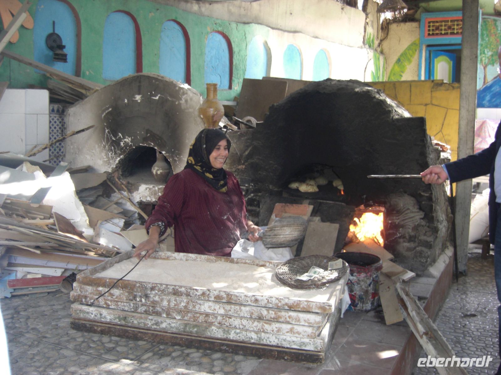 In einem urigen ländlichen Restaurant hat Essam für uns Mittagessen bestellt. Unter freiem Himmel lassen wir uns frisches Fladenbrot, Falafel, Lammfleisch, gegrilltes Gemüse und andere Köstlichkeiten schmecken.