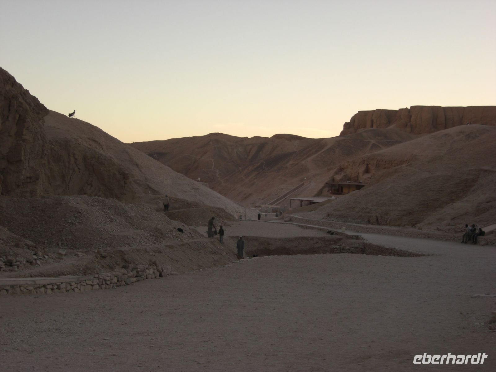 Wir erreichen das Tal noch im Dunkeln, menschenleer und schreiten bei Sonnenaufgang als 1.Gruppe durch das Tal. Die Sonne läßt einen Teil der Berge leuchten und wir fühlen uns wirklich ganz zurück versetzt in die Zeit der Pharaonen und Götter.