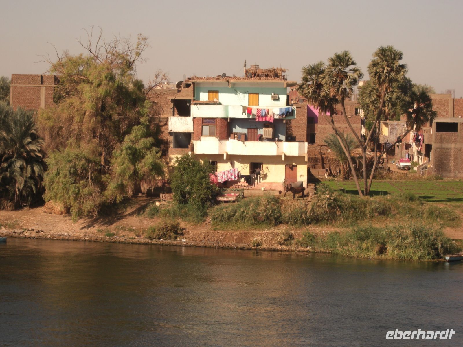 Unsere Fahrt geht auf die Westseite des Nils, Kairo hingegen liegt auf der Ostseite. Das Leben der armen Bauern zieht sich an den Kanälen entlang, ärmliche Häuser, Tiere, aber auch viel Müll prägen hier das Stadtbild.