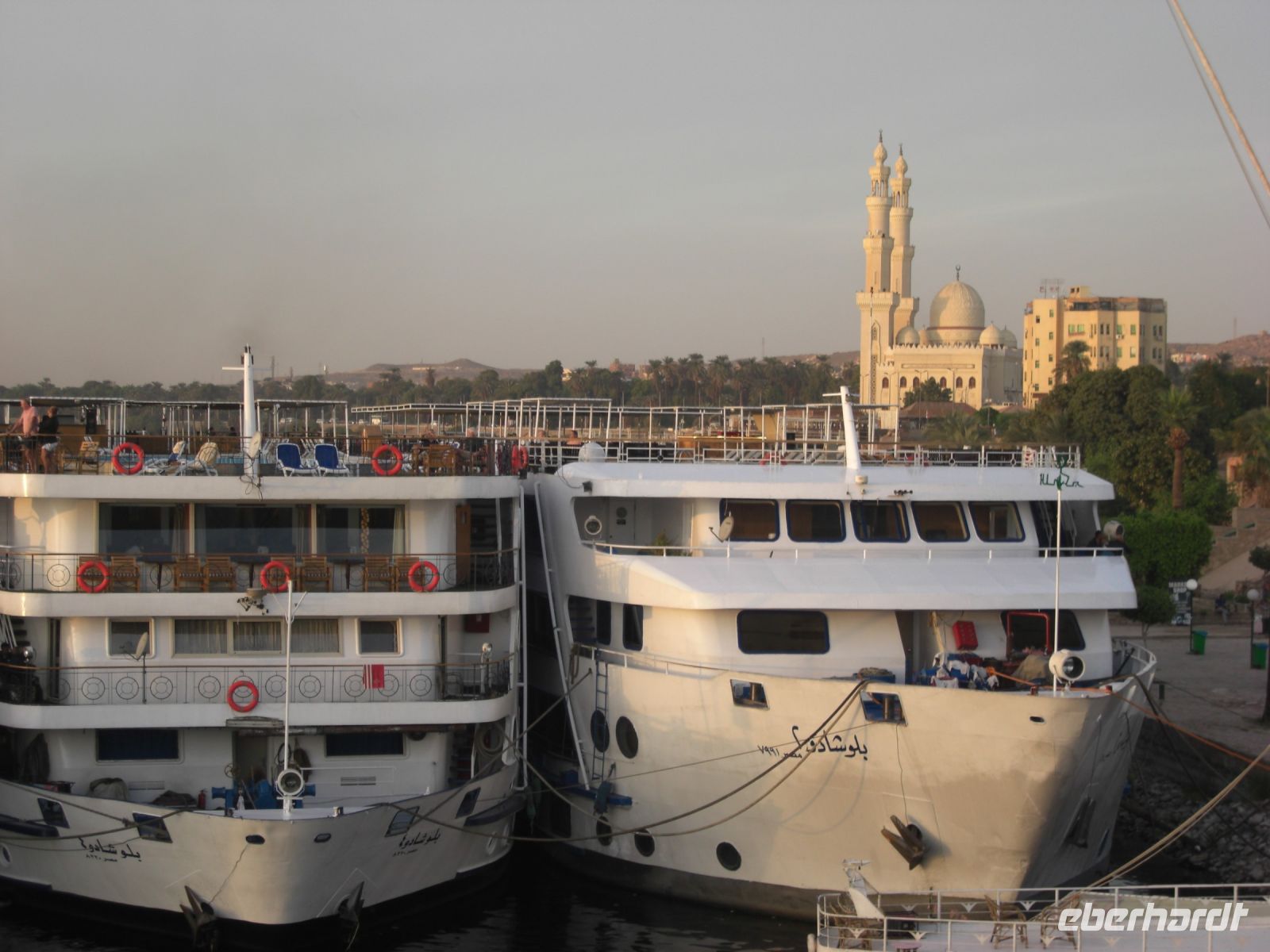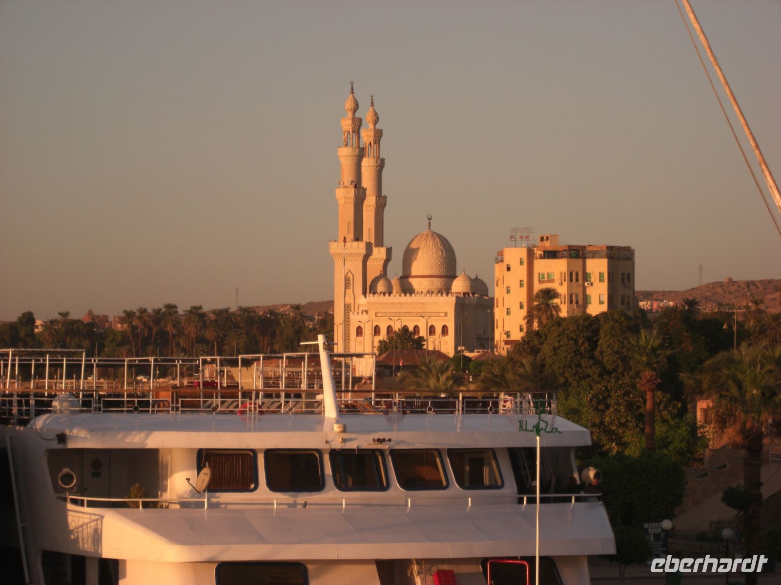 Spät am Abend passieren wir die Schleuse von Esna und am Abend gibt es einen Willkommenscocktail auf dem Schiff, schöne Geste, leider mit hohem Lärmpegel.