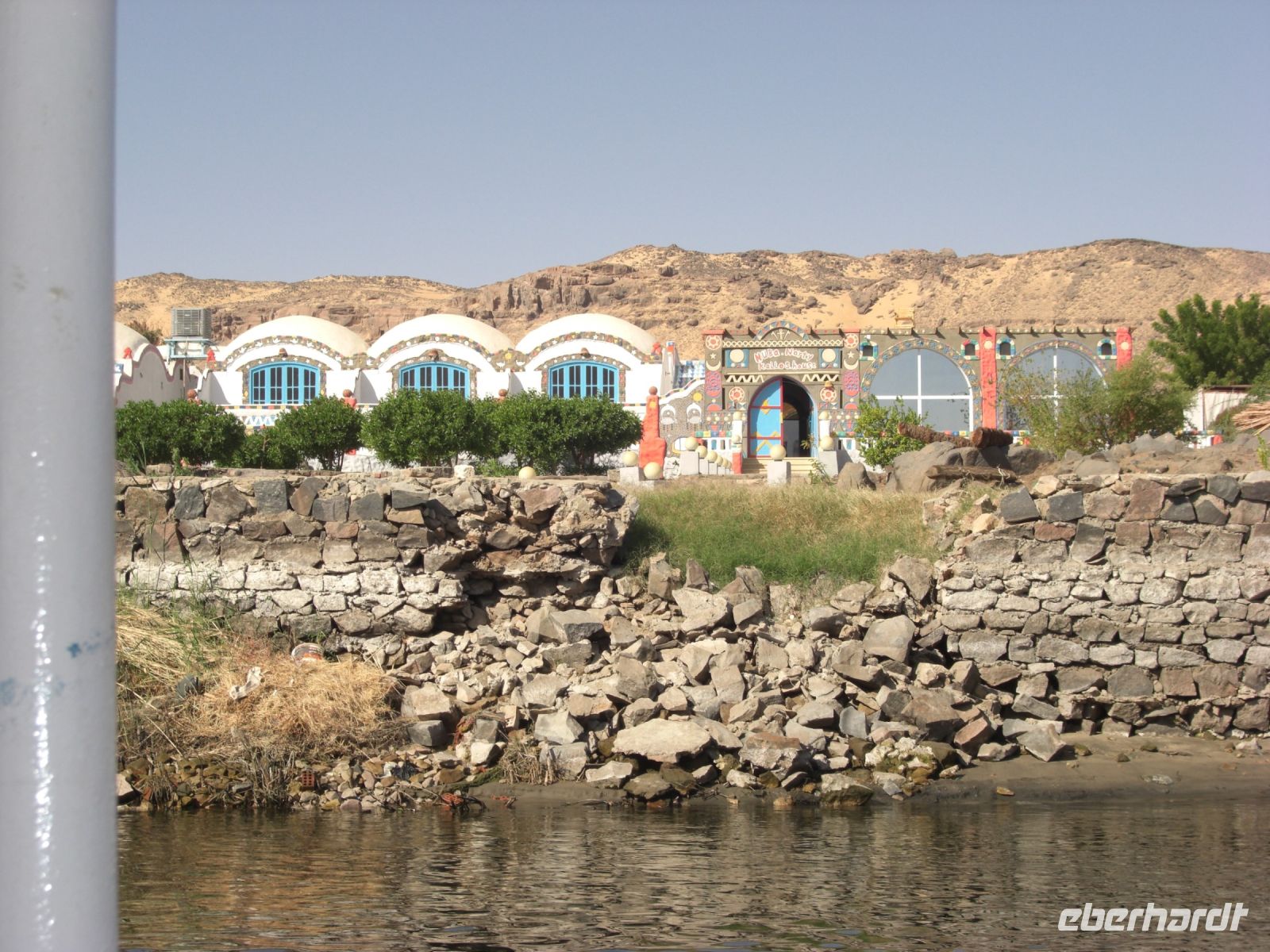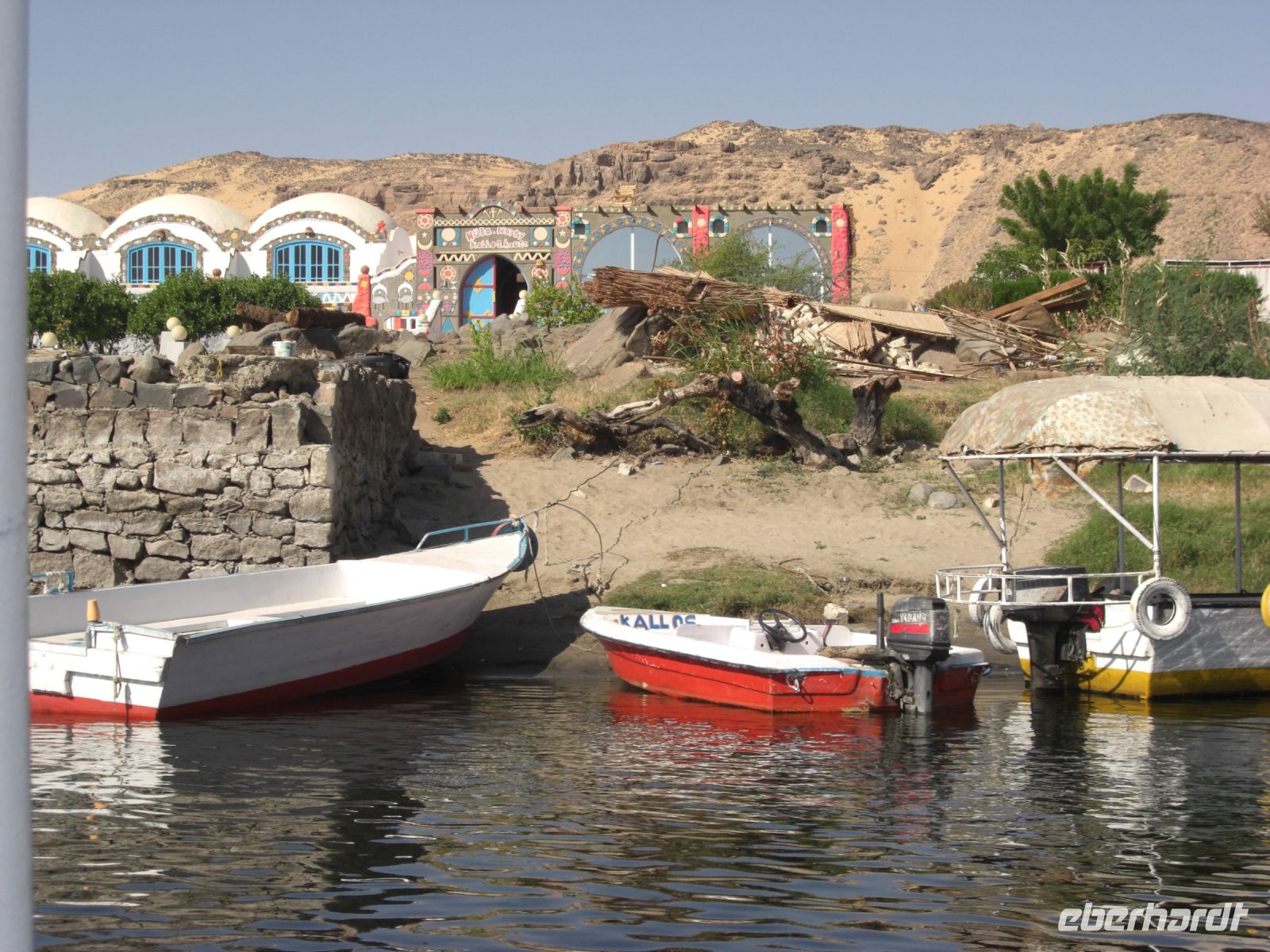 Mit dem Boot fahren wir in ein nubisches Dorf, welches sehr authentisch ist. Einige Häuser sind pastellfarbig und stehen im Kontrast zum sonst ärmlichen Dorf mit ein paar Tieren und viel Müll.