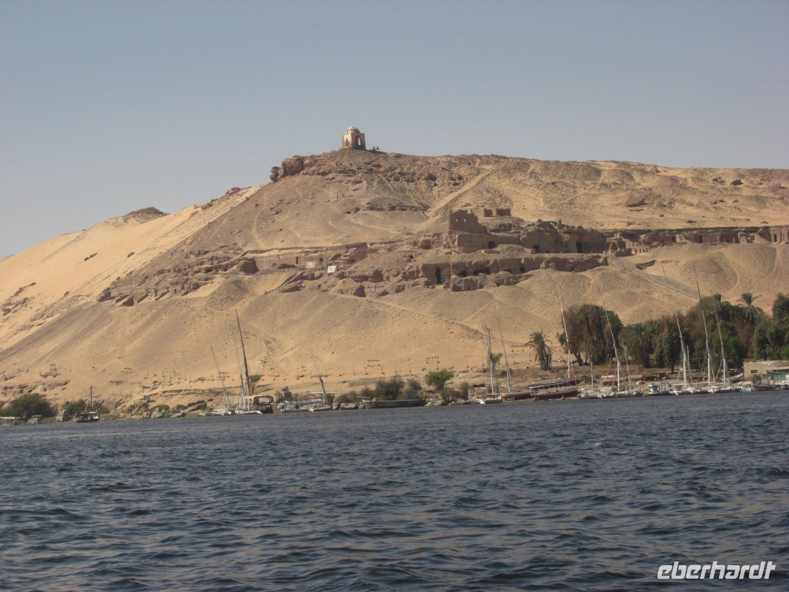 Weiter fahren wir zum Hochstaudamm. Der Damm wurde 1960 gebaut, von Deutschland geplant und von Russland wurde der Bau ausgeführt. Er ist 1930m lang und wird von 12 Turbinen (von Siemens) betrieben. Wesentliche Ziele, die mit dem Bau erreicht wurden, sind Hochwasserschutz und Gewinnung von Elektrizität, immerhin 70% der gesamten Energie Ägyptens werden hier erzeugt.
