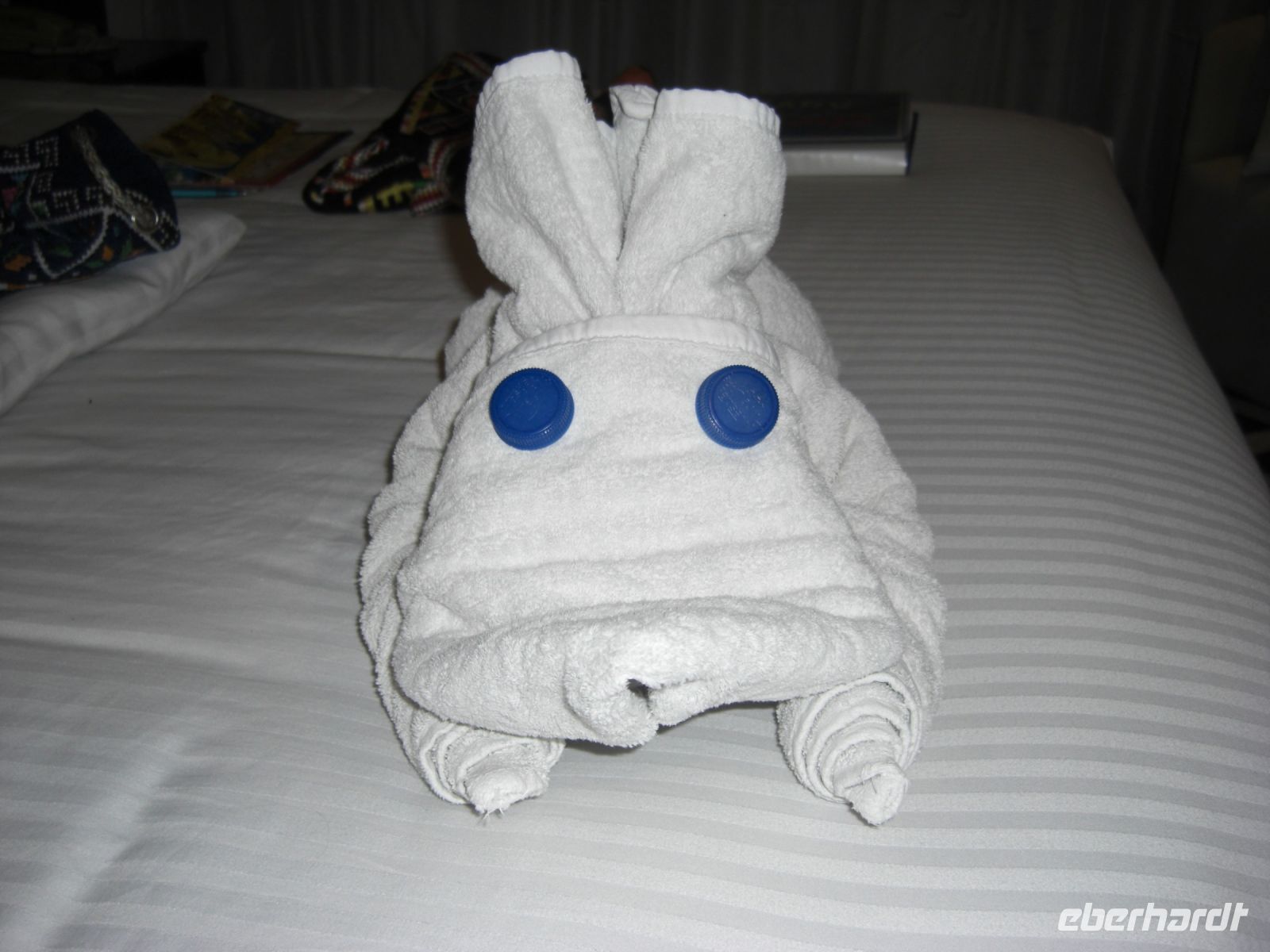 Da kommen schon die ersten Handtücher der fliegenden Händler geflogen, 5m hoch, treffsicher, sie haben ja den ganzen Tag Zeit zum Üben. Sie schreien und feilschen, ein Spaß ist das schon. Weniger lustig scheint uns die Tatsache dass sie mit ihren Booten in die Schleuse fahren, was lebensmüde ist. Keiner vertreibt sie, es ist der Kampf ums Überleben, um die Existenz, den alle führen.