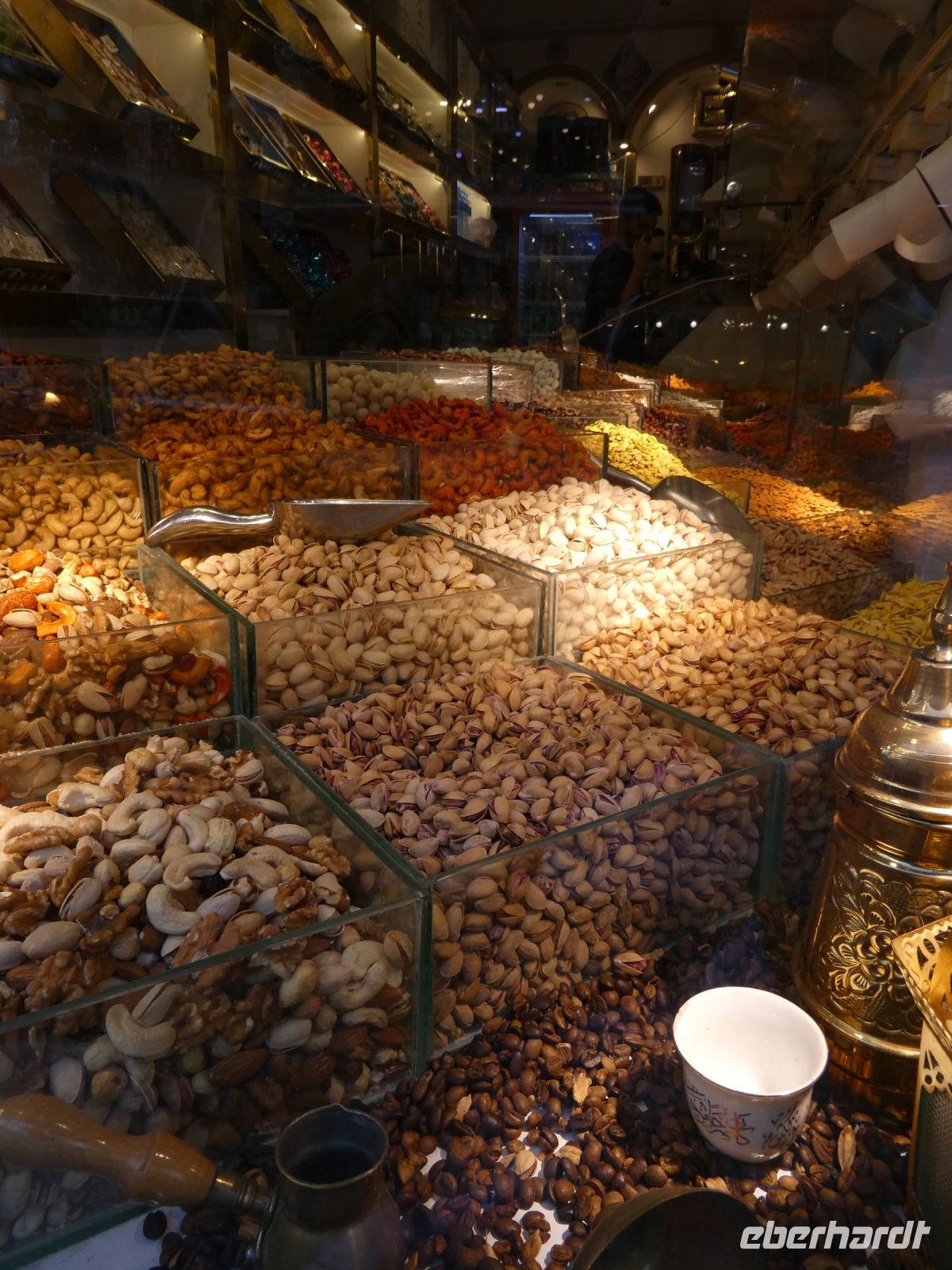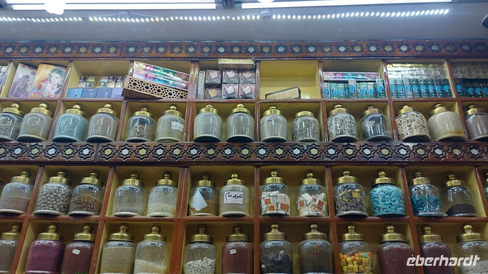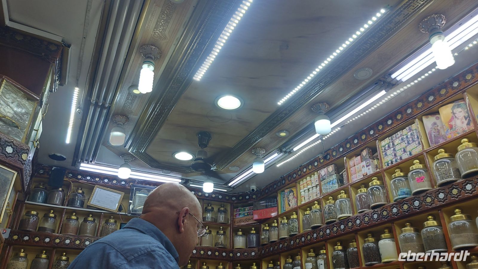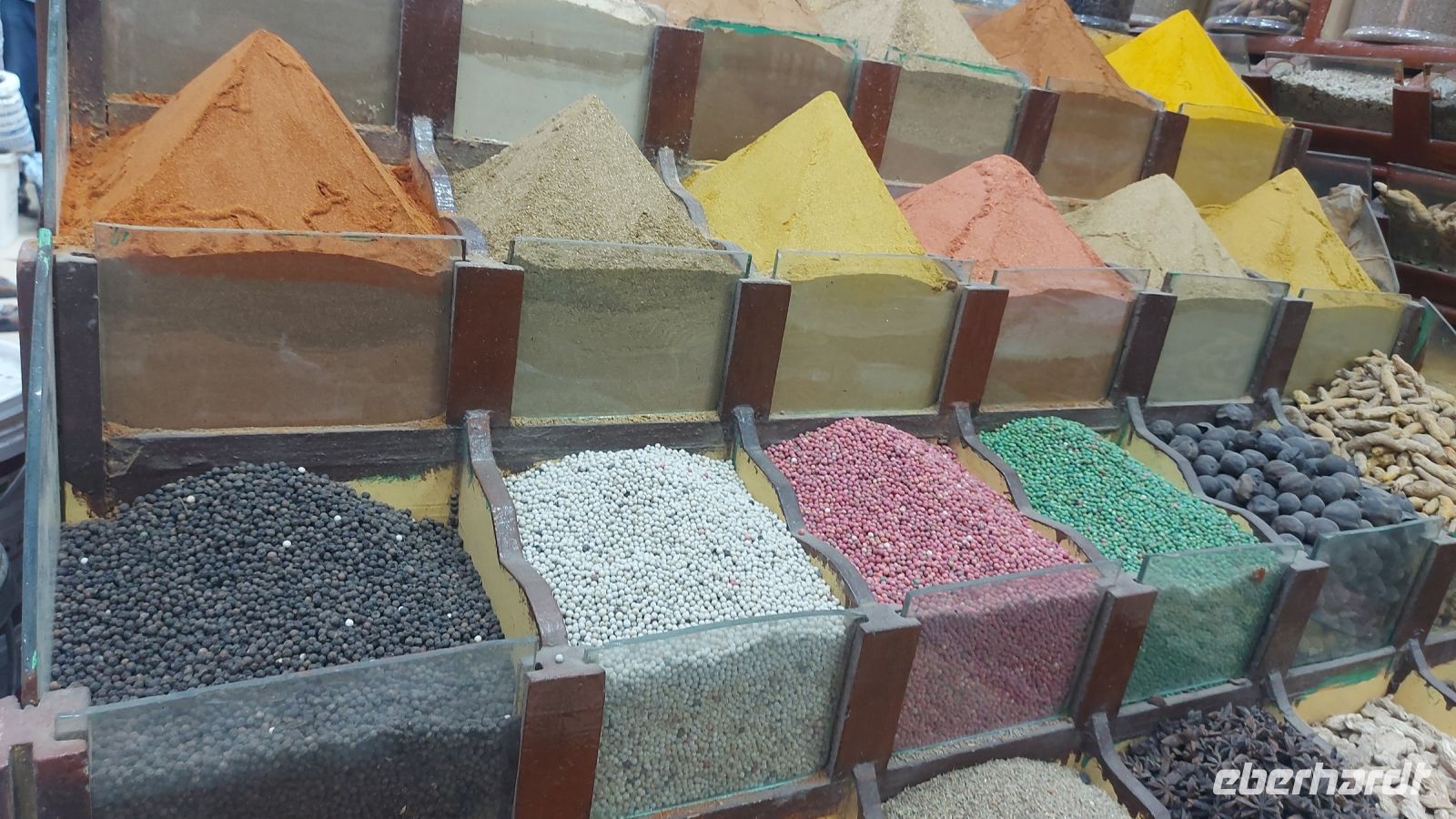 Heute hat sich das Wetter leicht geändert. Nach den sehr warmen Tagen steht Sandsturm ins Haus, weshalb wir unsere eigentlich geplante Felukkenfahrt auf dem Wasser für heute streichen und auf Samstag verschieben. Kein Problem, unser örtlicher Reiseleiter Essam hat sofort ein Ersatzprogramm parat. Wieder auf dem Schiff angekommen genießen wir zunächst das Mittagessen und begeben uns dann auf den Markt in Assuan. Wieder nehmen wir die Pferdekutschen und tauchen ein in das authentische Leben der Stadt. Sehr bekannt sind die Gewürze von Assuan. Wir besuchen ein Geschäft und lassen uns die vielen Farben und Gerüche präsentieren. Auch sehr gut riechende Teemischungen gibt es in dem historischen Geschäft. Wir decken uns mit Gewürzmischungen, Tee, Safran aus dem Iran, Vanillestangen und Datteln ein und fahren mit den Kutschen zurück zum Schiff. Vor dem Abendessen können wir uns noch ein bißchen entspannen und genießen dann den Abend an Bord.