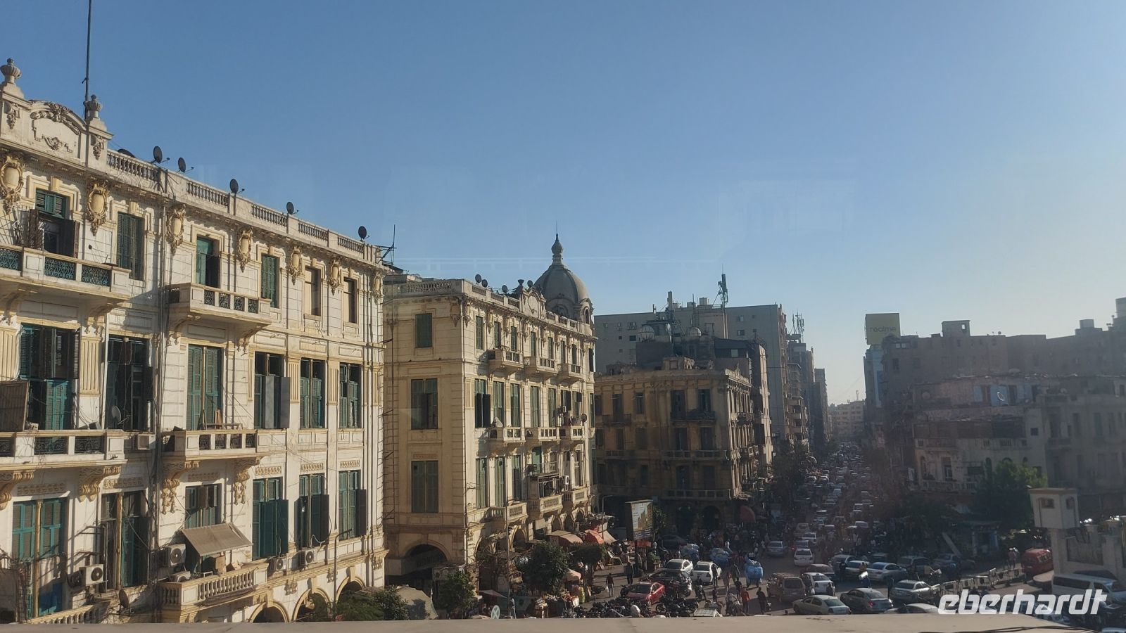 Aus verschiedenen Flughäfen sind wir am Abend in Kario gelandet. Nachdem die Einreiseformalitäten erledigt und die Koffer abgeholt wurden, bringt uns unser Chauffeur zu unserem 5-Sterne-Hotel in Gizeh, dem Vorort in Kairo, in dem die Pyramiden stehen. Auf der Fahrt erhalten wir erste Informationen über Kairo. Wir sind in der Mitte des Fastenmonats Ramadan nach Kairo gekommen. Die Stadt wird jetzt am Abend lebendig, denn für die Moslems ist Fastenbrechen angesagt. Im Hotel angekommen steht Ausruhen auf dem Programm, denn morgen wollen wir Kairo erkunden. Da heißt es früh aufstehen, damit wir unter den Ersten im Ägyptischen Museum sind.