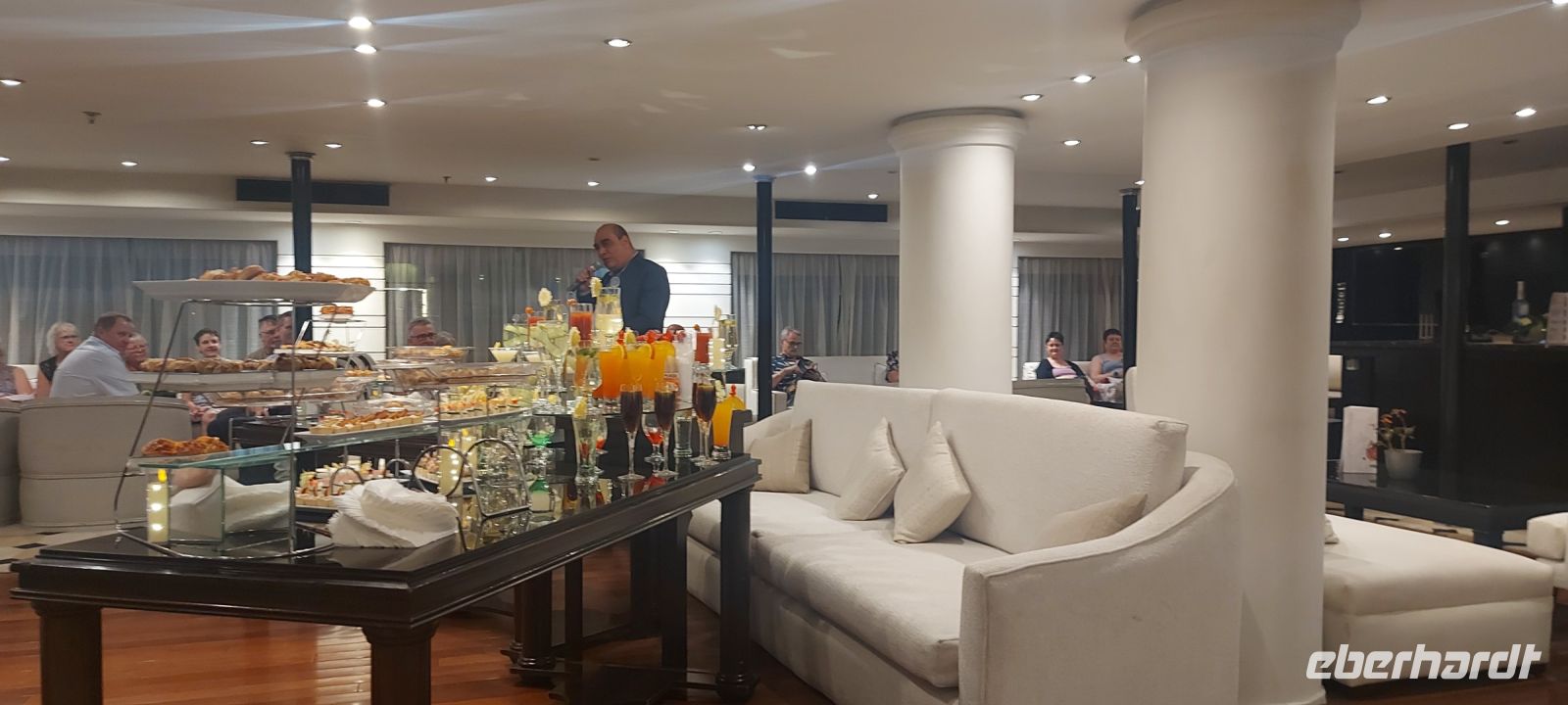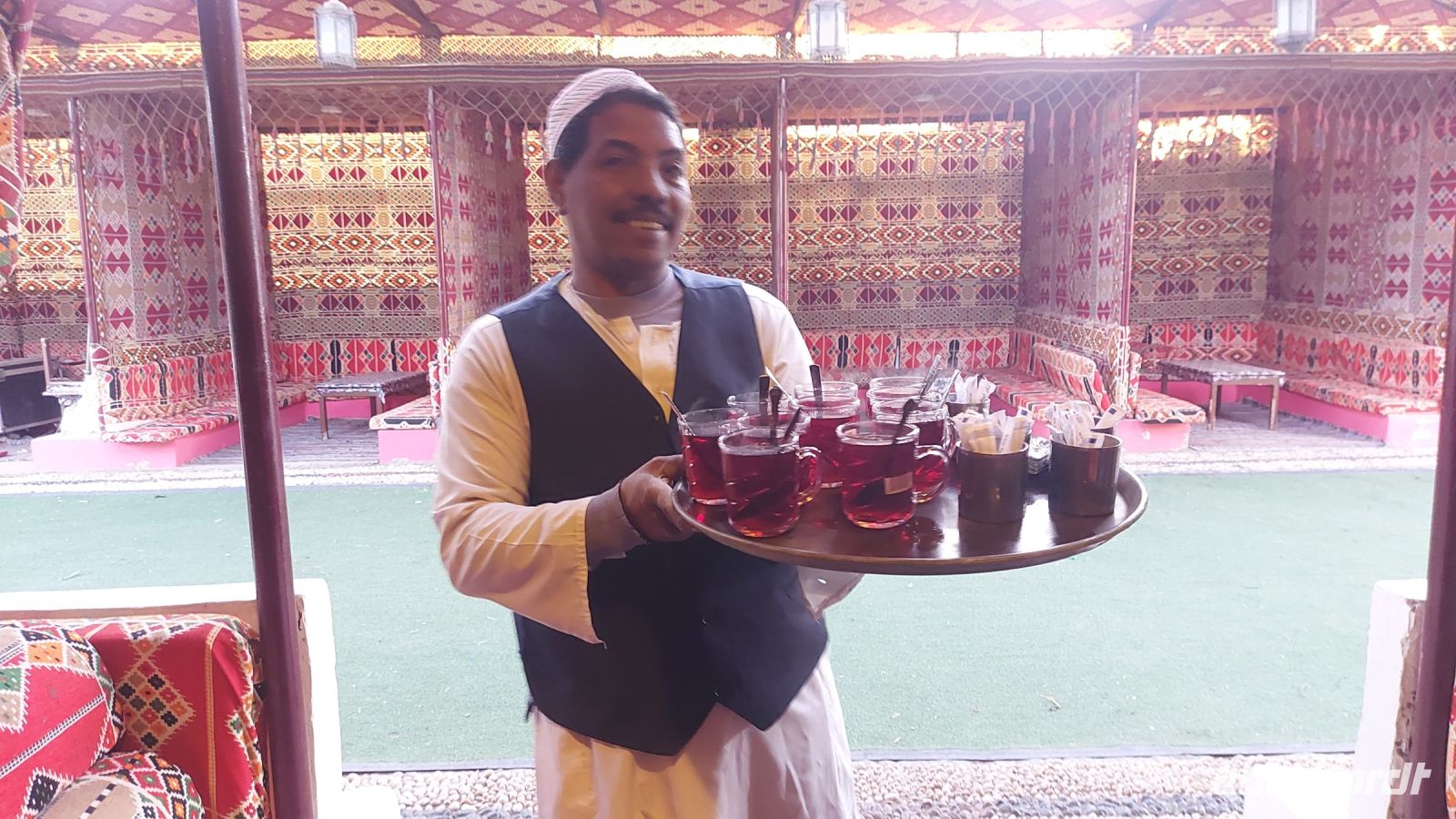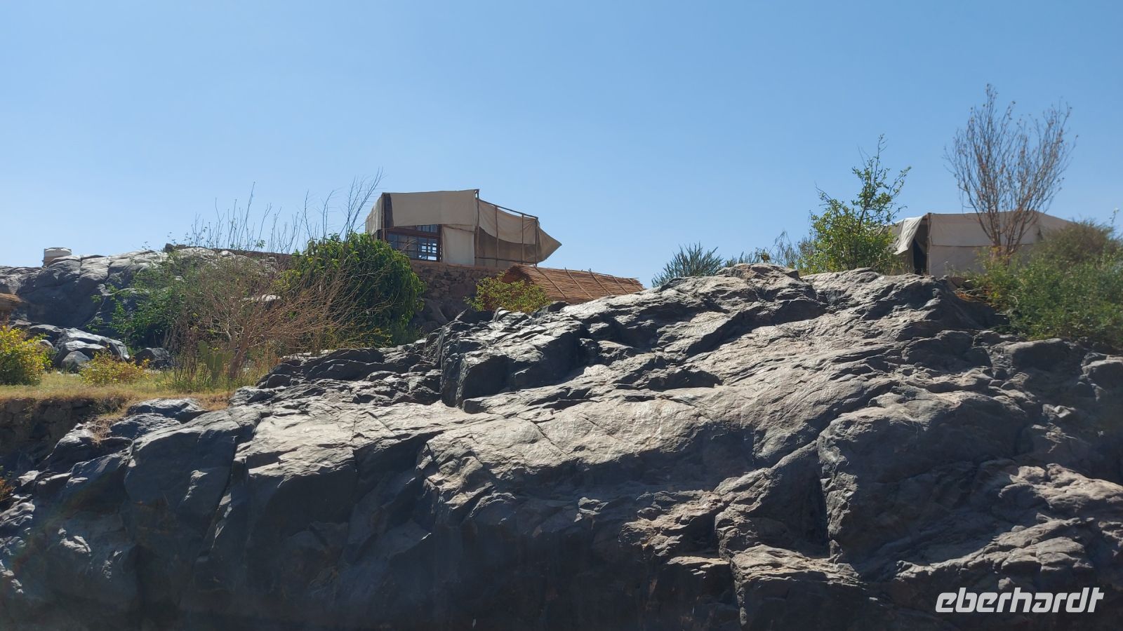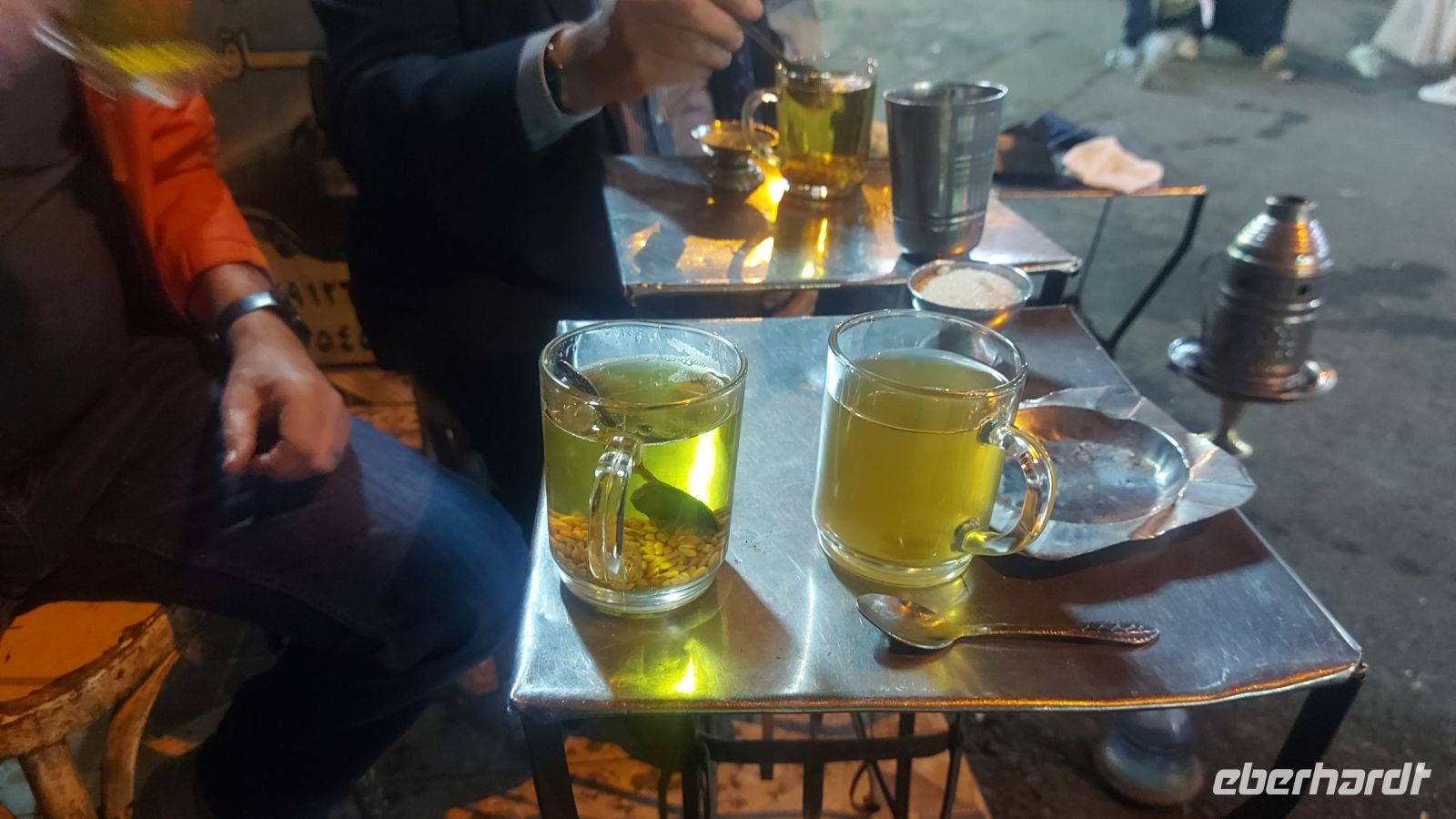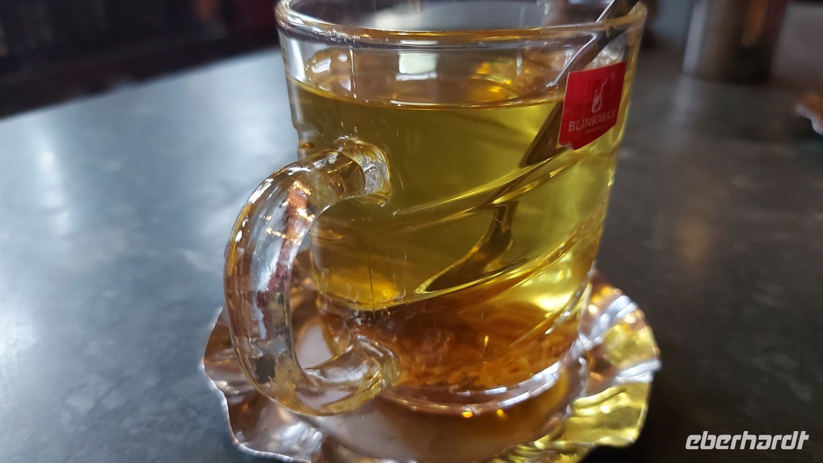 Nachmittags halten wir wieder in Kom Ombo, da neu angekommene Gäste heute die Tempelanlage besuchen. Wir verabreden uns mit unserem Reiseleiter, um in ein Teezelt nahe der Promenade zu gehen. Da Ramadan ist, gehört die schöne Zeltanlage im ägyptischen Stil nur uns. Wir wählen die Teesorten aus Bockshornklee, Malve oder Anis genießen die Ruhe im Teezelt. Essam erzählt uns typische Geschichten aus Ägypten über die Gesellschaft, die uns zum Schmunzeln bringen. Vom Zelt aus haben wir nochmals einen Blick auf die Tempelanlage Kom Ombo. Anschließend gehen wir wieder an Bord unseres Schiffes. Zum gemeinsamen Abendessen treffen wir uns wieder.