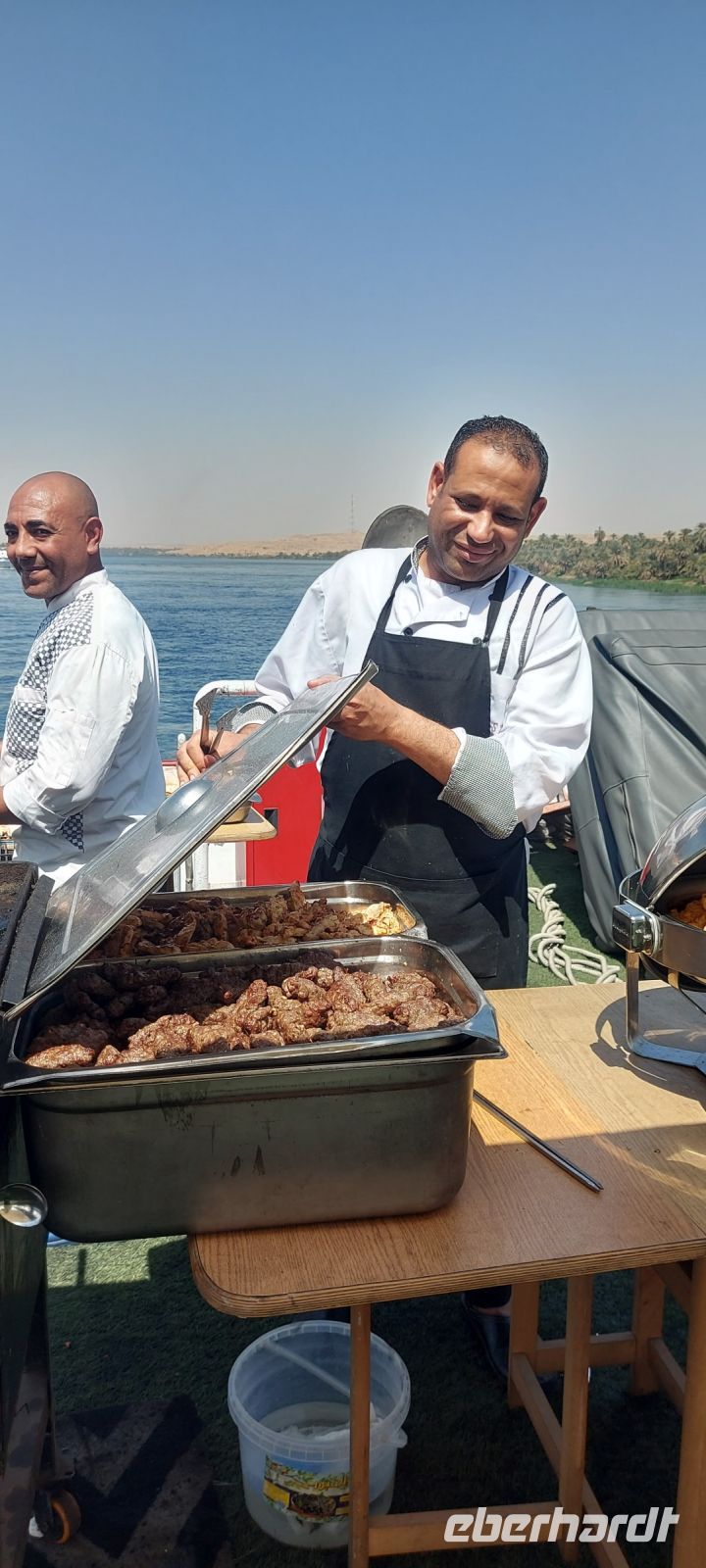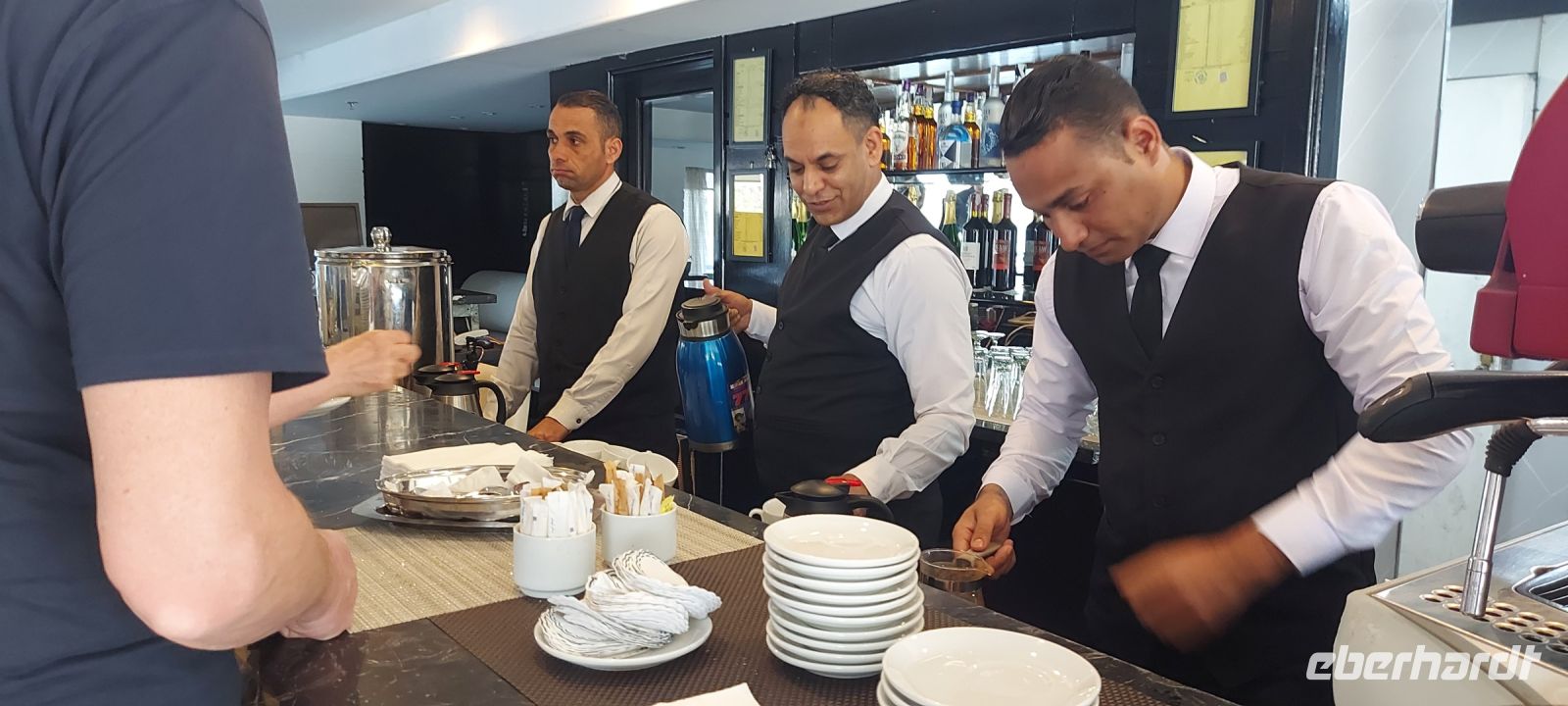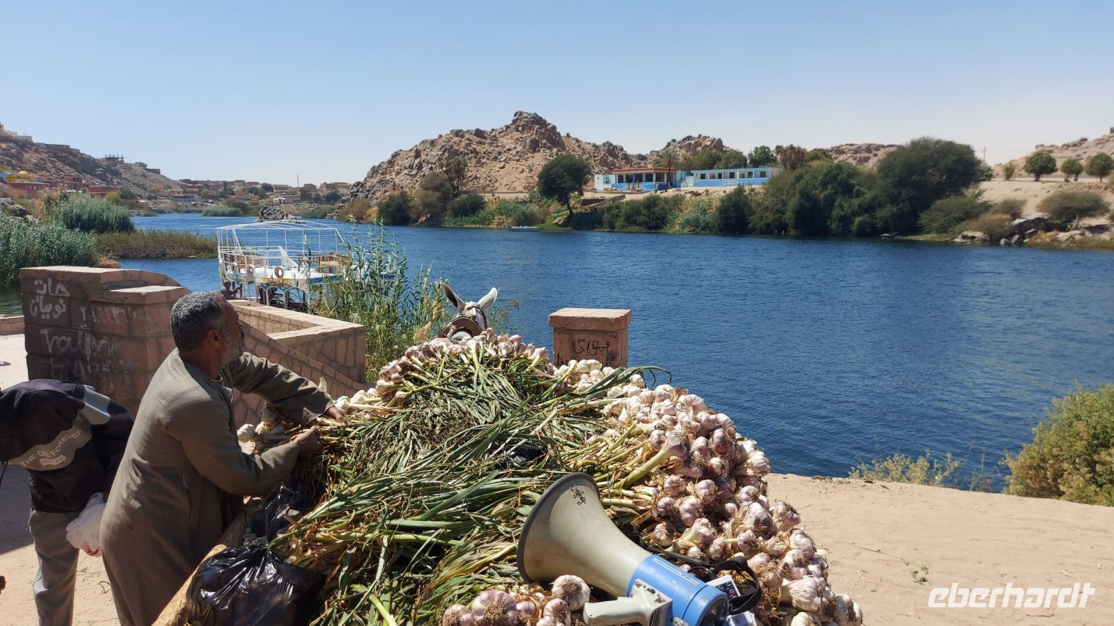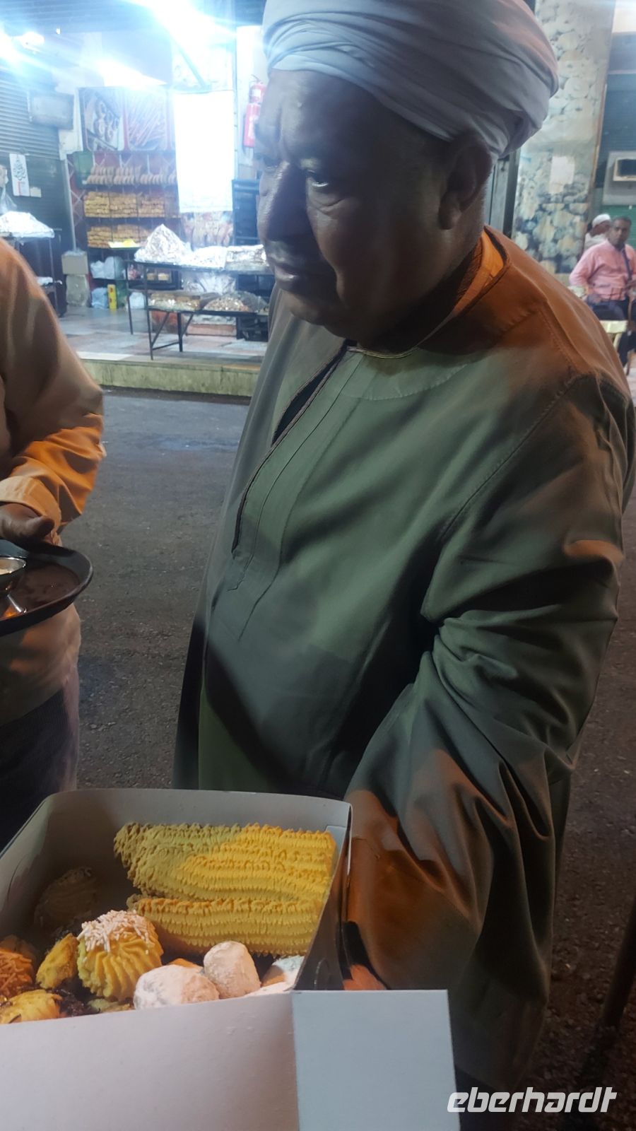 Während unseres gesamten Aufenthalts erleben wir die Ramadanzeit und das Fastenbrechen in der muslimischen Gemeinschaft. Sobald der Moment zum Fastenbrechen um ca. 18 Uhr (je nach Ort) vom Imam ausgerufen wird, teilen die Ägypter ihre Speisen und essen - wenn möglich - gemeinsam. Wir freuen uns über Essams Vorschlag, am Abend gemeinsam in das Zentrum von Luxor zu gehen, um das authentische Leben aus der Nähe zu sehen. Wir besuchen einen schönen Basar und haben die Möglichkeit, einen Tee in einem Café mit Essam zu trinken, der seine Shisha genießt. Heute heißt es Kofferpacken, denn morgen fahren wir mit dem Bus nach Hurghada. Wir werden das hervorragende Essen und die freundliche und humorvolle Crew des Schiffes sicher vermissen.