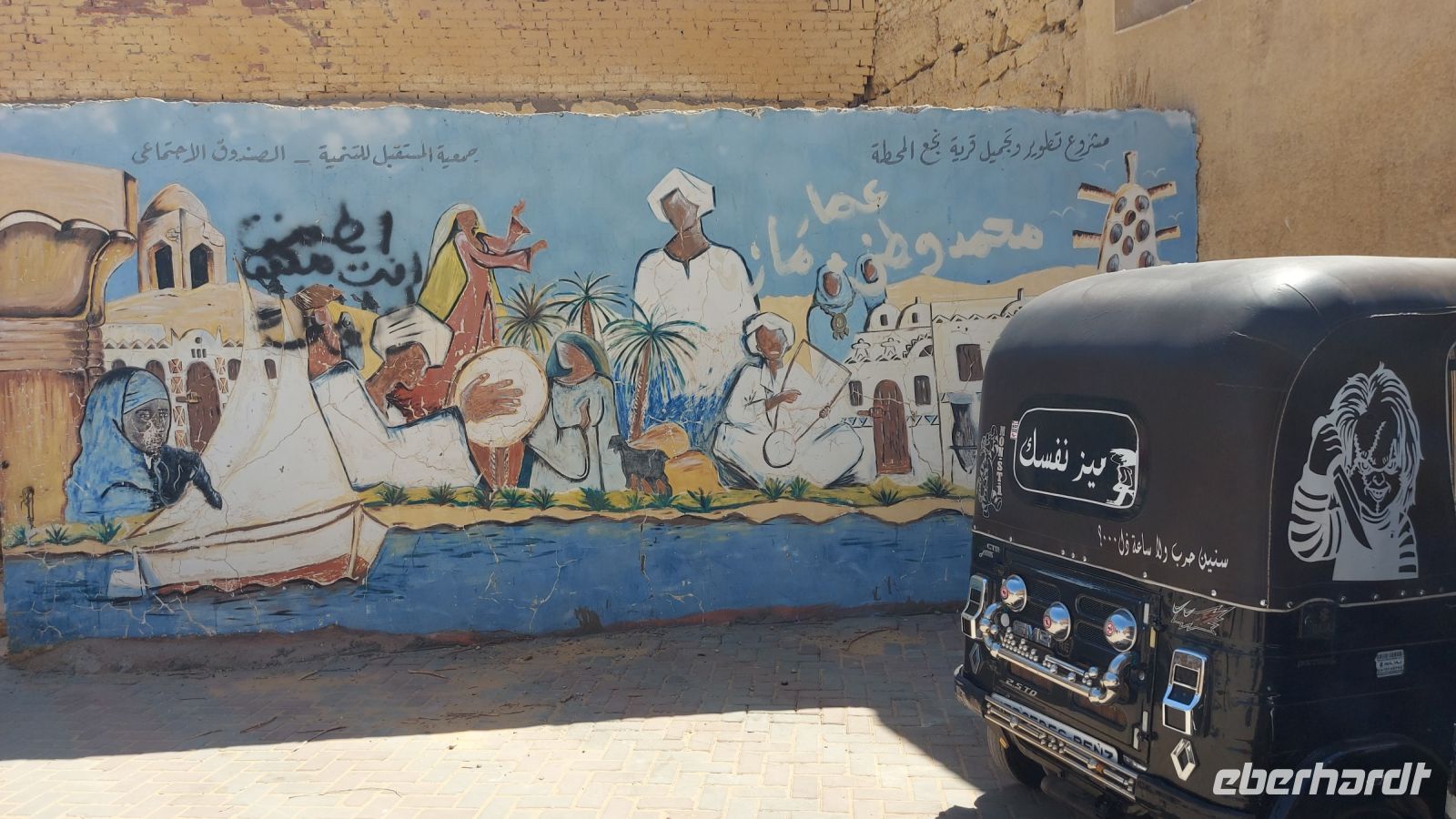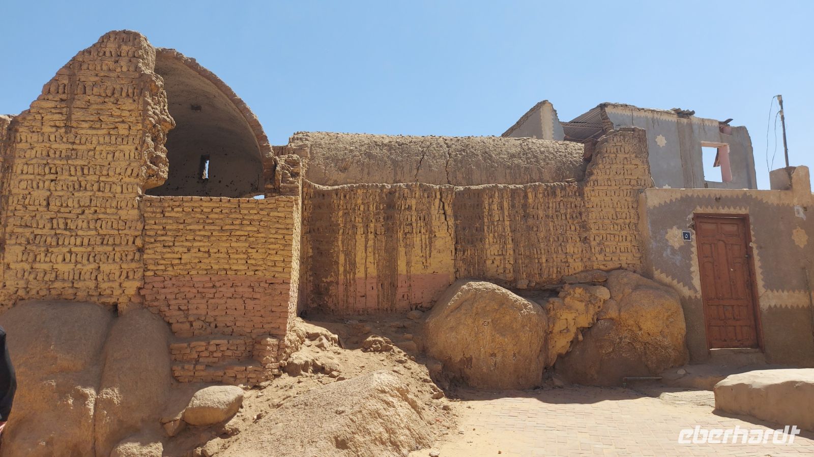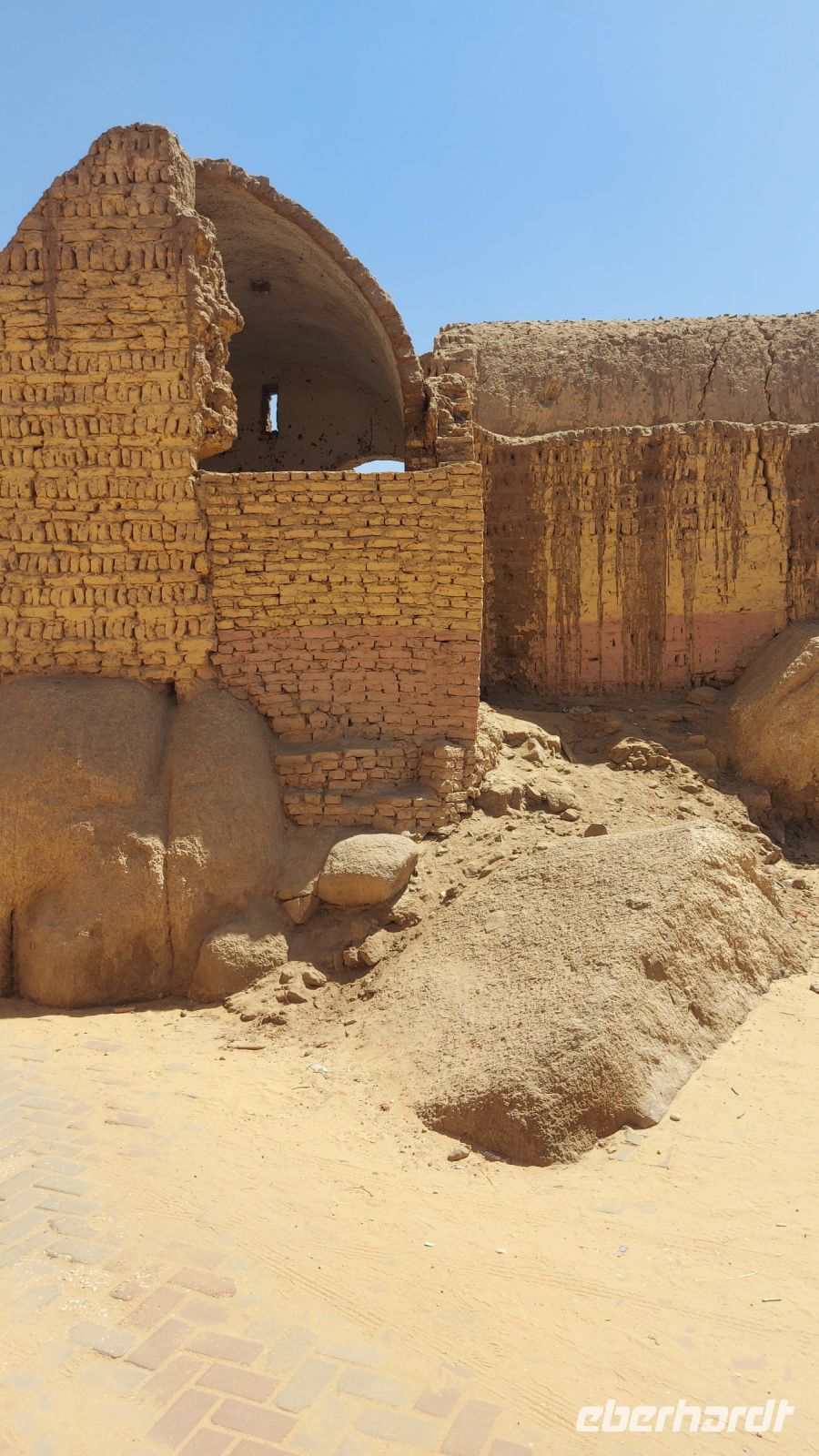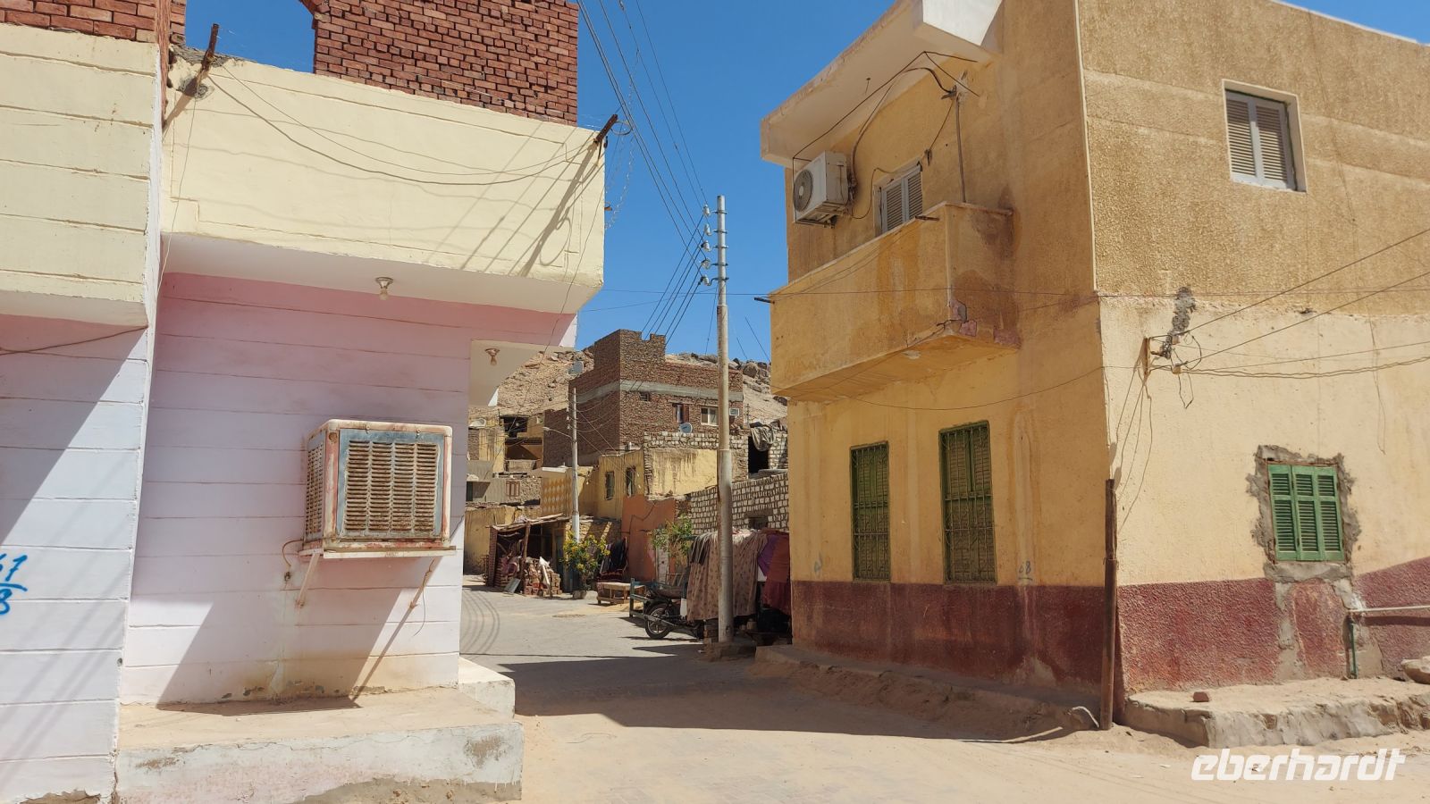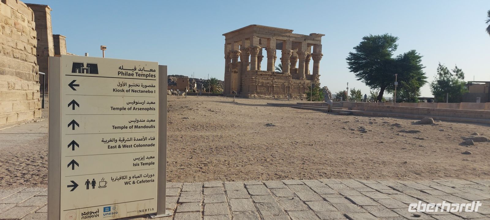 Das Wetter ist heute herrlich und der Himmel strahlend blau. Wir starten an der Promenade von Assuan mit einer Felukke, ein kleines Motorboot, das nur für unsere Gruppe reserviert ist. Der Ausblick auf das Ufer des Nils ist herrlich. Begrüßt werden wir mit einem Willkommenslied der Boots-Belegschaft. Unser erster Stopp gilt dem Botanischen Garten auf der Lord-Kitchener-Insel. Der Engländer Lord Kitchener hat den Botanischen Garten einst mit exotischen Pflanzen und Bäumen aus Asien und Afrika angelegt. Die Schilder auf den Bäumen zeugen von der ursprünglichen Herkunft. Nach dem kurzen Spaziergang über die Insel steigen wir wieder auf unser Motorboot. Die Fahrt führt durch ein Naturschutzgebiet mit Schilf und Basaltfelsen. Wir sitzen unten oder oben auf dem Sonnendach und genießen die herrliche Aussicht, bis wir in einem nubischen Dorf angelangt sind. Wir sind die einzigen Besucher dort und machen einen Spaziergang durch die Gassen aus Sand bis zur Moschee des Dorfes. Natürlich sind einige Einwohner - und vor allem Kinder - interessiert an uns und kommen zum Hauptplatz vor der Moschee, wo sie ihr Handwerk anbieten. Dann steigen wir wieder auf unser Boot. Wir genießen die Rückfahrt in der Sonne, mit leichtem Wind. Auf der Fahrt kommen wir an dem Hotel vorbei, in dem Agatha Christie "Tod auf dem Nil" auf dem Balkon geschrieben. Das Mittagessen nehmen wir wieder an Bord unseres Nil-Kreuzfahrtschiffes ein, das am frühen Nachmittag Richtung Luxor ablegt.